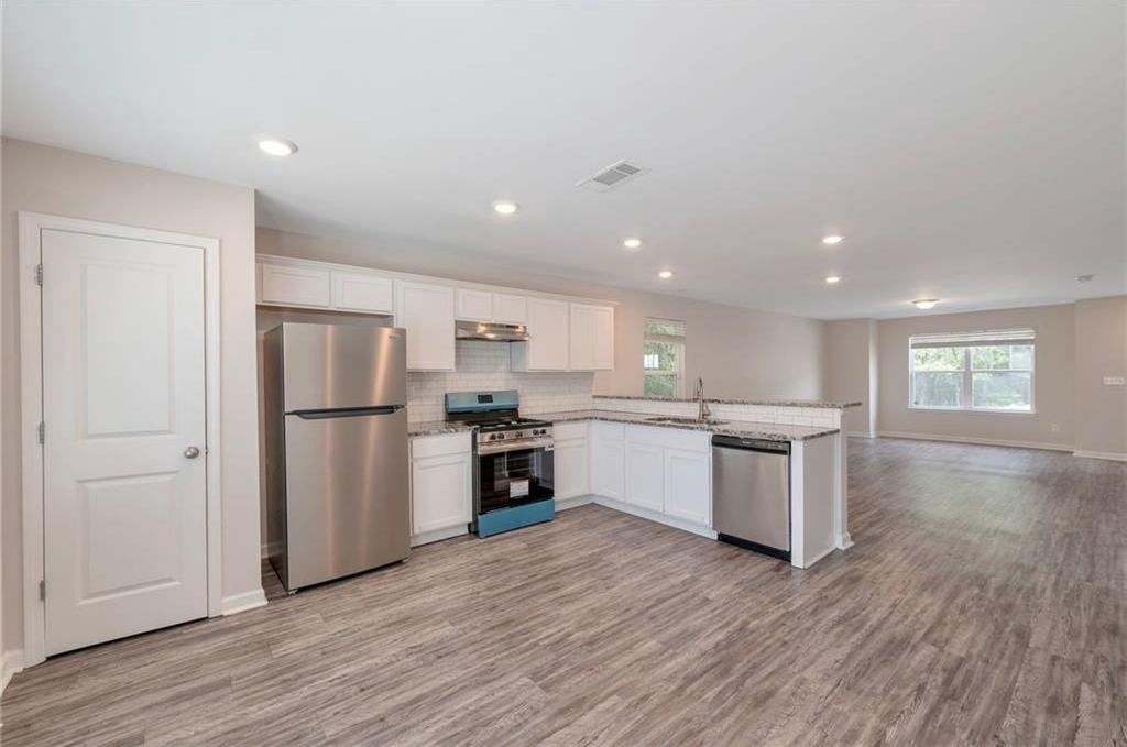 END UNIT! Tucked away in a peaceful neighborhood, this beautiful townhome combines modern style with everyday convenience. Inside, you’ll find a freshly painted interior with durable LVP flooring throughout the main level. Built in 2020, the home features an open-concept kitchen with granite countertops, a spacious breakfast bar, and stainless steel appliances, including a brand-new refrigerator and stove for true move-in ready peace of mind. Upstairs, the oversized primary suite offers a luxurious bath with dual vanities, while two additional bedrooms, a full hall bath, and a convenient laundry room complete the second level. With its modern upgrades and low-maintenance design, this end unit home is ready for you to enjoy from day one. Schedule your showing today!