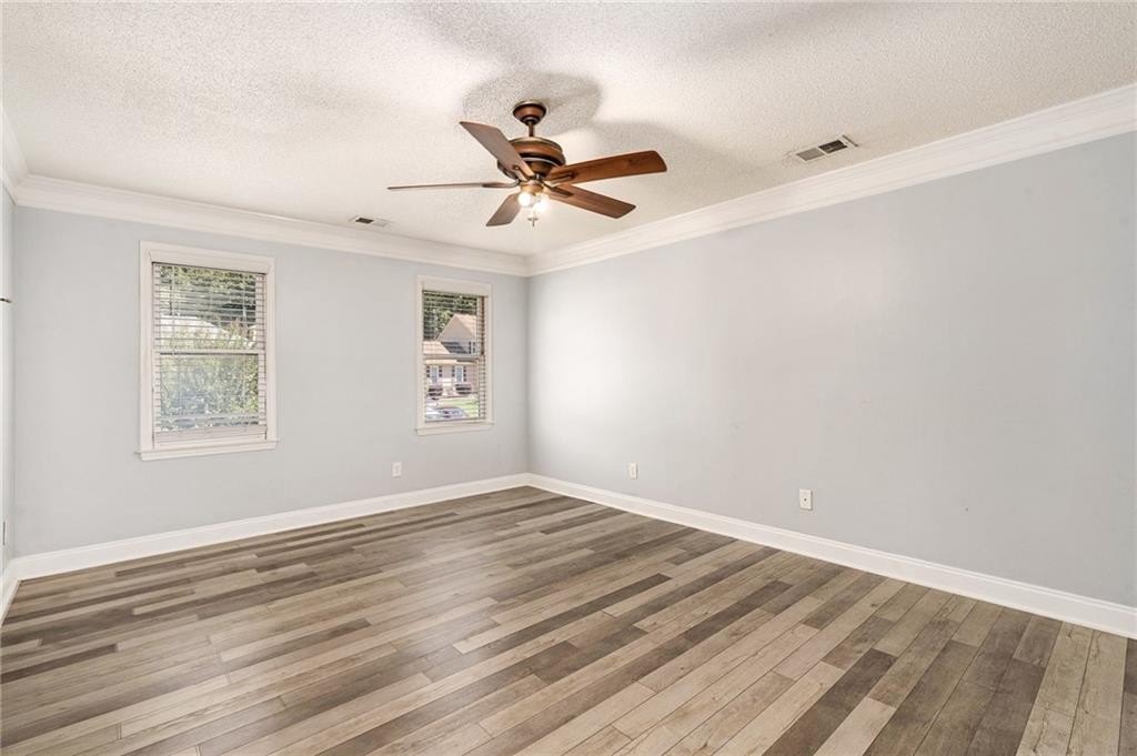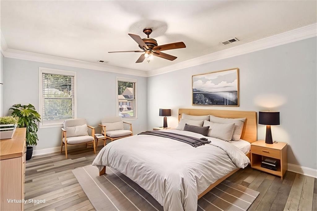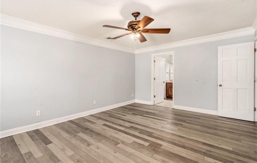 Upstairs, the primary suite includes a walk-in closet and a private bath, while two additional bedrooms share a full bath, giving everyone their own space.
