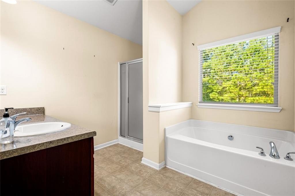 LOOK NO FURTHER – This is it! Step into this pristine 4-bedroom, 3-bath home, IMMACULATELY KEPT by its original owner, nestled in a serene neighborhood. The open and airy two-story foyer offers a welcoming invitation into the spacious family room, with views to the breakfast area and large kitchen—complete with abundant storage, all appliances, a center island, solid-surface countertops, and a walk-in pantry. On the main level, you’ll find a secondary bedroom and full bath—perfect for guests, a home office, or a private library. Upstairs, the enormous master retreat features a sitting room and an oversized spa-like bathroom with vaulted ceilings, a soaking tub, dual sinks, and a huge walk-in closet. Two roomy secondary bedrooms, each with generous closet space, are located on the opposite side of the home, offering privacy from the master suite. The laundry room includes its own linen closet and extra shelving for convenient storage. Enjoy the swim/tennis community’s inviting amenities, including sidewalks for daily strolls, street lighting, and a fun play area. All of this is just minutes from schools and shopping. Don't miss your chance to own this exceptional home!