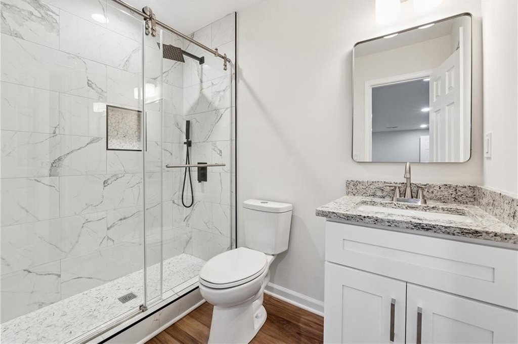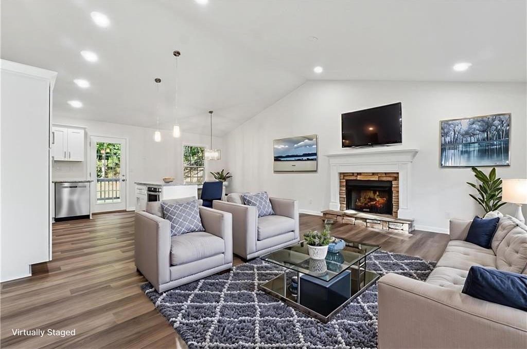 Welcome to 68 Adair Way, a beautifully renovated 4-bedroom, 3-bath home offering the perfect blend of comfort, style, and peaceful country living. Nestled on nearly a half-acre in a quiet neighborhood with no HOA, this home has been thoughtfully updated and is ready for you. A classic rocking-chair front porch sets the tone — a charming spot to relax and unwind while taking in the quiet surroundings. Inside, you’ll find a spacious, vaulted family room with a cozy fireplace, creating a warm and inviting gathering space. The open floor plan flows effortlessly into the dining area and updated kitchen, which features brand-new cabinets, sleek granite countertops, and all-new stainless-steel appliances, including a gas range and built-in microwave island — perfect for cooking, hosting, or casual family meals. The primary suite offers a peaceful retreat with a vaulted ceiling, walk-in closet, and a spa-like bath complete with a double vanity, soaking tub, and separate shower. Two additional bedrooms share a full, updated bath, while convenient main-level laundry adds everyday practicality. Downstairs, the finished lower level offers exceptional flexibility — featuring a large bedroom with its own full bath, perfect for a guest suite, teen retreat, or bonus entertainment space. Step outside to enjoy the deck overlooking a fenced-in backyard, ideal for grilling, gardening, or simply enjoying the quiet, open space. The spacious lot provides both room to play and privacy, making it feel like your own peaceful getaway. Recent updates include new flooring throughout, fresh interior paint, renovated kitchen and baths, and modern fixtures and finishes that give the home a clean, move-