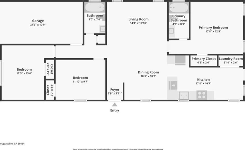 Updated 3 Bedroom, 2 Bath Ranch Home in the Brookfield Village Community in the Douglasville County High School District. As you enter the home, you step into the fireside Family Room with vaulted ceiling. Kitchen is located on your right and features White Cabinets, Quartz Counters and full suite of Appliances. Split Floor Plan that offers both comfort and privacy, with the Primary Suite on the back side of the home and the two additional Secondary Bedrooms and Bath in the front of the home. Laundry Room is located near the Back Door. Step outside onto a concrete patio and flat spacious fenced backyard that extends your living space outdoors. Luxury Vinyl Plank (LVP) floors throughout Living Area. Single Car Garage. Home is conveniently located just minutes from I-20 shopping, restaurants and parks.