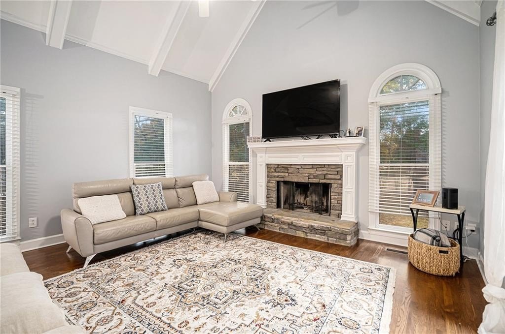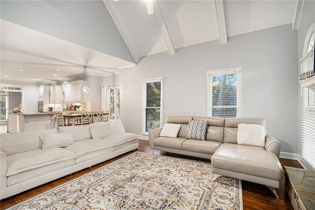 Beautifully updated and thoughtfully designed, this home offers the perfect combination of modern comfort and timeless style. The main level features a desirable primary suite and a spacious layout ideal for entertaining or everyday living. A dramatic two-story living room fills the home with natural light, while a separate dining room provides an elegant space for gatherings. The updated kitchen is a true centerpiece with white cabinetry, granite countertops, stainless steel appliances, and a cozy keeping room—perfect for relaxing by the fire or enjoying morning coffee. Upstairs, you’ll find generously sized bedrooms offering comfort and flexibility for family or guests. The full basement includes a finished bedroom area, ideal for a guest suite, office, or media space, plus ample storage. Major updates include a new roof and HVAC in 2024 for added peace of mind. Located in a sought-after community served by highly rated schools, residents enjoy exceptional amenities including a pool, tennis courts, basketball court, and clubhouse.