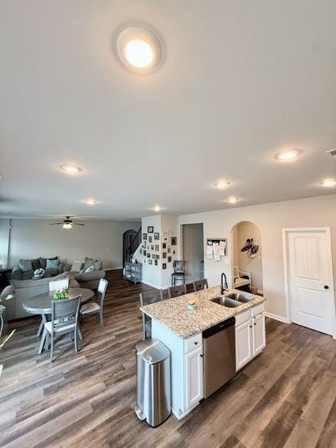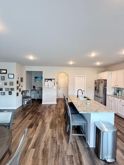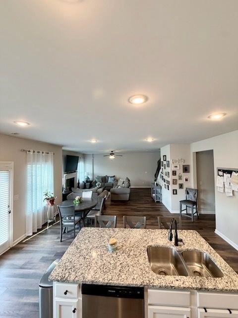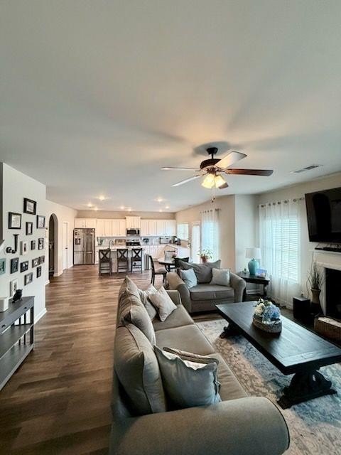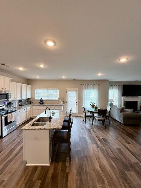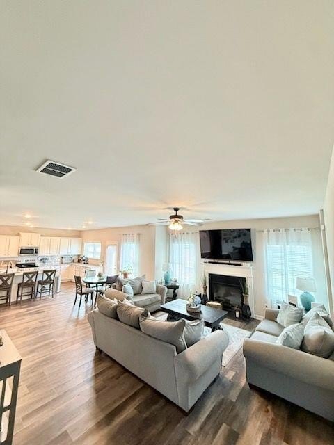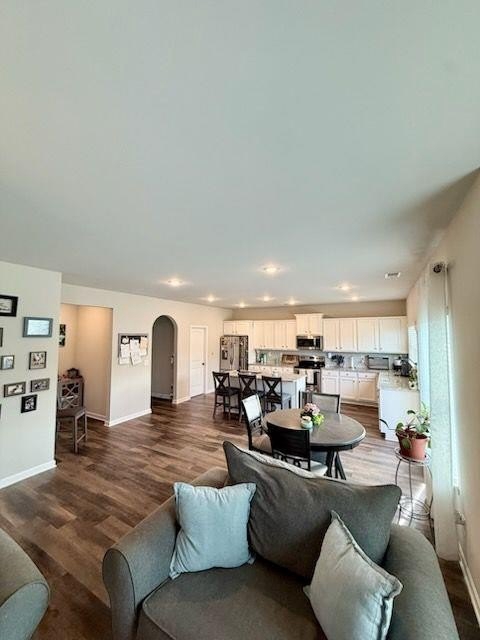 a spacious family room that seamlessly flows into an open-concept kitchen, creating