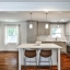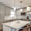 Inside, you’ll find a bright, open-concept layout designed for both everyday living and entertaining. The chef’s kitchen boasts quartz countertops, a spacious island, gray cabinetry, stainless steel appliances, and a sleek subway tile backsplash. Flow seamlessly into the expansive den, featuring a stone fireplace, recessed lighting, and convenient half bath—a space that’s equal parts cozy and versatile.