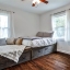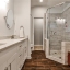 The primary suite is a true retreat, complete with a spa-like bathroom showcasing a dual-sink vanity and oversized shower with distressed wood-look tile.
