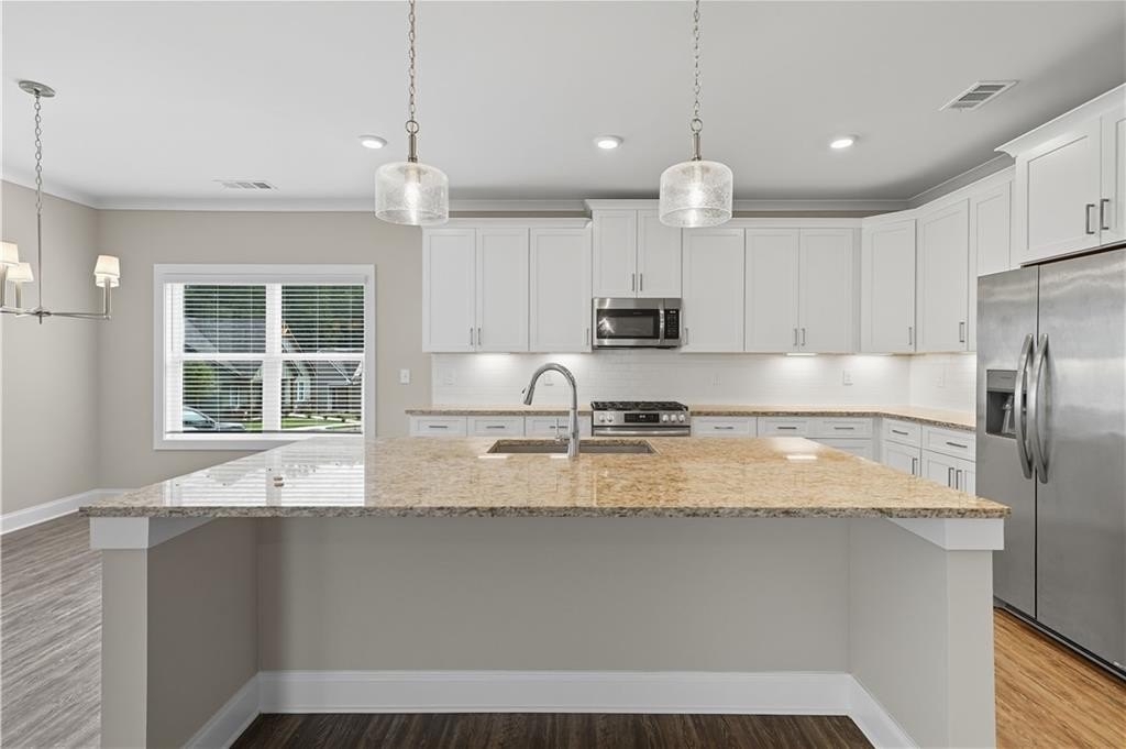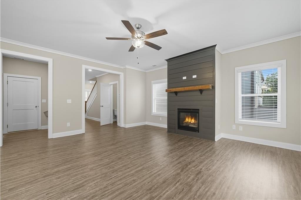 Resale in Creek Wood Park. Built in 2023. The Hudson Plan offers 3 bedrooms and 2.5 bathrooms with covered front and back porches. Soft close, Shaker cabinets with granite countertops, undermount lighting, pendant lights and working island are all standard features in the kitchen. The open concept plan seamlessly connects the dining room, kitchen and family room. Cozy up to the direct vent, gas logged fireplace or enjoy the morning sunrise on the covered front porch. Upstairs you'll find the Owner's suite with his and hers walk-in closets. Double vanities, oversized ceramic tiled shower and LVP in the Master bathroom. The two secondary bedrooms are flanked with a Jack and Jill bathroom adorned with double vanities. Main living areas, laundry and secondary bath room will have luxurious vinyl plank flooring. This home offers a rear entry 2 car garage. New carpet and interior paint going in this week. This home was hardly lived in and feels brand new.