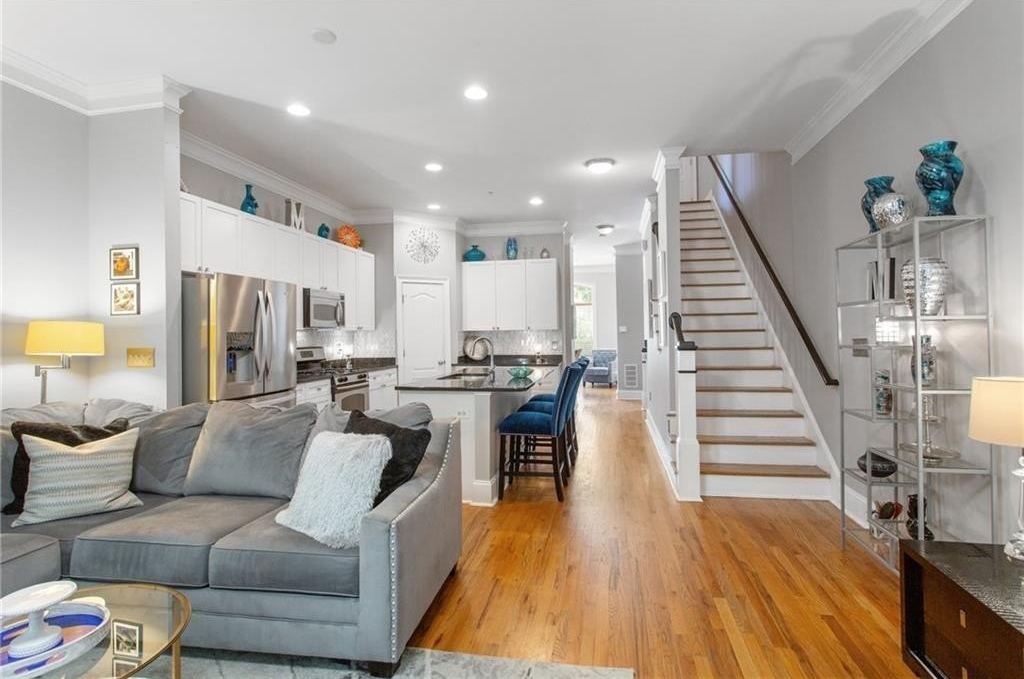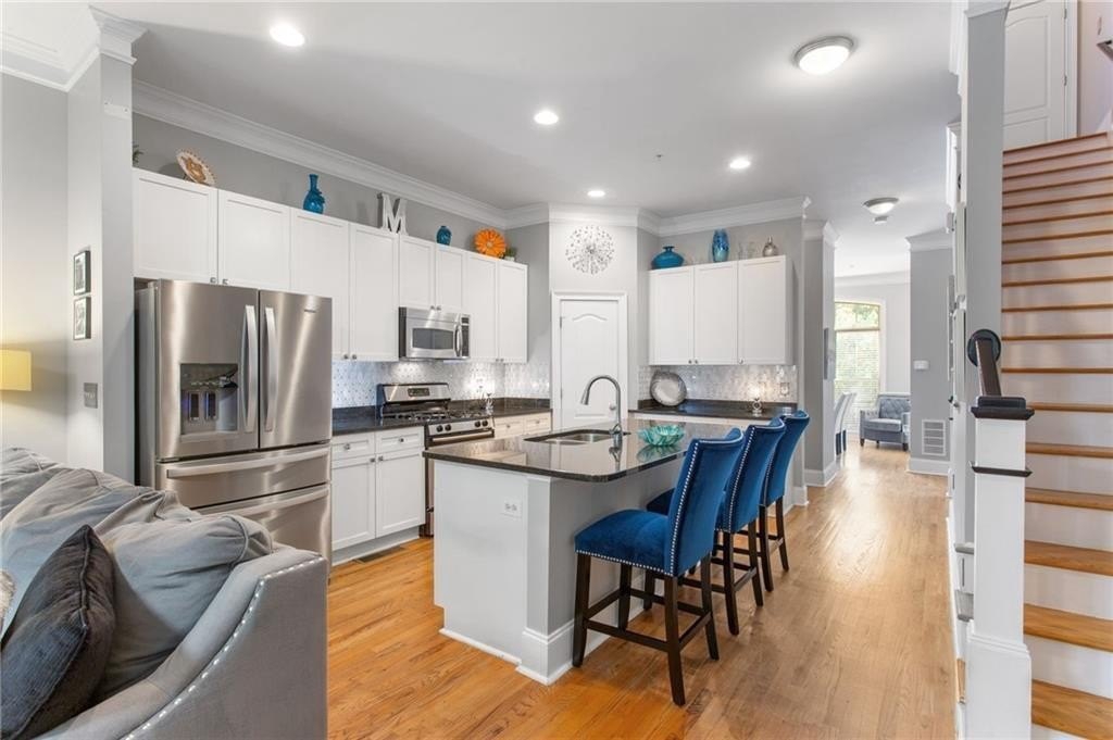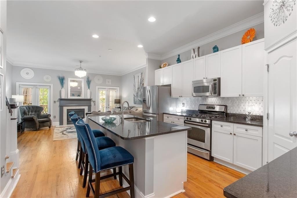 Welcome to this move-in ready smart home featuring 3-bedroom, 3.5-bath townhome in the highly sought-after Mosaic at Vinings gated community. Home is located close to the battery and in the heart of Smyrna! ALL MAJOR SYSTEMS RECENTLY REPLACED; including both HVAC units--upstairs HVAC was installed July 2020 still covered by the manufacturer warranty and downstairs HVAC was replaced in July 2024 with a 3-year contractor warranty--both systems have Honeywell Pro thermostats, upgraded water heater was installed 2024, and roof have been replaced within the last 5 years! This spacious home features an open floor plan with plenty of natural light, perfect for both entertaining and everyday living. The kitchen boasts stainless steel appliances, granite countertops, new touch-less faucet and disposal, upgraded backsplash, and a breakfast bar that flows seamlessly into the dining and living areas. The inviting living room includes a cozy gas fireplace and access to a private deck with French doors, ideal for relaxation. Upstairs, the oversized owner’s suite with trey ceilings offers a walk-in closet, dual vanities, a soaking tub, and a separate shower. The secondary bedrooms both also have their own ensuite bath for added convenience. The lower level features a third bedroom with new LVP flooring throughout with a full bath, perfect for guests, a home office, or a media room. Additional highlights include hardwood floors, fresh paint, and an attached tandem two-car garage. Enjoy community amenities like a saltwater pool, trails with fire pits, and dog park, plus easy access to the Smyrna Market village, shopping, dining, and major highways. Don’t miss the chance to make this beautiful townhome your own! Ask us about two GRANT opportunities to first time home buyers receive up to $12,500 towards down payment and closing costs.