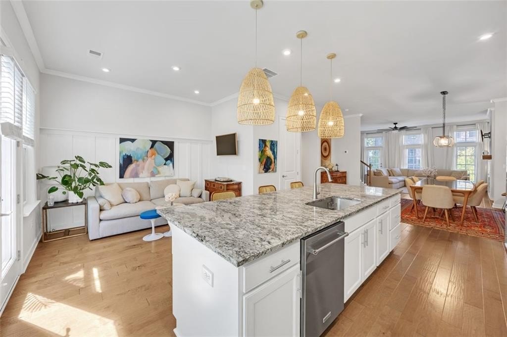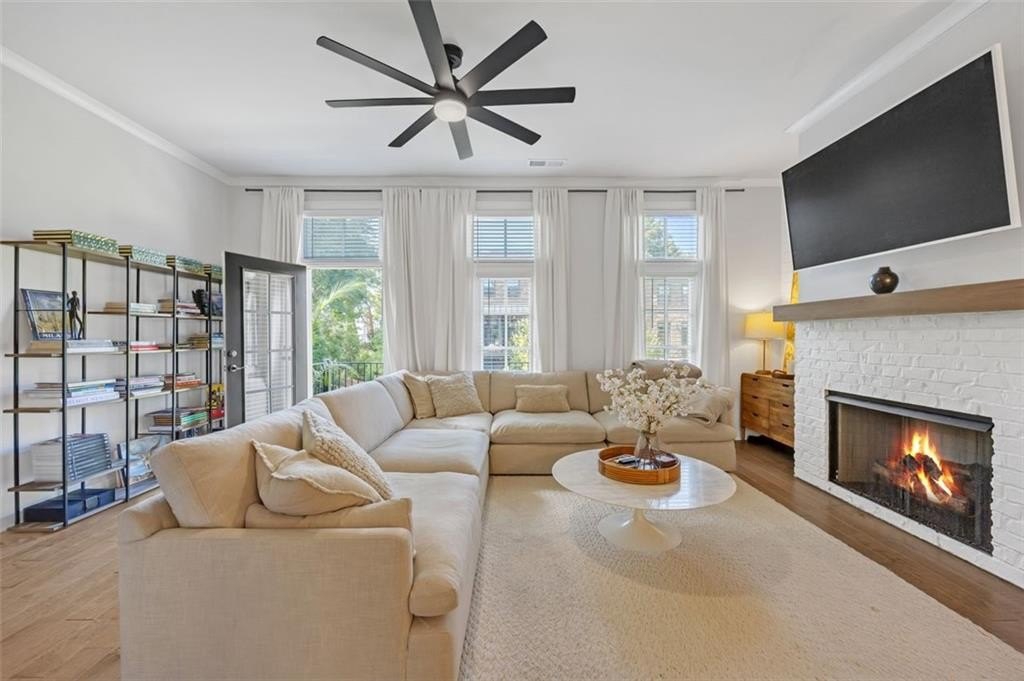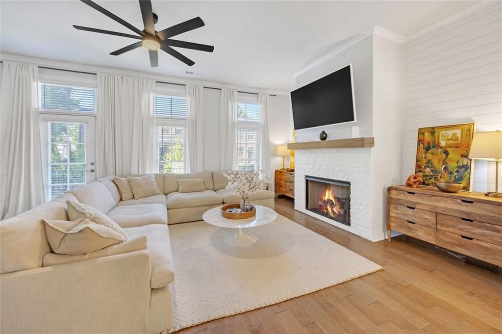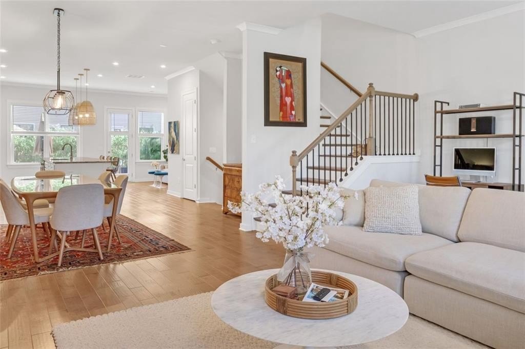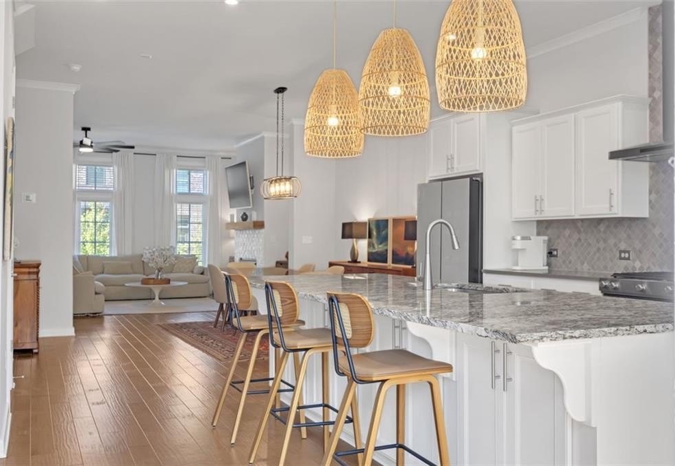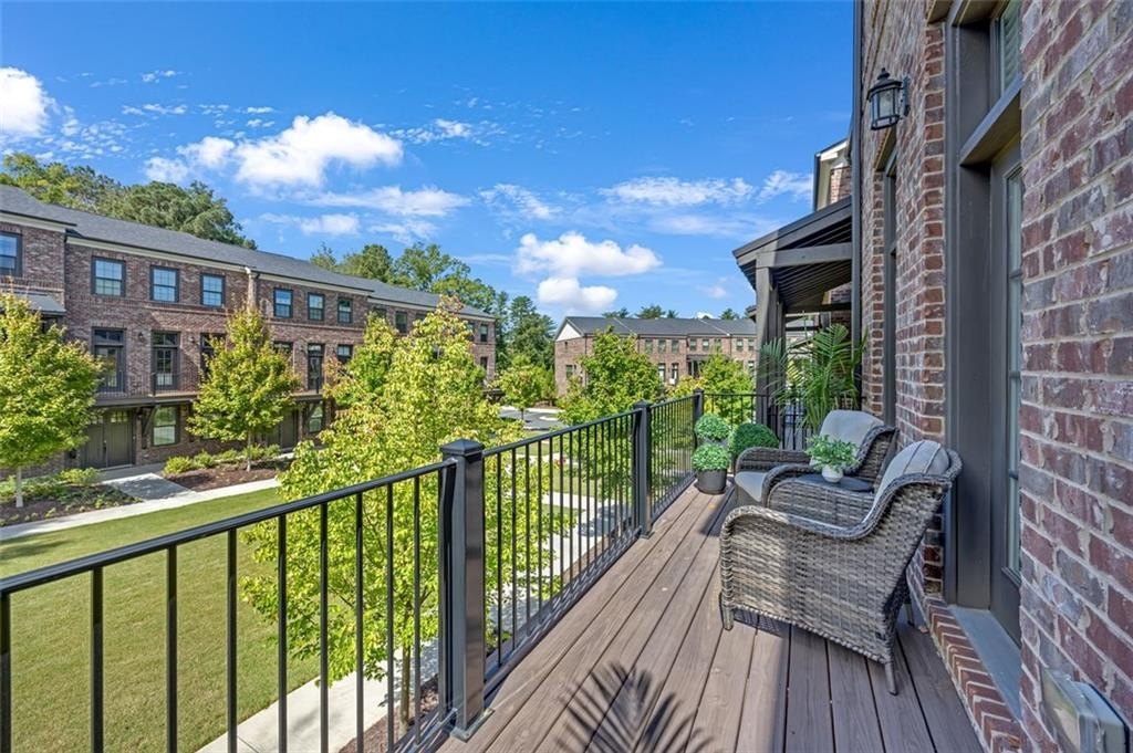 This is the ONE! In the HEART of East Cobb, this NEWER CONSTRUCTION townhome is curated by design and loaded with show stopping details. Soaring ceilings and walls of windows brighten the OPEN CONCEPT floor plan, showcasing a CHEF'S KITCHEN with QUARTZ COUNTERTOPS, HIGH-END STAINLESS STEEL APPLIANCES, and a MASSIVE ISLAND that flows seamlessly into dining and living areas. Enjoy TWO PRIVATE BALCONIES, a COZY FIREPLACE, and a patio perfect for entertaining. There is also a beautifully landscaped open GREEN SPACE in the front yard. The OVERSIZED PRIMARY SUITE offers a SPA-LIKE EN-SUITE with a rainfall shower head and double walk-in closets, while every finish reflects a designer’s touch. A convenient MAIN-LEVEL BEDROOM with a FULL BATHROOM is ideal for in-laws or guests. Hardwood floors, LUXURY UPGRADES, and modern energy-efficient systems are found throughout. This home is walkable to the Olde Towne Athletic Club with its private memberships for tennis, pool, gym, and more, plus a restaurant open to the public. Located in the sought-after WALTON HIGH SCHOOL district, this East Cobb gem blends elegance, comfort, and convenience into the perfect lifestyle.