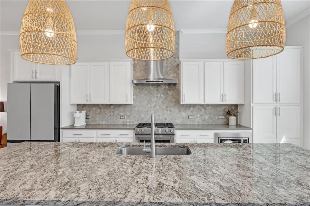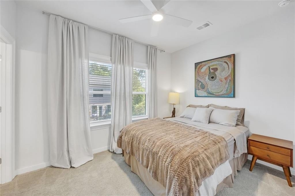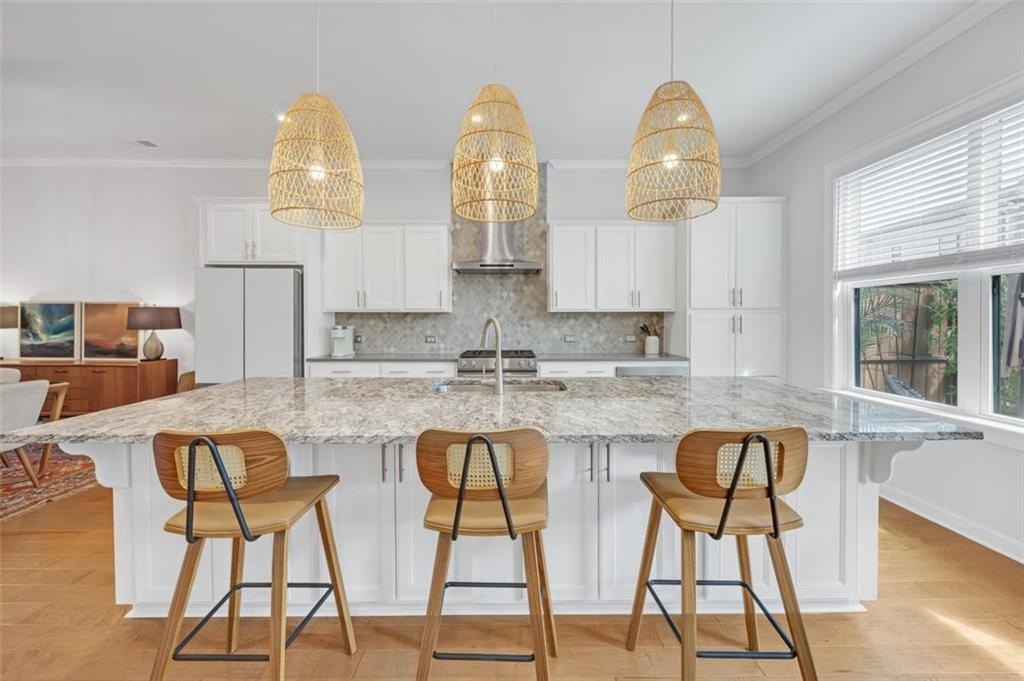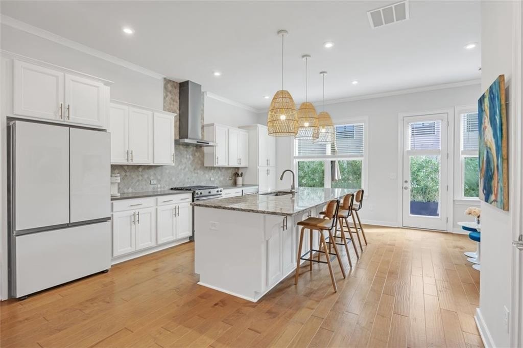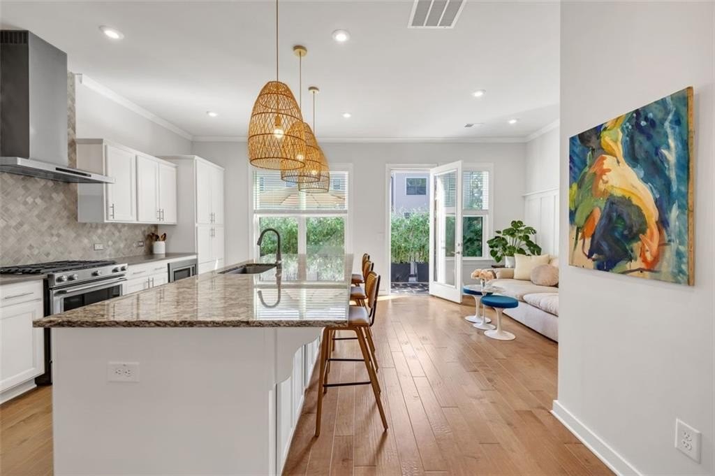 This is the ONE! In the HEART of East Cobb, this NEWER CONSTRUCTION townhome is curated by design and loaded with show stopping details. Soaring ceilings and walls of windows brighten the OPEN CONCEPT floor plan, showcasing a CHEF'S KITCHEN with QUARTZ COUNTERTOPS, HIGH-END STAINLESS STEEL APPLIANCES, and a MASSIVE ISLAND that flows seamlessly into dining and living areas. Enjoy TWO PRIVATE BALCONIES, a COZY FIREPLACE, and a patio perfect for entertaining. There is also a beautifully landscaped open GREEN SPACE in the front yard. The OVERSIZED PRIMARY SUITE offers a SPA-LIKE EN-SUITE with a rainfall shower head and double walk-in closets, while every finish reflects a designer’s touch. A convenient MAIN-LEVEL BEDROOM with a FULL BATHROOM is ideal for in-laws or guests. Hardwood floors, LUXURY UPGRADES, and modern energy-efficient systems are found throughout. This home is walkable to the Olde Towne Athletic Club with its private memberships for tennis, pool, gym, and more, plus a restaurant open to the public. Located in the sought-after WALTON HIGH SCHOOL district, this East Cobb gem blends elegance, comfort, and convenience into the perfect lifestyle.