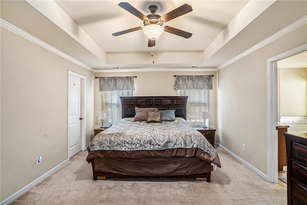 Upstairs, the primary suite features his and her walk-in closets and a private bath with a garden tub. Additional highlights include an upstairs laundry room and zoned HVAC for efficient climate control.