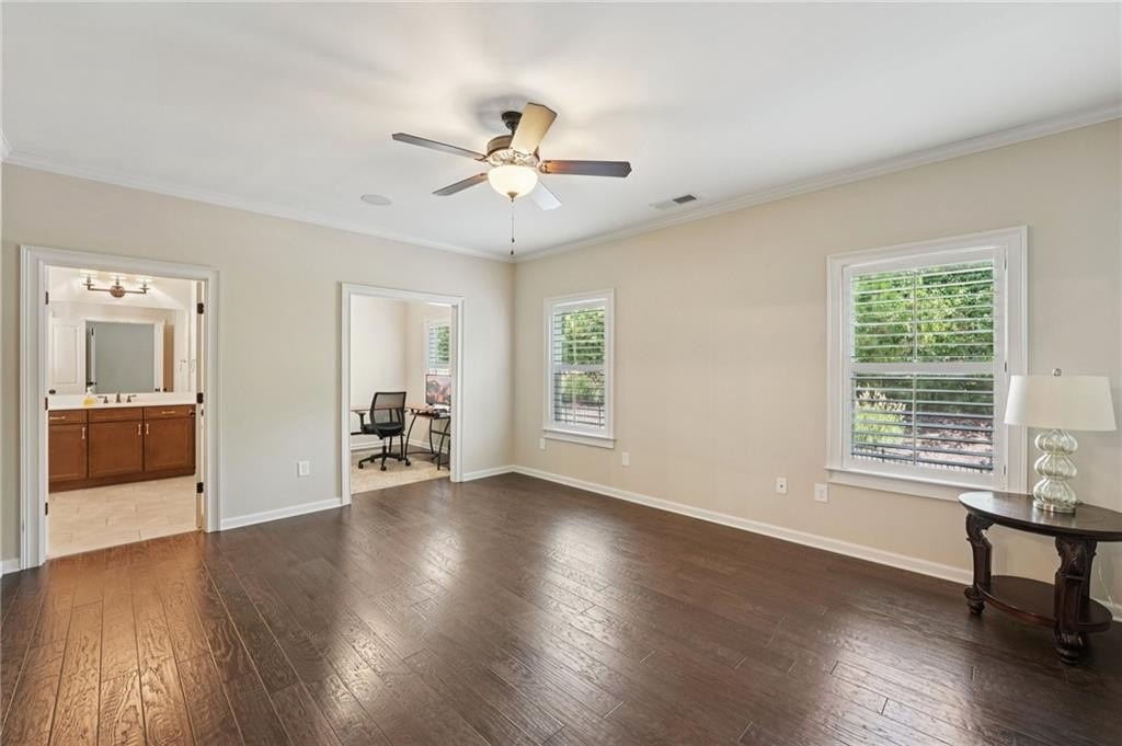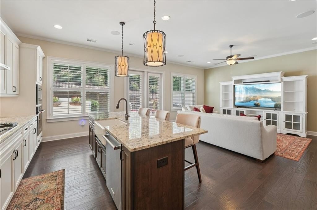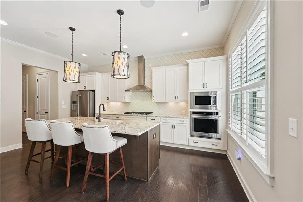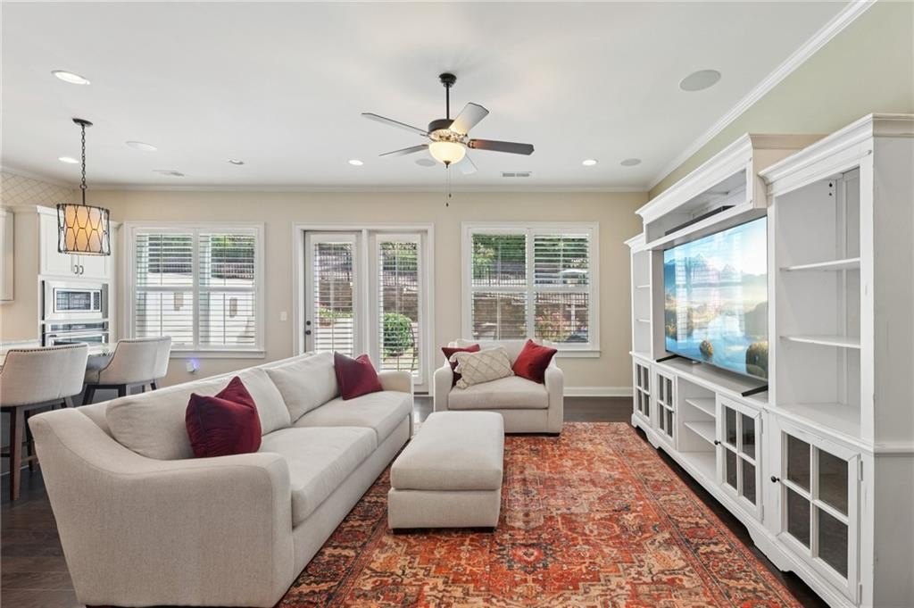 Residents enjoy resort-style amenities and a low-stress living environment, including dual swimming pools and cabanas, tennis and pickleball courts, a community fire pit, a dedicated dog park, ample greenspace with a walking path, and extra parking for guests. The location is truly unbeatable, situated just minutes from the vibrant dining and shopping of Downtown Alpharetta and Avalon, conveniently within walking distance of the Ameris Bank Amphitheater, and within a top-rated and highly coveted school district!