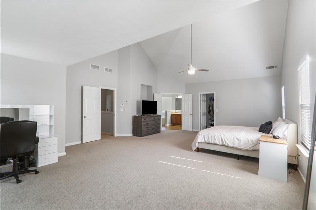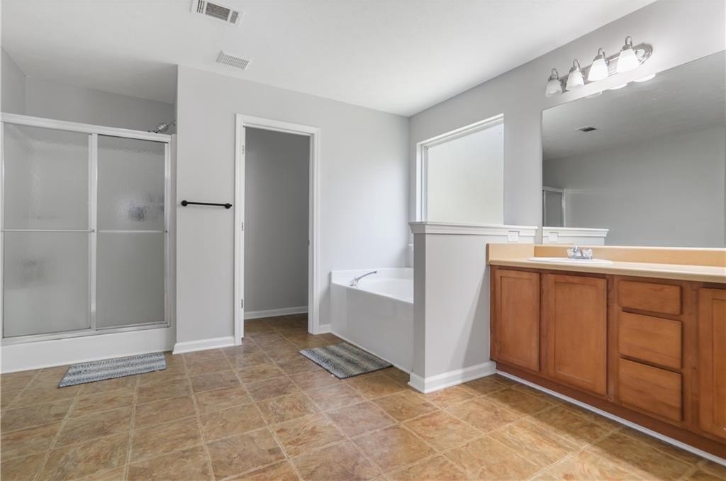 Upstairs, you’ll find an oversized primary suite with a soaring ceiling, a spa-like bath with a separate tub and shower, and a large walk-in closet. Three additional bedrooms and a shared full bath complete the upper level.