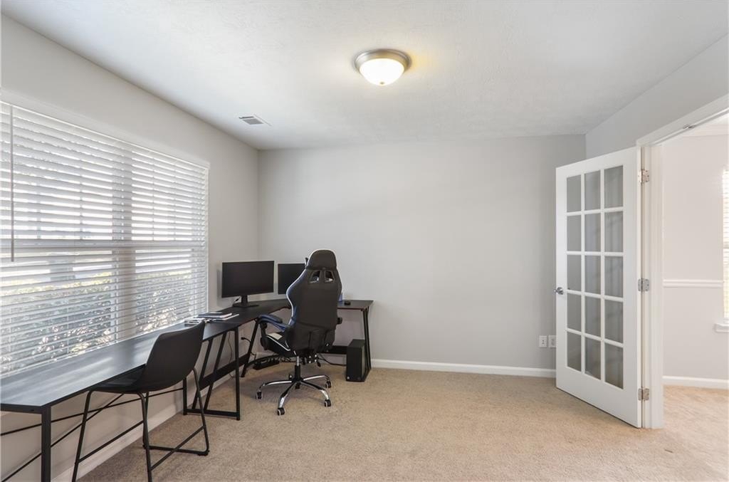The inviting kitchen features a cozy breakfast area and overlooks the spacious family room with a charming fireplace—perfect for everyday living and entertaining. Enjoy a separate dining room for special gatherings and a private office with elegant French doors. A convenient laundry room is also located on the main level.