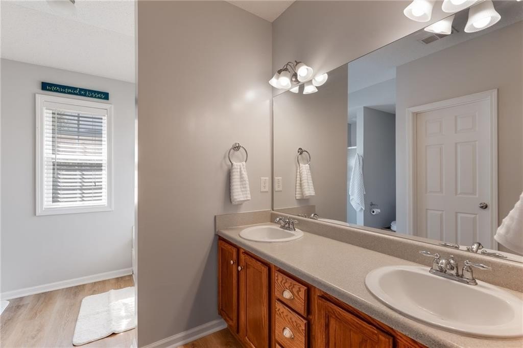 Elegant 4-Bedroom Home with Finished Basement in Swim/Tennis Community. Discover your perfect retreat in this spacious 4-bedroom, 3-bathroom home tucked away in a quiet cul-de-sac on an oversized lot. Located in a sought-after swim/tennis community, this property offers comfort, style, and room to grow. This home features a Split Bedroom Plan for privacy and functionality, Large Master Suite with trey ceiling and spa-like bath featuring double vanity, jetted tub, and separate shower, Finished Basement includes a private bedroom, full bath, and cozy living room – ideal for guests or multi-generational living Formal Dining Room seats 12+ – perfect for entertaining, Gourmet Kitchen with stainless steel appliances, gas range, microwave, and dishwasher; open view to living room and breakfast area, Inviting Living Room with gas log fireplace, carpet and LVP on the main floor was installed this year. Expansive Back Deck for outdoor gatherings and relaxation. The roof is only 5 years old, the home comes with a home warranty, current termite bond, ring system with the nest thermostat and doorbell. Outdoor & Community Perks: Oversized lot with plenty of space for play or gardening, located in a cul-de-sac for added privacy and safety, Access to community pool and tennis courts, Prime Location: Minutes from shopping, dining, schools, and easy access to I-20 for a smooth commute to Atlanta. Offered at a Competitive Price!