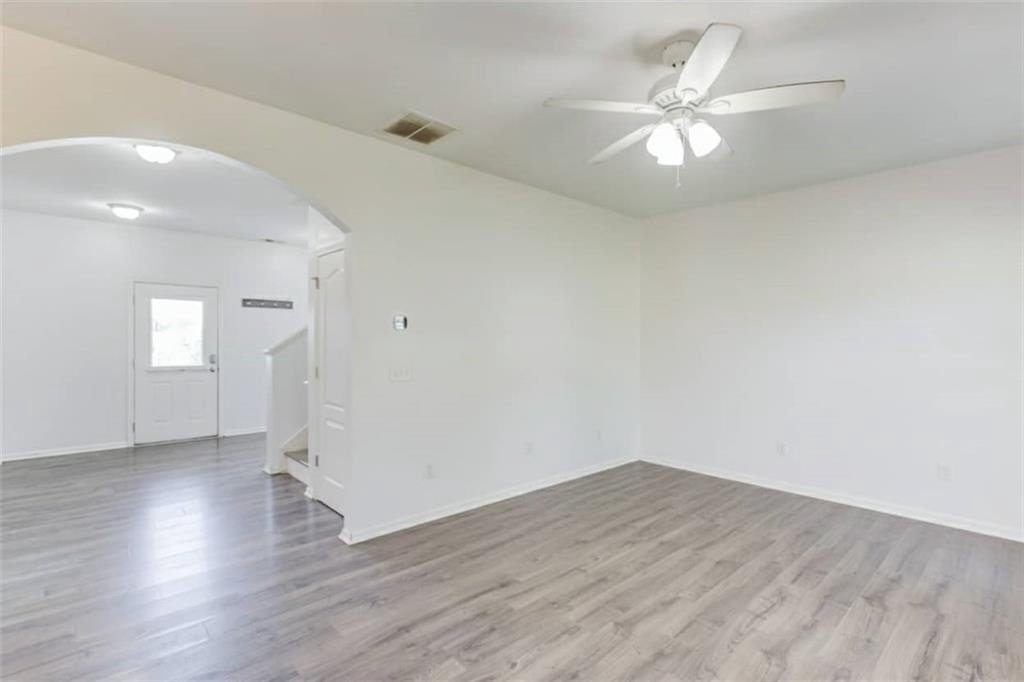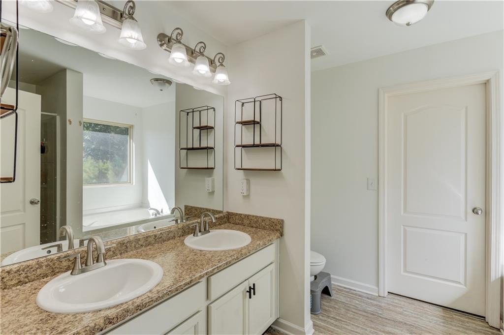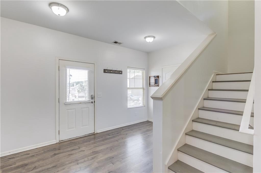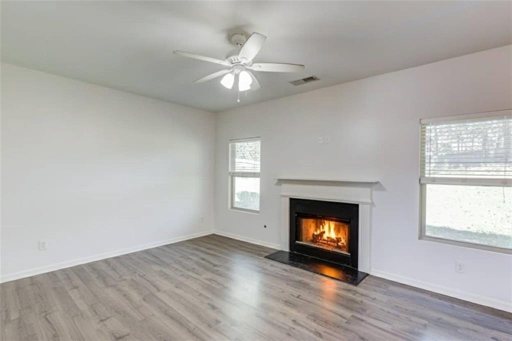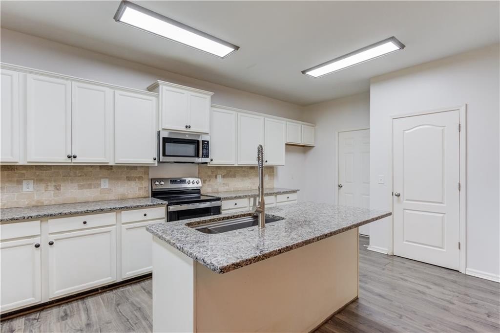 Welcome to this beautifully maintained 4 BDRM, 2.5 BATH home! Enjoy your morning coffee on the charming covered front porch before stepping inside to find luxury vinyl flooring and carpet throughout the home. The bright and inviting living room features plenty of natural light and a cozy fireplace, creating the perfect gathering space. The open-concept dining area offers access to the covered back porch and fenced backyard, ideal for entertaining or relaxing with a wooded view. The kitchen boasts white cabinetry with ample storage, stone countertops, stainless steel appliances, a breakfast bar, tile backsplash, pantry, and a large island for extra prep space. Upstairs, you’ll find all four spacious bedrooms. The primary suite offers high ceilings, walk-in closets, and a spa-like bathroom with a double vanity, soaking tub, separate shower, and large window for beautiful natural light. Located near GA-316, with shopping, dining, and schools just minutes away and best of all, no HOA!