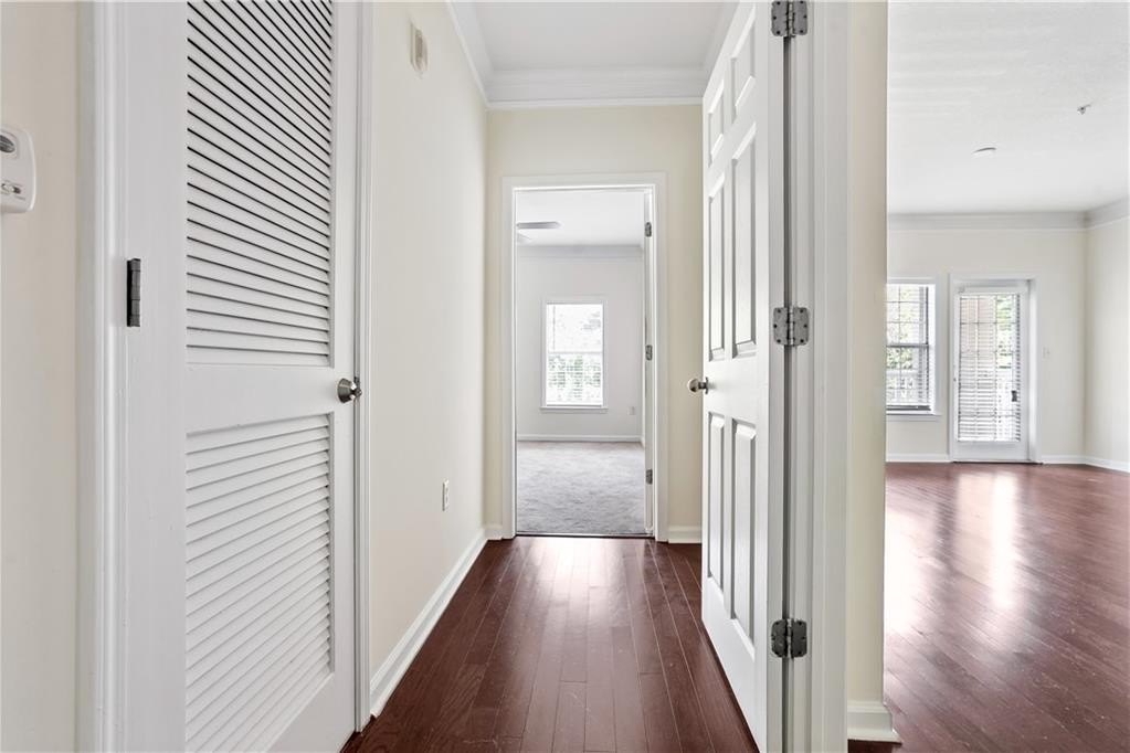 A quiet escape with fast city access — walkable restaurants, quick commutes and thoughtful modern finishes. Work downtown, live peacefully here. Spacious 2BR/2BA condo in a in Gated Community with with fast city access, secure building with ideal split-bedroom layout—perfect for roommates, families, or remote work. Entryway features a true foyer with coat closet leading to an open concept but defined dining and living area with bonus office or reading nook. The kitchen includes ample cabinetry, stone counter-tops, a walk-in pantry, and a pass-through window—great for entertaining. The ensuites are positioned at opposite ends of the condo for maximum privacy. Both bedrooms offer large windows, newer flooring, and walk-in closets. The community offers all include a pool, tennis courts, walking trails, renovated social room, fitness center, dog park, theater, and package room and onsite management. Corner garage + covered parking, just steps from your front door. You’re minutes from Emory University, Decatur’s vibrant scene, the CDC, Children’s Healthcare of Atlanta, and major corridors