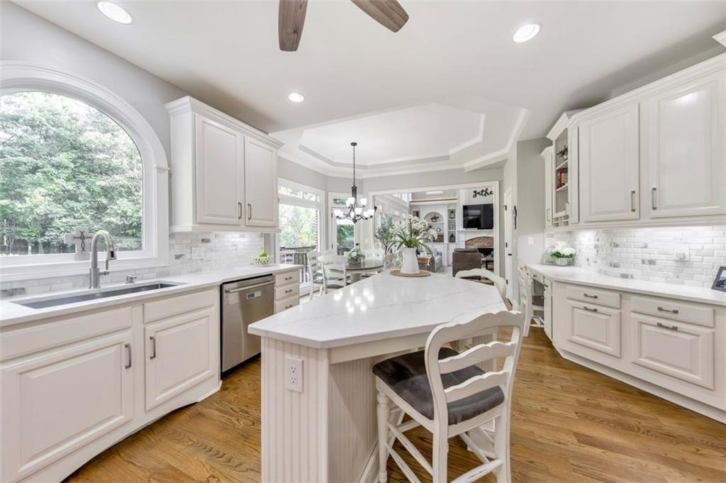 Looking for a home that checks all of your boxes? Look no further! Welcome to this stunning 7 bed / 5.5 bath residence nestled in the highly sought-after community of Oak Grove. Set on nearly an acre, this remarkable home exudes attention to detail and luxurious finishes throughout, seamlessly blending elegance, comfort, and timeless style. The inviting interior features hardwood floors, newer paint, and an abundance of natural light. A two-story foyer is flanked by a formal dining room and an office with French doors, while the living room impresses with soaring ceilings, a grand wall of windows, a gas fireplace, and custom built-ins. The chef-inspired kitchen is designed for both function and style quartz countertops, a marble backsplash, newer stainless steel appliances, Bosch and GE double ovens, a Bosch dishwasher, a GE stove, and a large walk-in pantry. The main level also offers a guest suite with a full bath, a powder room with a marble vanity, and a laundry room enhanced with quartz surfaces. Upstairs, the oversized primary suite is a true retreat with tray ceilings, a spacious sitting area with a wood-burning fireplace, and two generous walk-in closets with built-in hampers. The spa-like primary bath features a jetted tub, separate shower, and his-and-hers vanities with ample storage. Three secondary bedrooms upstairs all have walk-in closets, with two sharing a Jack and Jill bath and the third enjoying its own private en suite. The terrace level adds even more living space with an additional living room, two bedrooms, and a full bath, offering flexibility for guests or multi-generational living. A large unfinished portion of the basement is ready to be customized or can serve as storage. For added comfort, two of three HVAC units have been recently updated. Outdoor living is exceptional with Trex decking and an under-deck system, an expansive lower patio that is partially covered, a covered front porch, and a beautifully maintained yard with an irrigation system. Extensive landscape lighting in the front yard enhances the curb appeal in the evenings. Added peace of mind comes with a transferable termite and rodent bond. No pets have lived in the home. Furniture is available for purchase, and the property has been carefully maintained, making it move-in ready. This property is also nestled in an ideal location, just minutes from The Marietta Square with its restaurants, shopping, and entertainment, as well as downtown Kennesaw, Mount Paran Christian School, Marietta Country Club, Kennestone Hospital, and Kennesaw Mountain with miles of hiking trails.