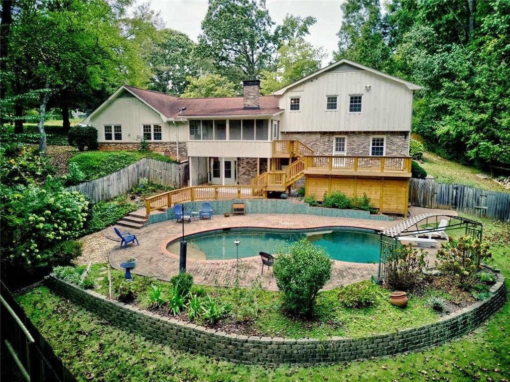 Nestled in the highly sought-after Dunwoody North Swim & Tennis Community, this exceptional and fully finished four-level home offers the perfect blend of timeless charm, modern smart-home functionality, and endless opportunities for both relaxation and entertainment. From the lush, zoysia-carpeted lawn and vibrant, flowering gardens to the serene poolside oasis with a 36'x18' Pebble Tec saltwater pool adjustable lighting, plumbed for waterslide, brick paver decking, expansive screened porch and deck with lighting, natural gas and water hookups, ready for your dream outdoor kitchen, this property is designed to entertain at every turn. Inside, a chef’s kitchen with a 5 burner gas cooktop, granite counters, double ovens, custom cabinetry, and commercial-grade ventilation, flows into multiple versatile living spaces, including home office/ hobby room/ expanded pantry, two family rooms, one with a wet bar, and bonus areas for work or play. Spa-inspired bathrooms boast high-end features including a combination of floating benches, Kohler digital dual head regulator with touch control panels, both inside and outside the shower, two showers have wall lighting with full RGBW color changing light arrays with color selection touch panel to match the mood, quiet exhaust fans and showers valves are thermostatically controlled. "Winter's Coming"- so cozy up to a wood-burning fireplace or the Jøtul clean burning, wood-burning stove that will warm that winter chill. Additional features include: New Driveway, 2025, New living & dining room flooring in 2025, renovated deck 2024, hot water heater in 2023, sophisticatedly renovated bathrooms 2019-2023, one of two HVAC replaced 2021, pantry workspace w/ full wall storage system and partially heated tile floor in 2019, window replacements in 2016, upgraded lighting and energy-efficient systems. Every corner of this home is crafted for comfort, luxury, and style. Abundant storage throughout, including garage permanent stairs to the garage attic, workshop spaces and controlled garage door by smartphone app. Close proximity to top-rated schools, parks and community pool, Dunwoody North Driving Club, includes a newer pool, covered baby pool, multiple swim & tennis teams, cantina, covered picnic tables, grilling area & year-round activities for all ages. Dunwoody's biggest gem is 110+ acre Brook Run Park, featuring two baseball fields, an amphitheater, community garden, greenhouse, scenic walking trails, open fields, numerous soccer fields, picnic and concert pavilions, playground, skate park, two dog parks, live music, and nonstop events. Make this truly rare and remarkable home buying opportunity in Dunwoody North, one of Dunwoody’s most vibrant and welcoming neighborhoods, your next home.