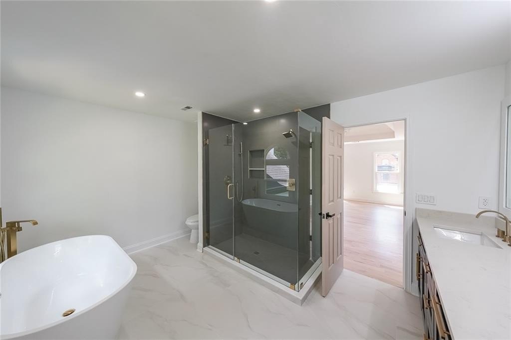 Beautifully renovated 8 bedroom home in the heart of Peachtree Corners with no HOA. Imagine waking up every day in a home where everything is new, intentional, and designed to elevate your life. Completely renovated from top to bottom, this stunning 8 bedroom, 4 bathroom residence delivers space, sophistication, and modern comfort in one of Peachtree Corners' most desirable locations, just 1.5 miles from Town Center. From the moment you step inside, you feel it. The home welcomes you with a bright, open floor plan, newly installed hardwood floors, fresh designer paint, and carefully selected lighting that creates an immediate sense of warmth and ease. Every detail has been thoughtfully curated to make you feel at home and inspired. At the center of it all is the chef's kitchen, a true showpiece designed for both everyday life and unforgettable gatherings, featuring custom shaker cabinetry, designer tile backsplash, stainless steel appliances, a gas cooktop, and an oversized center island where conversations begin and memories are made. The family room with a custom fireplace flows seamlessly into the sun filled dining area with peaceful views of the private, level backyard. Whether hosting friends, celebrating milestones, or enjoying a quiet morning coffee, the home effortlessly adapts to your rhythm. The sunroom becomes your personal retreat, a place to slow down, breathe, and reconnect. The primary suite is a true sanctuary with soaring cathedral ceilings, generous walk in closets, and a spa inspired en suite bath featuring a soaking tub, oversized walk in shower, and double vanity, all designed to help you relax, reset, and feel restored. Upstairs, spacious secondary bedrooms offer flexibility for guests, home offices, creative spaces, or playrooms, allowing the home to grow with you and your needs. Beyond beauty, this home offers peace of mind with two brand new HVAC systems and a new water heater, ensuring year round comfort and efficiency. Located in a top rated school district including Simpson Elementary and Paul Duke STEM High School, with nearby private options such as Wesleyan, Cornerstone, and Greater Atlanta Christian, the location completes the lifestyle. You are minutes from concerts, movies, dining, and community events at Town Center, with quick access to The Forum, I 285, and GA 400 for effortless commuting. Homes like this are rare, fully renovated, move in ready, and designed for living beautifully in one of metro Atlanta's most vibrant communities. This is not just a house, this is where your next chapter begins.
