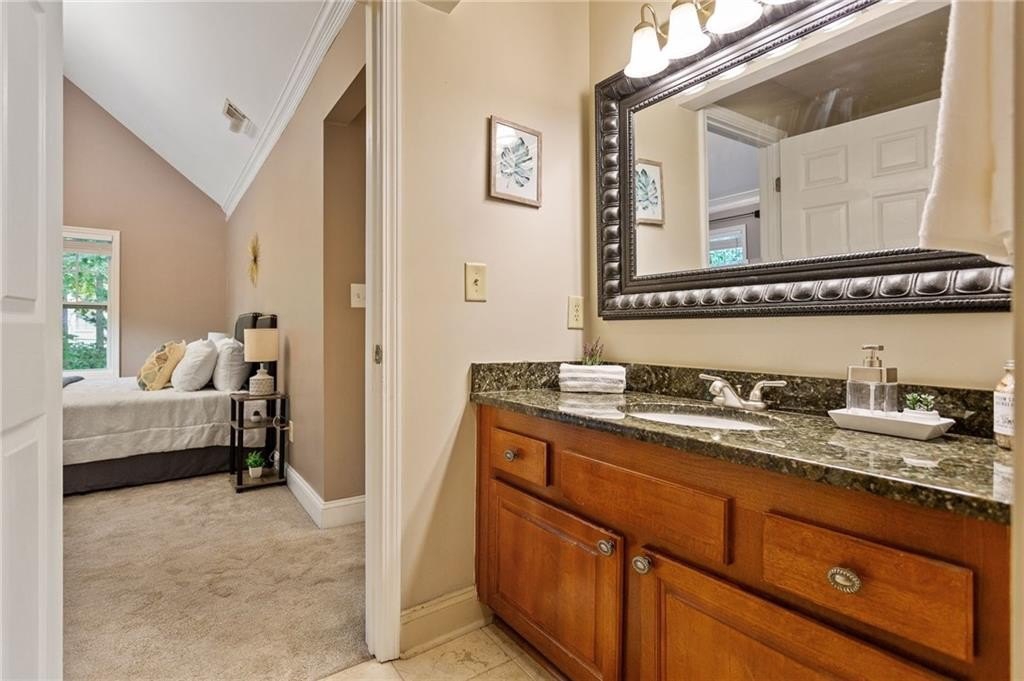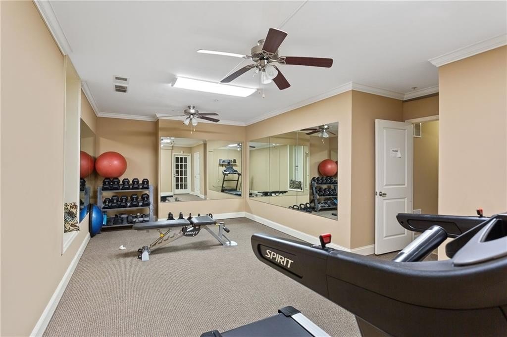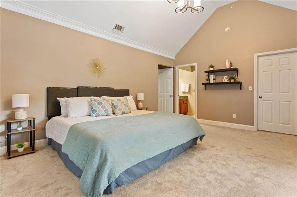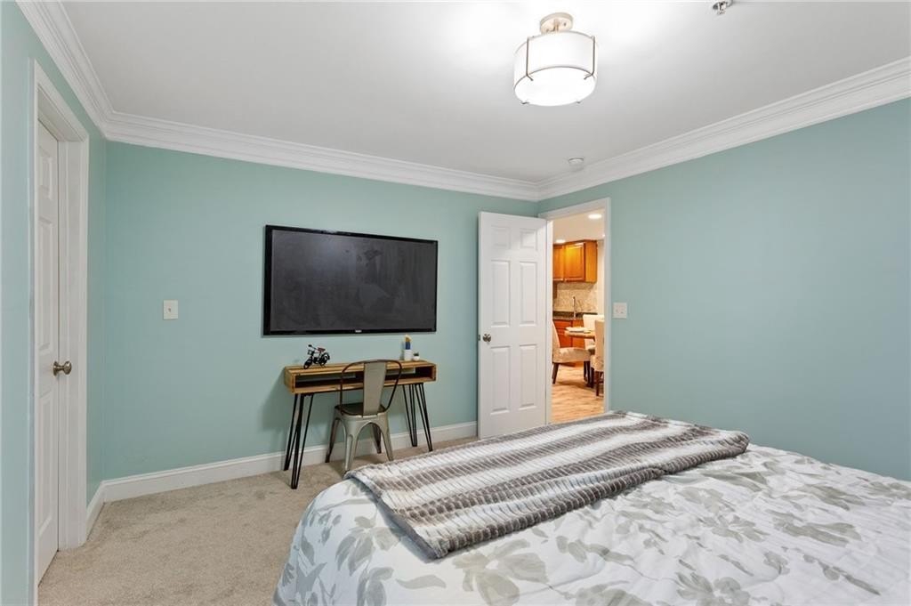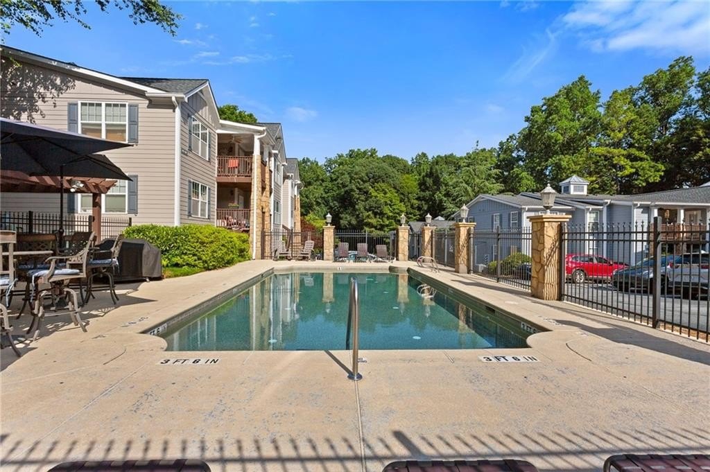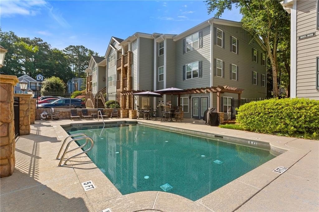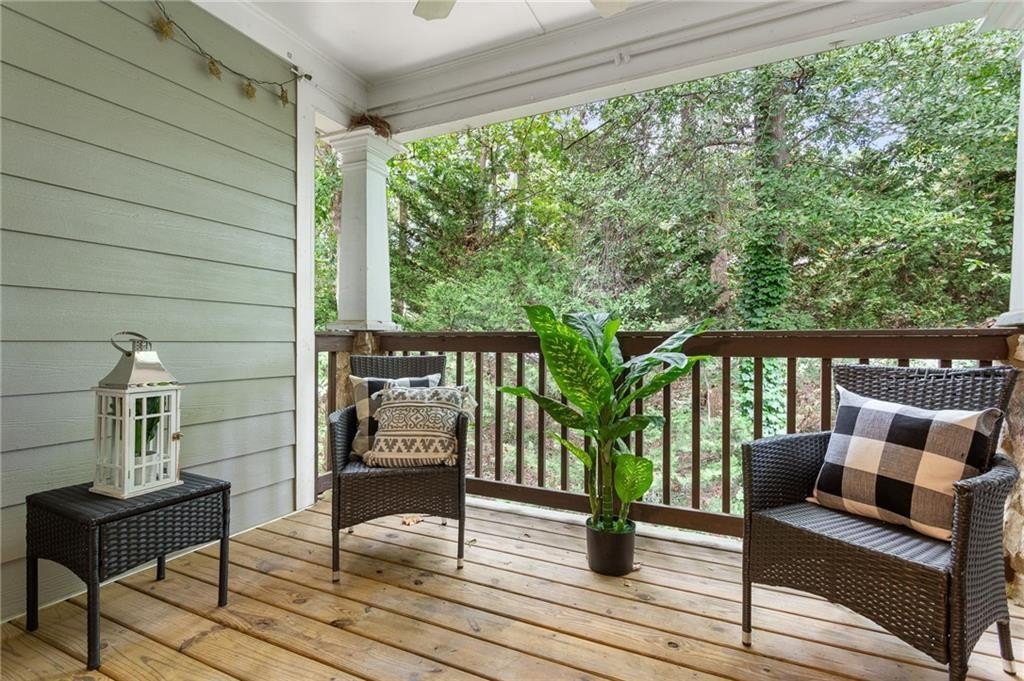 Welcome to nearly maintenance-free, single-story living in the heart of Smyrna! This beautifully maintained 2-bed, 2-bath end-unit condo spans 1,151 sq ft and welcomes you with luxury vinyl flooring, recessed lighting, crown molding, and ceiling fans throughout. French doors off the family room reveal a private balcony, perfect for your morning coffee spot or intimate evening retreat. The kitchen is chef-ready with ample stained cabinets, stone-tile backsplash, granite countertops, an island, and sleek stainless steel appliances. Both spacious bedrooms feature walk-in closets and full baths for comfort and privacy. The Madison at Village Green is a great community, offering a sparkling swimming pool, a clubhouse, sidewalks and trails, gazebos and grilling areas, a dog park, and a fitness center. This is all included in a central Smyrna location with easy access to Smyrna Market Village, the Silver Comet Trail, several local parks and nature trails, the interstate, and numerous nearby shopping, dining, and entertainment options. Perfect for professionals, downsizers, or anyone seeking Smyrna's vibrant community with a relaxed retreat. Don’t miss it!