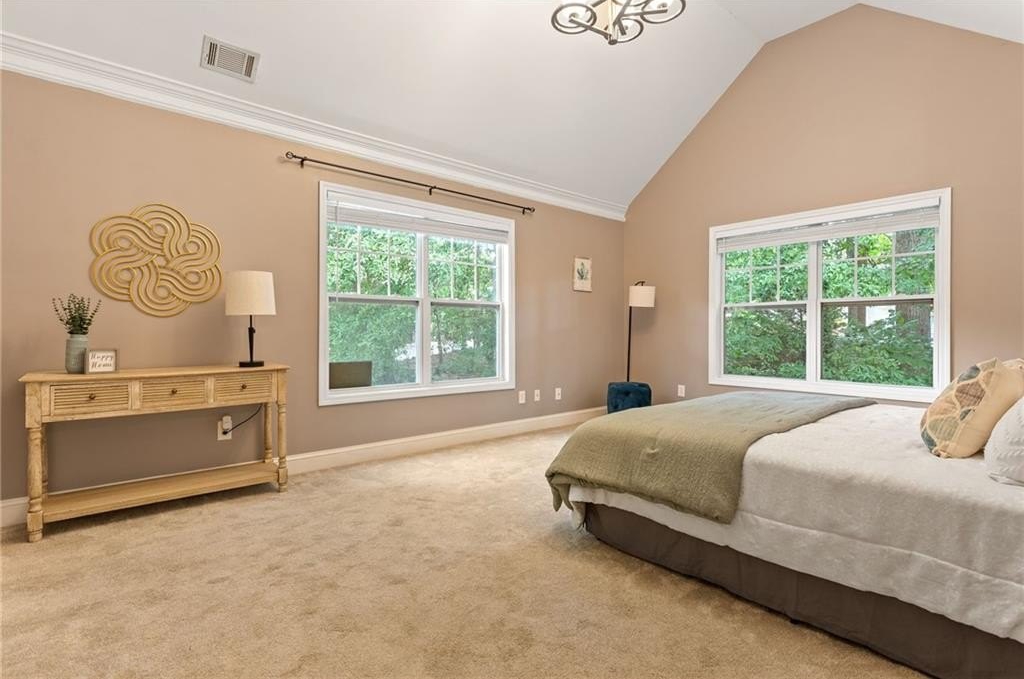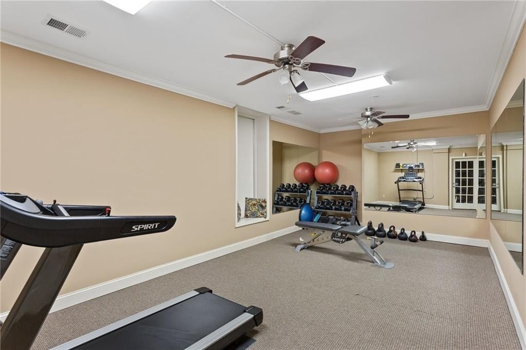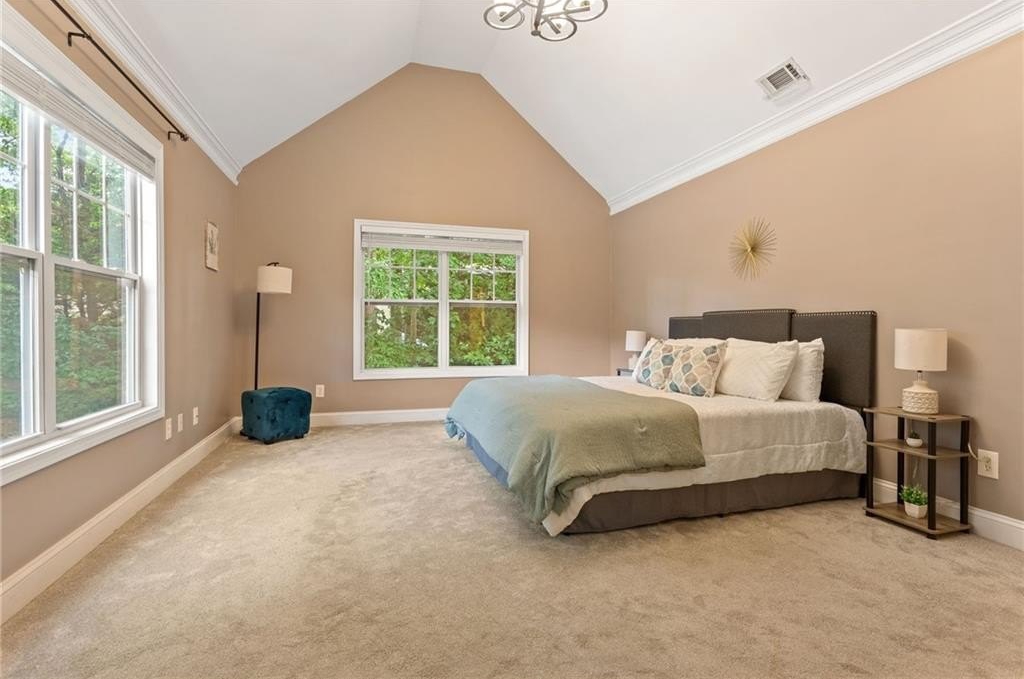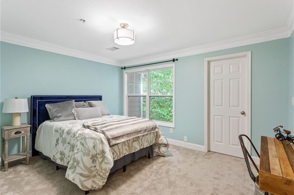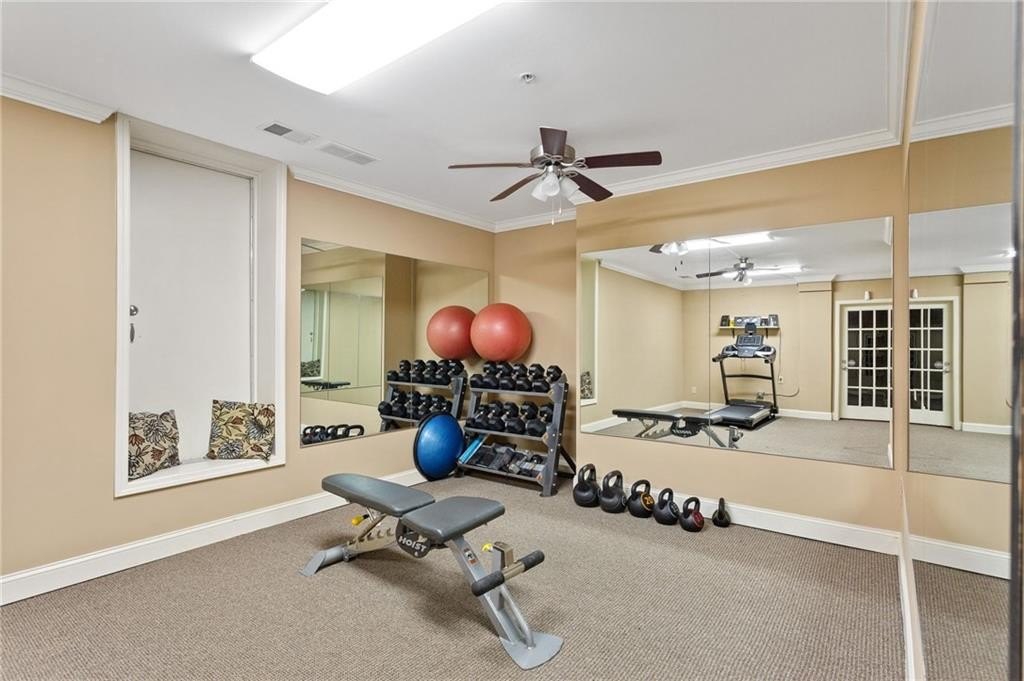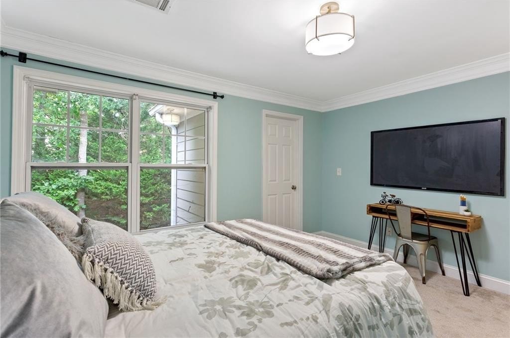 Welcome to nearly maintenance-free, single-story living in the heart of Smyrna! This beautifully maintained 2-bed, 2-bath end-unit condo spans 1,151 sq ft and welcomes you with luxury vinyl flooring, recessed lighting, crown molding, and ceiling fans throughout. French doors off the family room reveal a private balcony, perfect for your morning coffee spot or intimate evening retreat. The kitchen is chef-ready with ample stained cabinets, stone-tile backsplash, granite countertops, an island, and sleek stainless steel appliances. Both spacious bedrooms feature walk-in closets and full baths for comfort and privacy. The Madison at Village Green is a great community, offering a sparkling swimming pool, a clubhouse, sidewalks and trails, gazebos and grilling areas, a dog park, and a fitness center. This is all included in a central Smyrna location with easy access to Smyrna Market Village, the Silver Comet Trail, several local parks and nature trails, the interstate, and numerous nearby shopping, dining, and entertainment options. Perfect for professionals, downsizers, or anyone seeking Smyrna's vibrant community with a relaxed retreat. Don’t miss it!