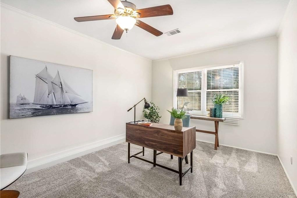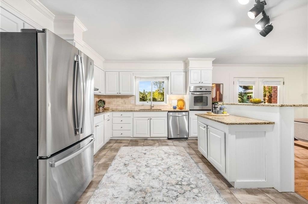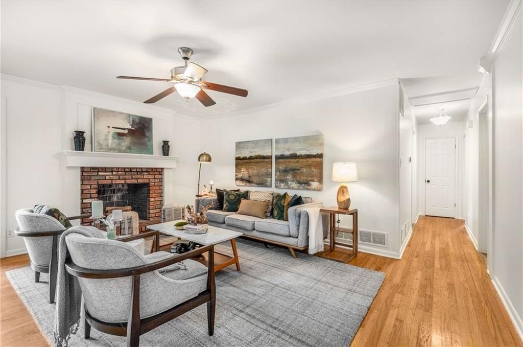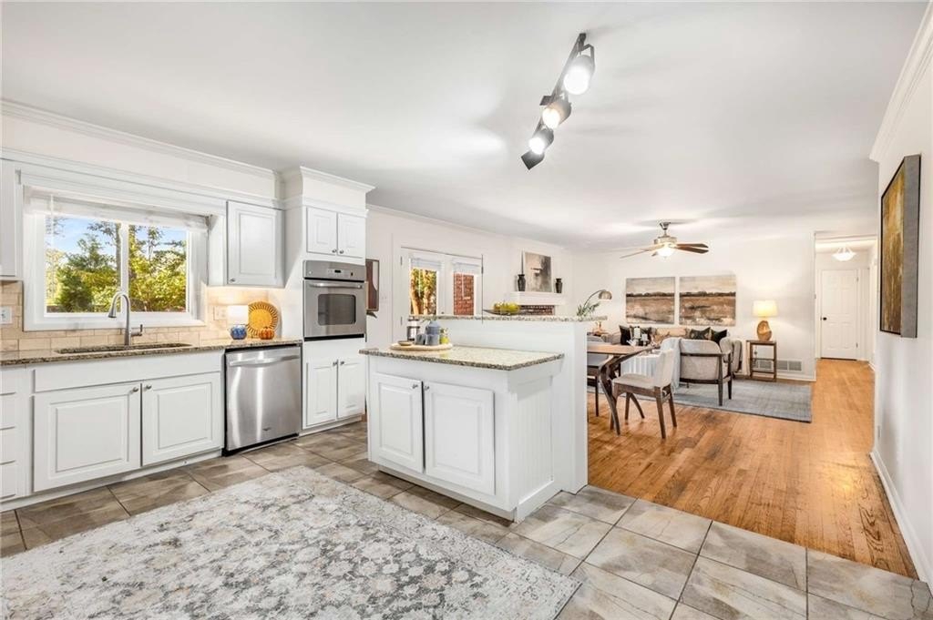 2040 Argyle Drive SE sits proudly in coveted Argyle Estates and the Teasley Elementary district—a timeless four-sided brick ranch on a rare two-lot homesite totaling approximately 0.55 acres, per assessor,. Offering about 2,107 sq ft of heated, above-grade space, this single-level 4BR/2BA home blends classic curb appeal with meaningful updates. Inside, hardwood floors anchor bright living spaces, while the large kitchen—finished with stainless steel appliances, granite countertops, and ample cabinetry—connects seamlessly to a functional mudroom and separate laundry room. The oversized fourth bedroom easily flexes as a bonus room, playroom, or home office. Outdoors, a spacious back deck overlooks a beautifully level, landscaped yard, perfect for gatherings, gardening, or play. A standout feature is the detached, oversized brick garage—a two-car door with three-car width, ideal for a workshop or extra storage. Recent improvements include new windows, new gutters, updated HVAC, and replacement of cast-iron plumbing with PVC, providing comfort and peace of mind. Moments from Smyrna Market Village, Vinings, and The Battery/Truist Park, the location excels for convenience and lifestyle. According to the seller, the two lots are separately platted and may offer redevelopment potential (buyer to verify with the City/County). Classic ranch living on an exceptional lot—welcome home to 2040 Argyle Drive SE.