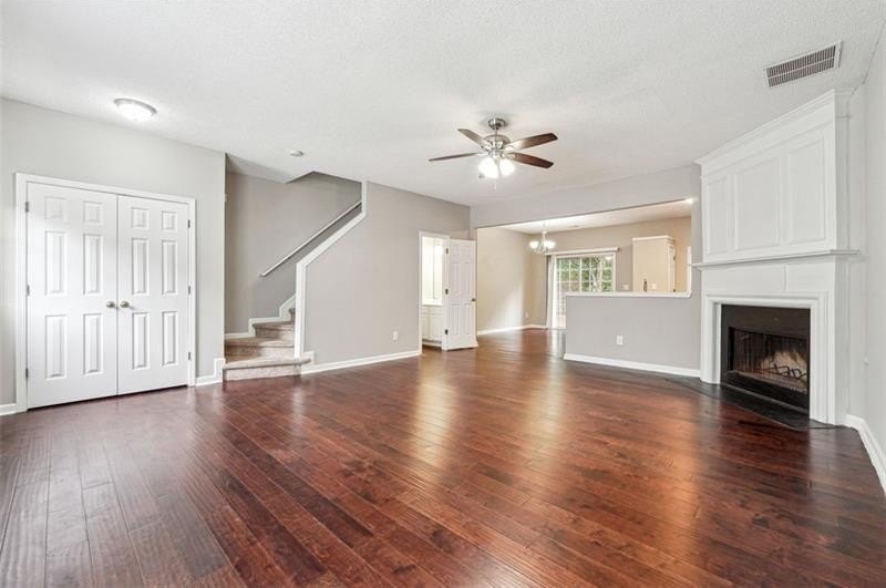 Location! Location! Location! This beautiful updated end unit townhome is in a prime location, easily accessible to Alpharetta, Johns Creek, and Roswell. The main level features an updated kitchen open to the family room, eating area, and half bath all with laminate, hardwood flooring. Upstairs you will find a spacious primary bedroom with a vaulted ceiling and primary bath including a double vanity and walk-in closet. There are also two secondary bedrooms with a secondary bathroom as well as a laundry closet with washer and dryer. All of the interior was just freshly painted. Outside the back door is a private, relaxing patio and backyard area overlooking a beautiful tree filled wooded area. Roof is less than one year old. Additional visitor parking spots for guests are just a short walk away. No rental restrictions. Great schools! Located just minutes from shopping, parks and recreation, schools, highways, restaurants, and more! FHA approved community.