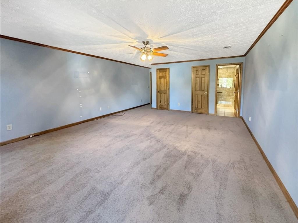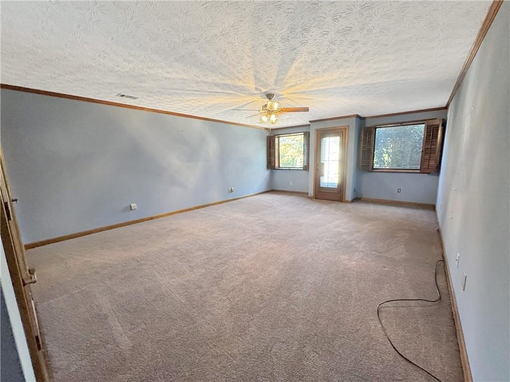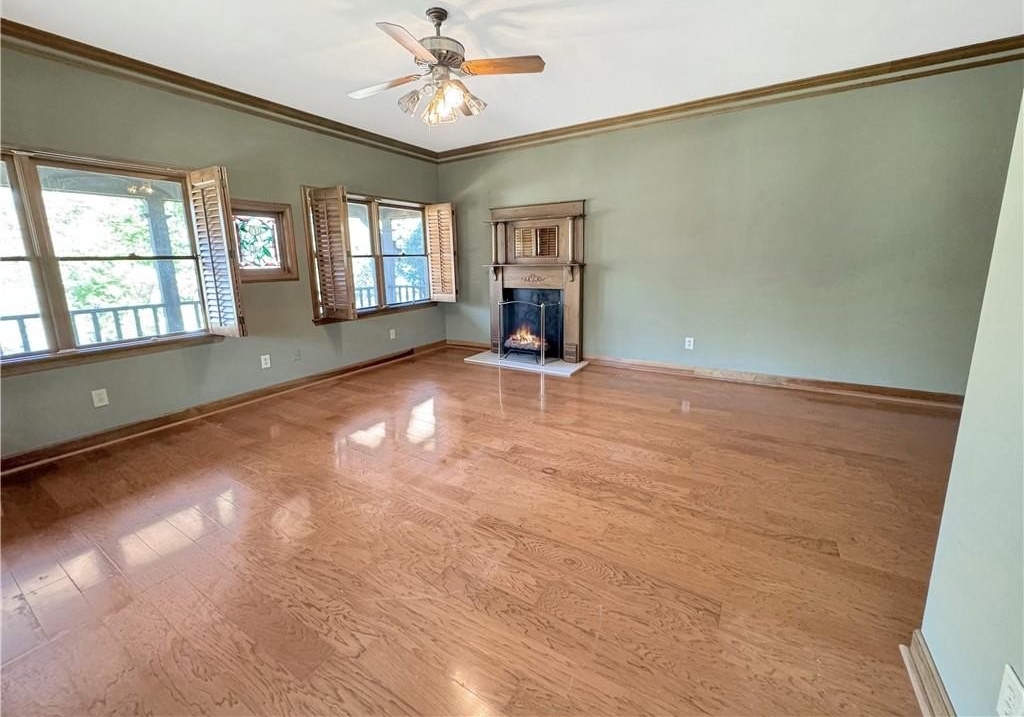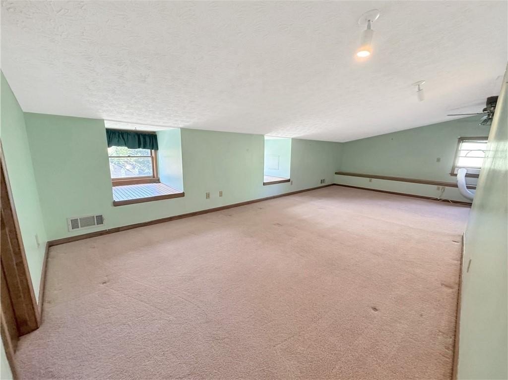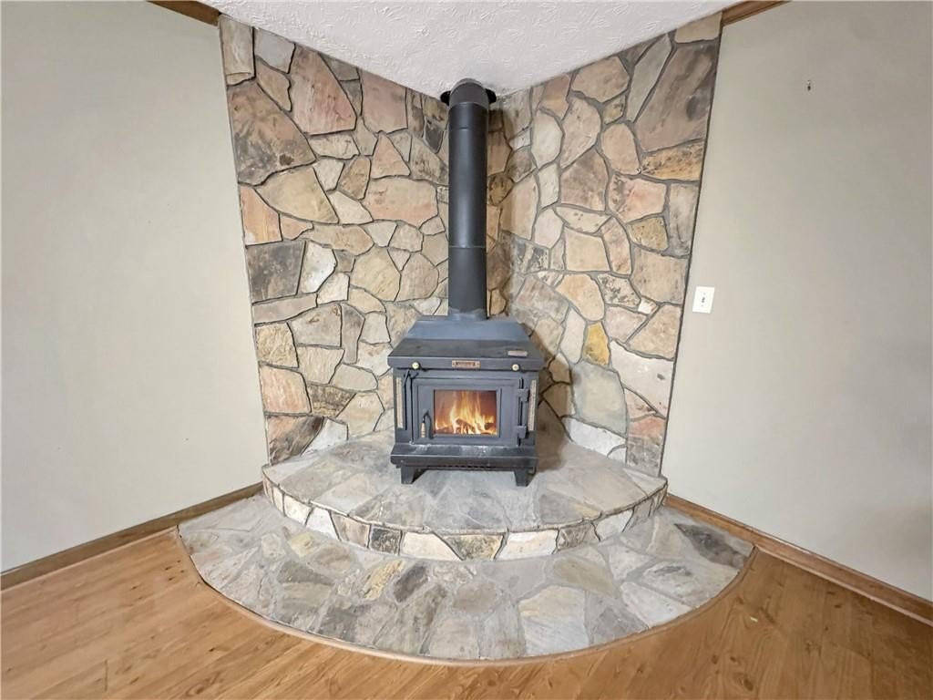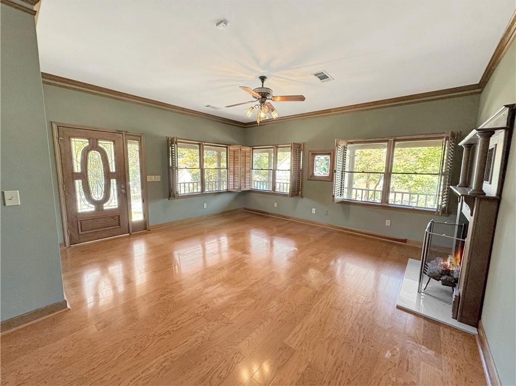 Natural light floods the home through a beautiful picture window and a unique stained glass window that adds character and charm. The oversized den provides ample space for gatherings or quiet evenings in. Outside, a wrap-around porch invites you to take in the peaceful lake views and surrounding nature.