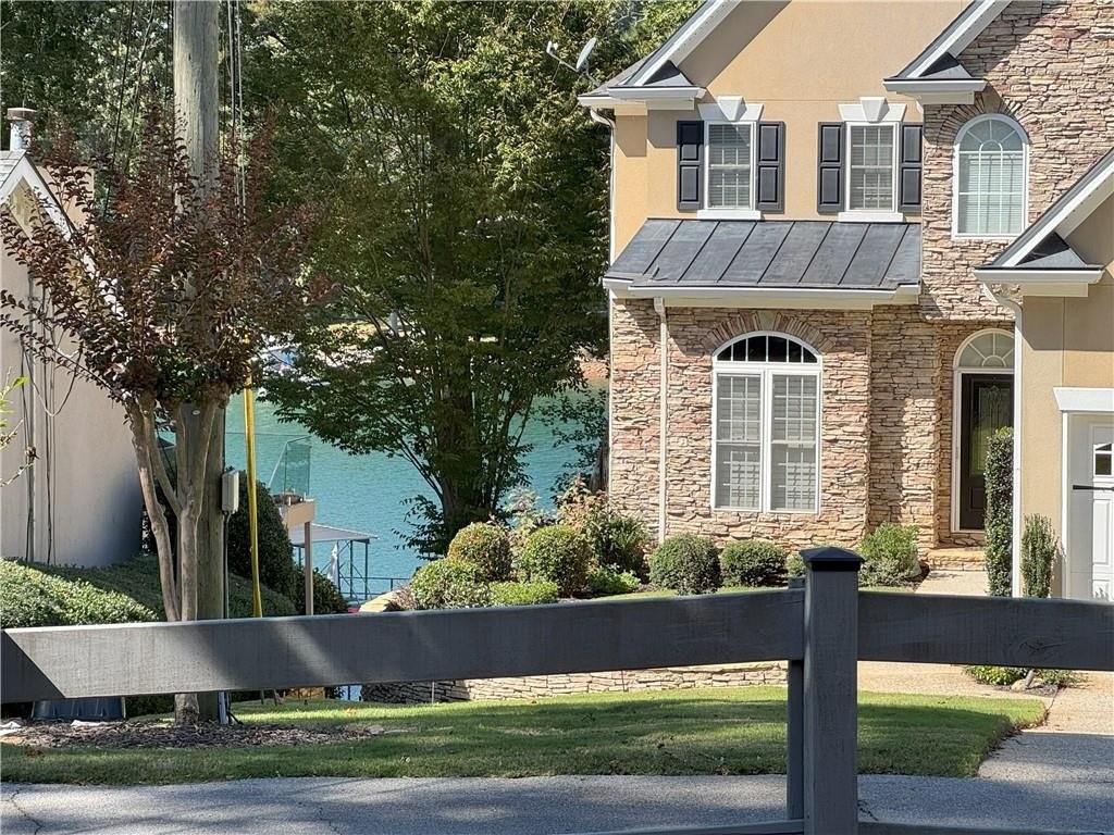 Enjoy stunning views of Lake Lanier from this charming traditional cabin-style home, blending rustic warmth with modern updates. The master suite is conveniently located on the main level and features a beautifully remodeled bathroom with granite countertops. Cozy up by the wood-burning fireplace or relax in the inviting sunroom, which includes an ADA walk-in tub that can also serve as a hot tub.