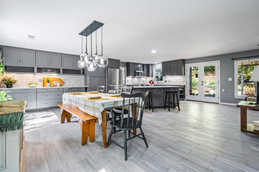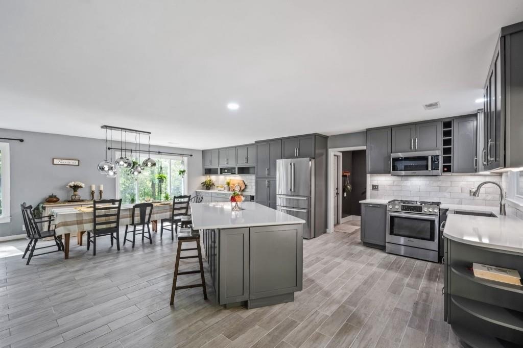 Welcome to this stunning home in Canton, Georgia! This spacious residence features six bedrooms and four full baths, providing ample room for family and guests. The heart of the home is a gourmet kitchen, complete with gorgeous quartz countertops, a large kitchen island, and soft-close cabinets. You'll love the custom shelving and cabinetry, adding both beauty and functionality. Newly updated bathrooms are absolutely beautiful. This home also features a welcoming open concept living area, perfect for gatherings, and a serene backyard ideal for outdoor entertainment complete with a private fenced backyard, large covered patio, and newly built koi pond. With a prime location close to schools, shopping, and parks, this home offers the perfect blend of comfort and elegance. Move in ready and no HOA.