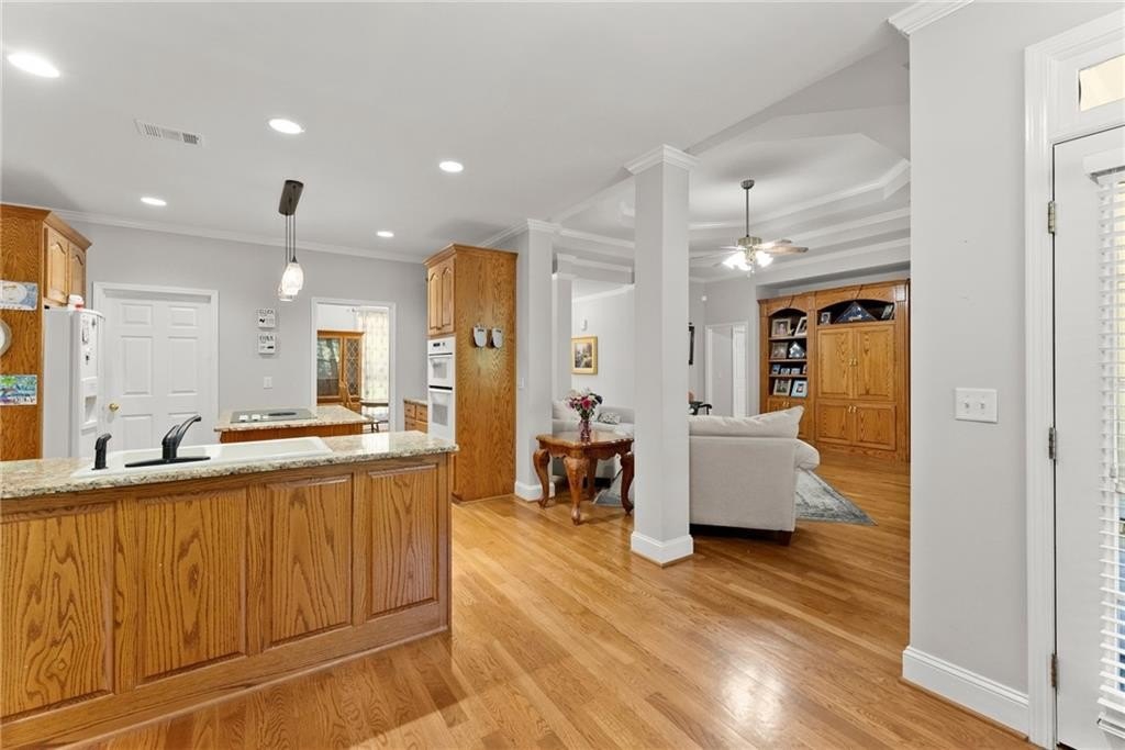 Looking for a private residence with loads of space and NO HOA? Welcome to this custom built ranch over basement home featuring 4 bedrooms, 3.5 baths, and a finished basement all situated on a flat 1.8 acre lot. This home sits back from the road with a extended private driveway leading to the 2 car, side entry garage with extra parking pad. Walk up to the charming covered front porch with cozy stone accents and seating areas complete with ceiling fans where you can relax and look over your property. Enter the home to be greeted by classic hardwood flooring, neutral paint, and loads of natural light. Just off the foyer is the formal dining room with direct access into the kitchen, making this a fantastic place to entertain. Continue on into the main living quarters where you will find an open concept space with your family room, kitchen, and breakfast nook. The family room offers custom features such as a double trey ceiling, builtins, and beautiful fireplace with wood mantle. Move into the kitchen where you will find wood cabinets, lots of counter space, a tile backsplash, granite countertops, a center island with storage, and a view into the family room. Just off the kitchen is a casual dining space, pantry, half bath, and laundry room with additional cabinets for storage. The oversized master suit offers a trey ceiling, direct access to the enclosed back porch, walk in closet, and an en suite bath. The master bath features a huge tile shower, soaking tub, and double sinks. The secondary bedrooms are also spacious and share the second full bath with double sinks and shower-tub combo. Move down to the finished basement where you will find loads of bonus living space to use in your own way. There are multiple flex spaces including a large media/secondary sitting room, game room, play room, gym, and home office. Additionally, another bedroom and full bath are located in the basement making this great for a guest area or teen suite. Enjoy multiple outdoor living spaces overlooking this sprawling, private 1.80 acre lot including the rocking chair covered front porch, a glass enclosed sunroom, a screened in back porch, an open air deck, and a covered lower patio off the basement. This flat lot has endless possibilities with plenty of space to add a pool, garden, fire pit, or animals. This home is centrally located with easy access to local shopping and restaurants, as well as top Cherokee County schools, and local parks. Enjoy seclude, private life all within minutes of multiple thriving Downtown areas with community events, additional restaurants, concerts and more. Downtown Ball Ground is just 15 minutes away, while Downtown Canton and Cumming are within 30 minutes, and Downtown Woodstock 45 minutes. This home really offers it all!