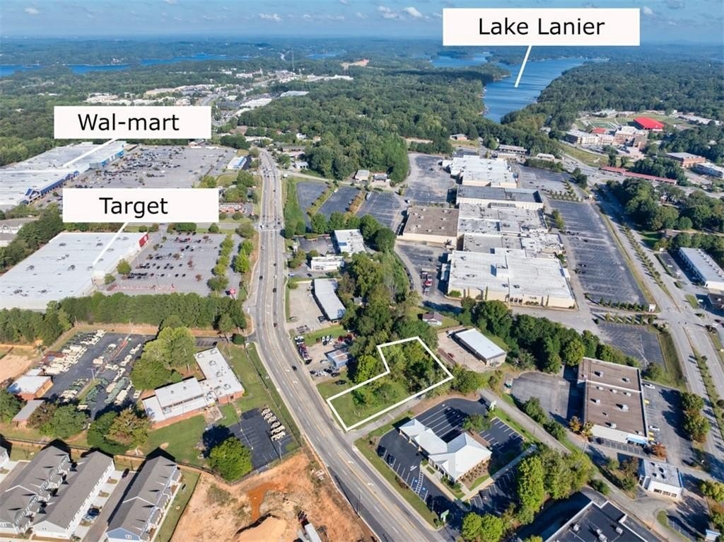 LOCATION!!! Zoned Highway Business. Commercial corner lot ready for development! Bring your ideas! This lot is being sold with adjacent lots 597 Shallowford Rd, and 1 Jones St., Gainesville, GA 30501 (.35 acres), three parcels for a total of .50+/- acres. MUST be purchased together. 1 Jones St. previously had public water, electricity and sewer access. Prime visible location near big box retailers, across from Target, Regions Bank, and minutes from several restaurants & shopping on Jesse Jewell Parkway and Highway 53 E Dawsonville. Just a few miles down the road is access to marina, Lake Lanier, and Highway 985/85. Convenient to downtown Gainesville, Brenau University and NEGA Hospital, come check out this land for development!
