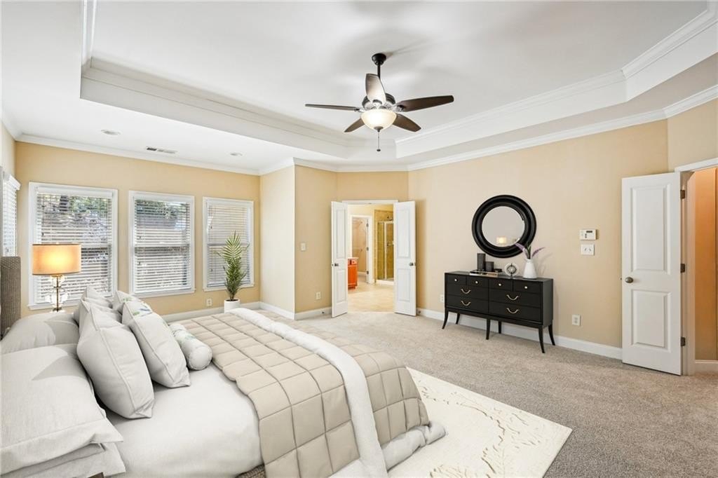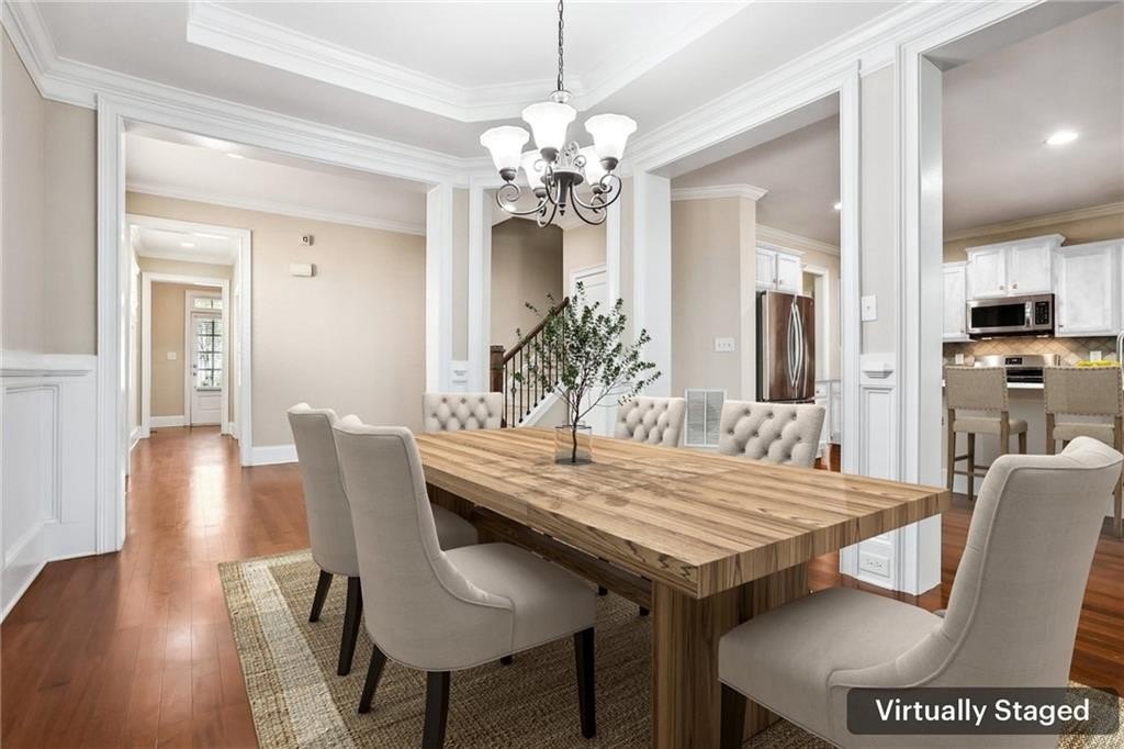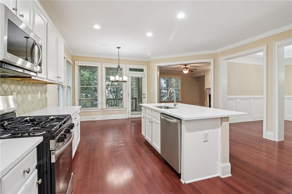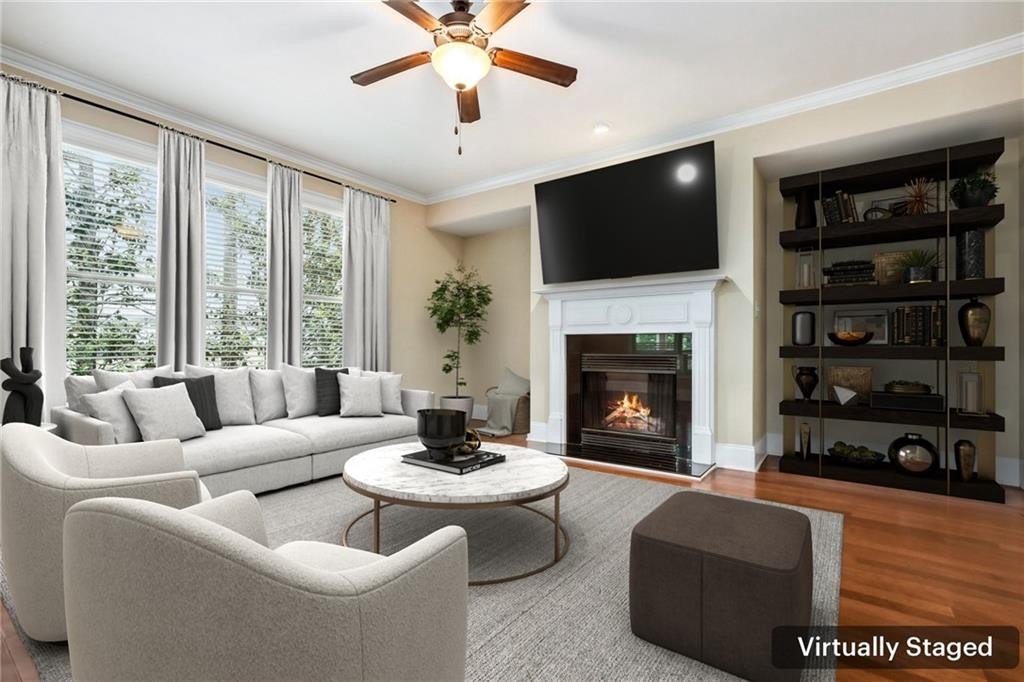 Charming Craftsman in Highland Station – Move-In Ready with REMODELED KITCHEN! This beautifully maintained home offers a functional, inviting layout perfect for daily living and entertaining. The main level features engineered hardwoods, crown molding, updated lighting, a formal dining room with tray ceiling, and a cozy fireside den. The bright, modern kitchen has white cabinets, quartz countertops, a large island, tile backsplash, stainless steel appliances, and ample storage. Off the kitchen are a pantry, garage access, and a sunny breakfast area opening to a covered deck. Upstairs, brand-new carpet flows throughout. The spacious primary suite includes a double vanity, soaking tub, walk-in shower, and large closet. One secondary bedroom has a private en-suite, while two share a Jack-and-Jill bath. The daylight basement offers a finished bath, exterior access, and room to expand. Recent updates include a newer roof, HVAC systems, water heater, and more. HOA covers lawn care—minutes from schools, shops, and dining! Book your tour today!