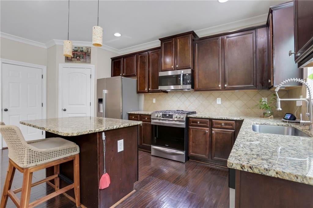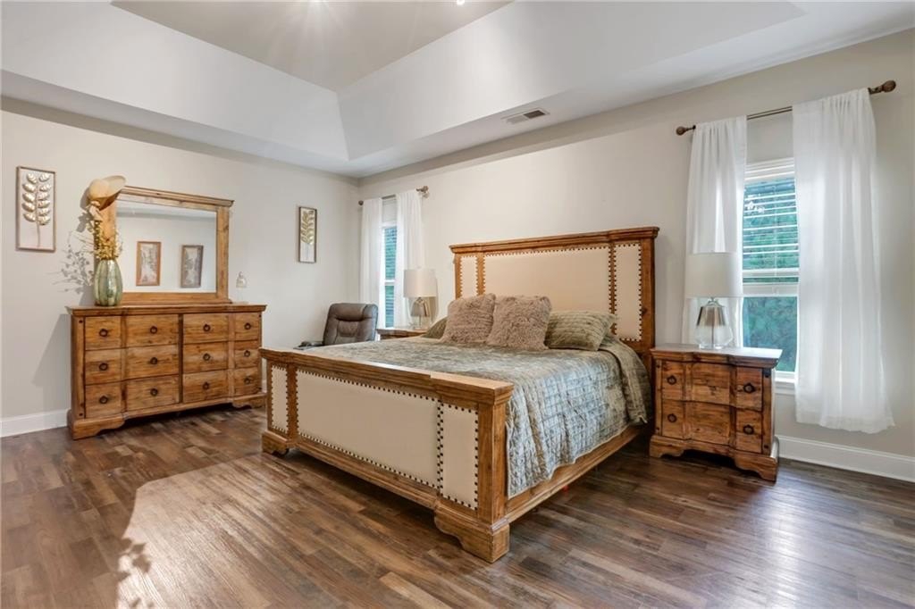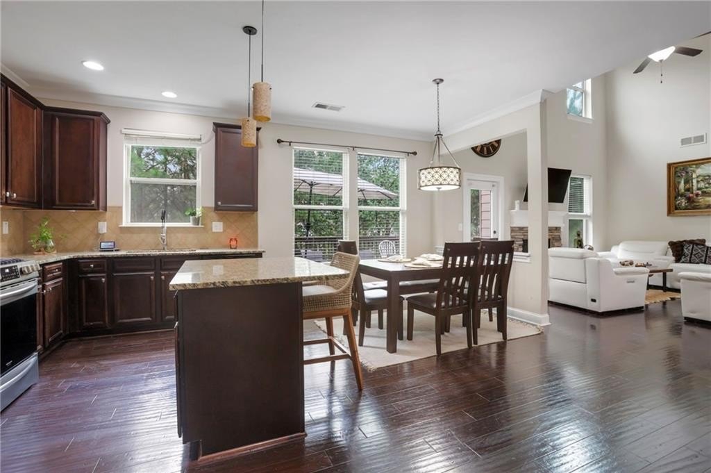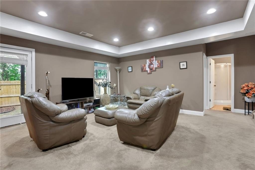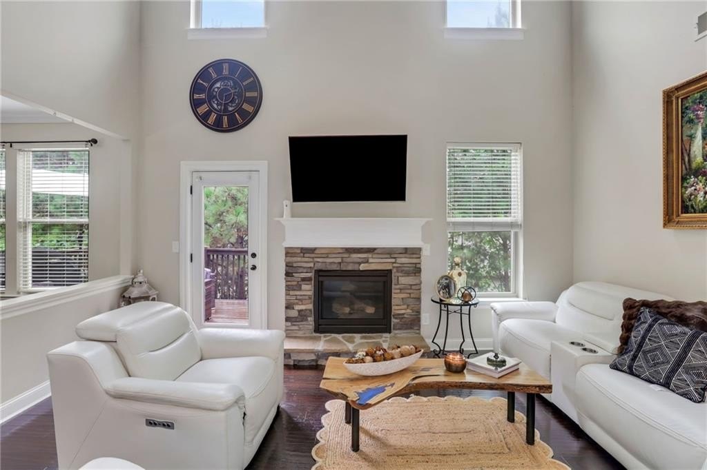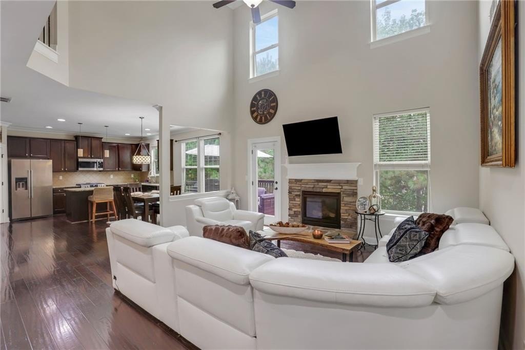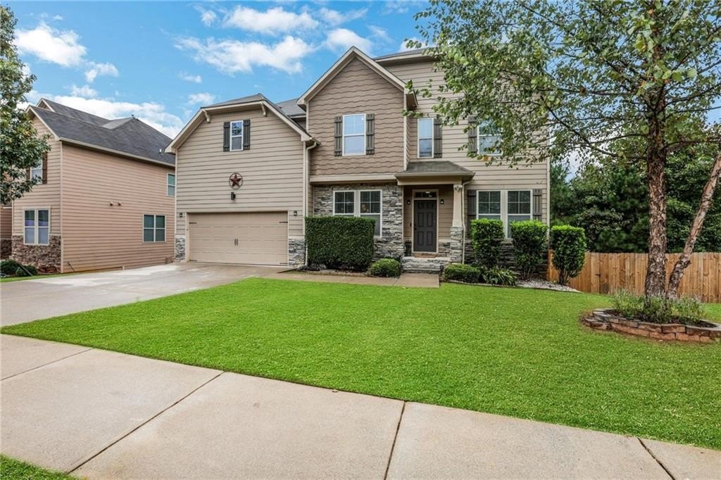 Don’t miss your chance to own this beautiful home in one of the most desirable areas near Lake Lanier! Located less than half a mile from Lake Lanier and Buford Dam parks—and just 10 minutes from GA 400—this property offers the perfect balance of tranquility and accessibility to shopping, dining, and outdoor recreation. Built in 2013, the home features an open layout designed for modern living and effortless entertaining. A formal dining room and living room (or office) flank the foyer, leading to a stunning two-story family room with a stone fireplace and built-in bar area. The kitchen is the heart of the home, offering a large granite island, stainless-steel appliances, gas range, walk-in pantry, and a convenient coffee station—ideal for both everyday use and hosting gatherings. A full bedroom suite on the main level provides flexibility for guests or multi-generational living. Upstairs, the spacious owner’s suite feels like a private retreat with a luxurious spa-style bath and an expansive closet. Three additional bedrooms offer plenty of space for family, guests, or home office needs. The finished terrace level expands your living space with a large recreation room, oversized bedroom, full bath, and abundant storage—perfect for movie nights, a gym, or teen hangout. Enjoy peaceful evenings and beautiful sunsets from your back deck overlooking a private, wooded backyard. This home combines comfort, location, and functionality—offering everything today’s buyers are searching for!