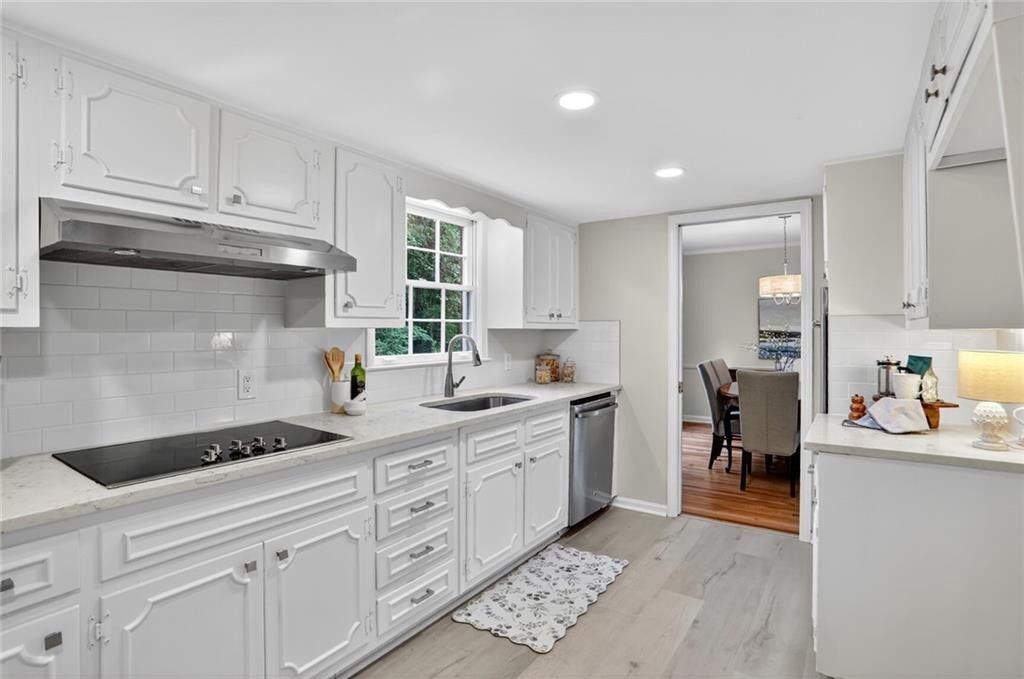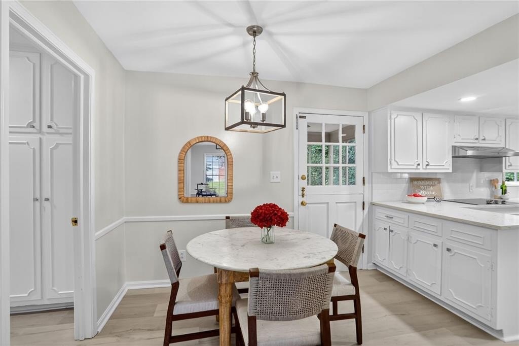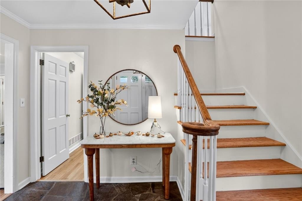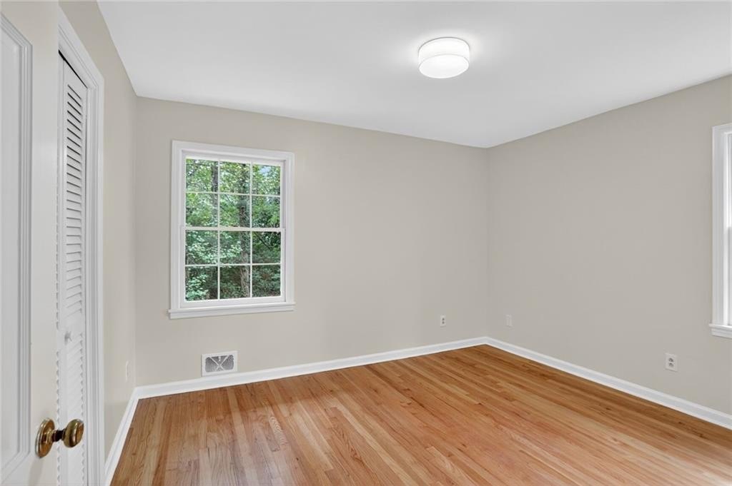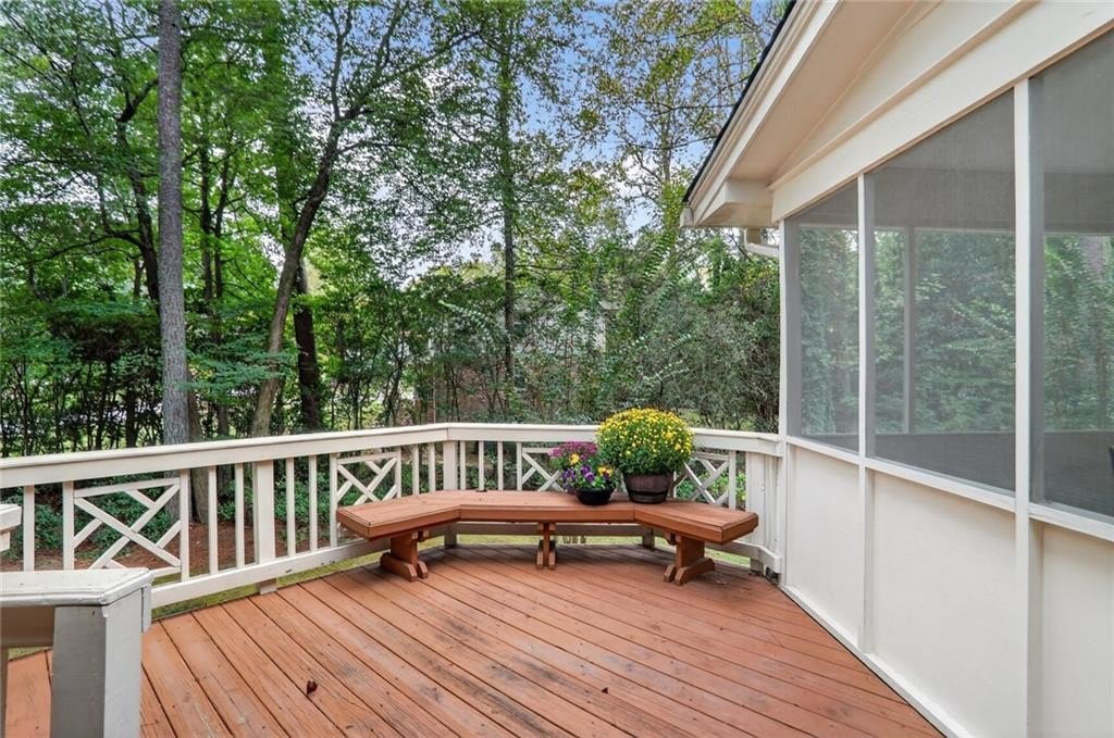 Classic Dunwoody Charm Meets Modern Comfort. This timeless 4-sided brick traditional sits on a premier corner lot and offers 4 bedrooms, 2.5 bathrooms, plus a versatile bonus room upstairs, ideal for an office, nursery, or seasonal closet. Fresh updates include hardwood floors throughout, new lighting, fresh interior paint, a new roof, and HVAC (2022). The main level is designed for both everyday living and entertaining. A welcoming family room features a wood-burning fireplace and built-in bookshelves. The kitchen and breakfast room shine with white cabinetry, new quartz countertops, and a stylish tiled backsplash. A spacious dining room and living room provide the perfect setting for larger gatherings, while the laundry room adds convenience with built-in pantry storage. The lot includes a natural creek buffer and mature hardwoods, the property extends its charm outdoors with a screened porch and patio. The partially finished basement offers additional space, a workshop, and abundant storage. Cambridge Estates has no HOA fees and you'll love the welcoming neighbors and sense of community. Perfectly located near Dunwoody High School, Brook Run Park, Perimeter Mall, and all the best of Dunwoody, with quick access to major highways for an easy commute. This home is not located in a flood zone, lot size is almost 1/2 acre - property line extends past the creek.