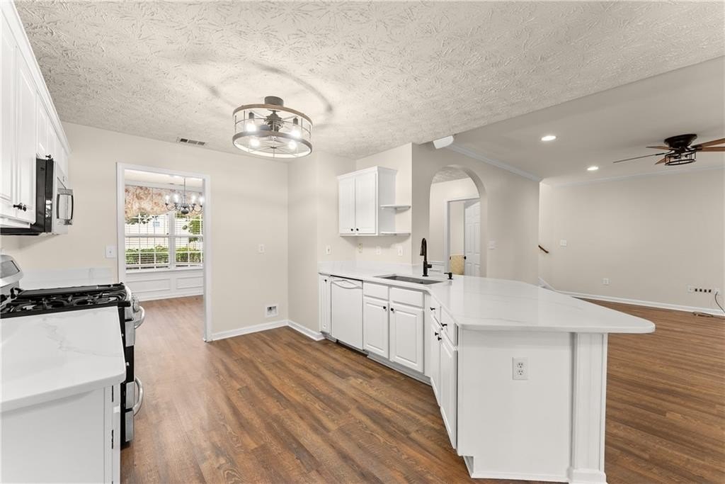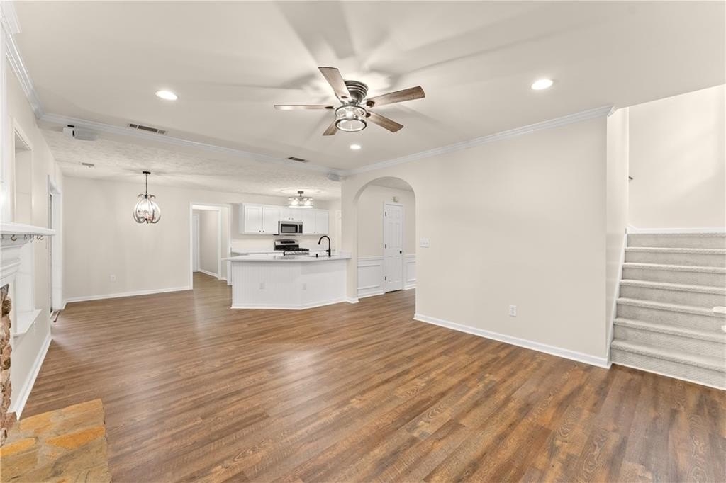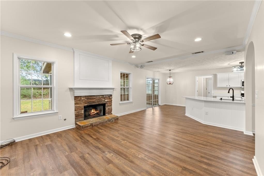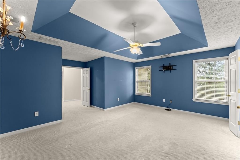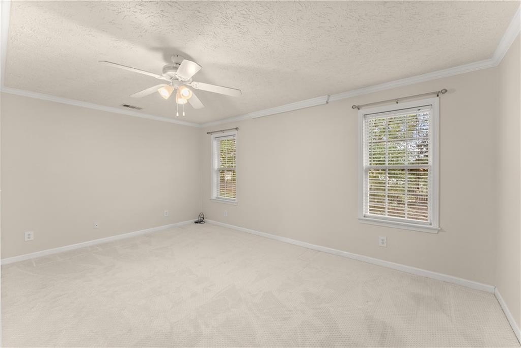 WELCOME HOME! Beautifully Maintained SOUTH FORSYTH CO Home! This delightful 5 Bedroom, 2.5 Bath home offers CONVENIENCE, STYLE and COMFORT. BEST SCHOOLS - ESTABLISHED swim/tennis community of CHADBOURNE - Inside, find NEW Waterproof Luxury Vinyl Plank flooring downstairs and in all bathrooms - NEW CARPET upstairs - NEW QUARTZ countertops and special order silgranit kitchen sink - NEW remote-controlled lights/fans in kitchen and living room - Sound system wired in living room, dining room, front office/living area, and primary bedroom - Ceiling fans in every bedroom - Oversized Primary bedroom with walk-in closet - Freshly painted rooms - NEW HVAC/Furnace down (2025) Newer HVAC up (2019) - 2-CAR garage w/NEW thermo-core insulated garage doors and motors. TONS of STORAGE with two attic spaces.
