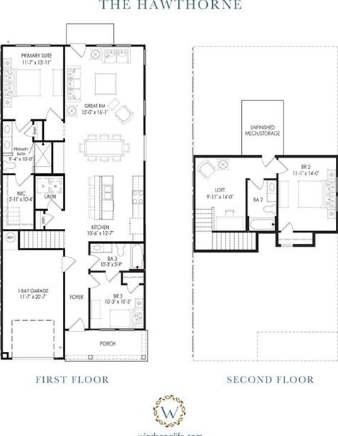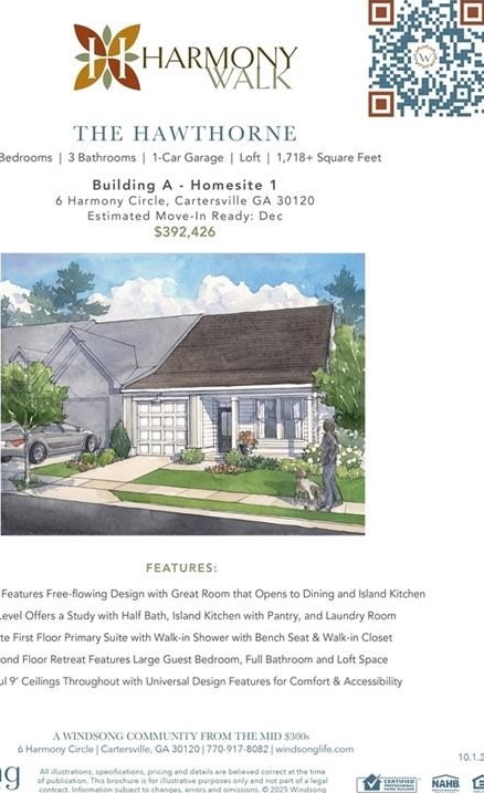 Welcome to Windsong's newest townhome community in Cartersville! All homes offer the primary bedroom on the main floor, with thoughtfully crafted, open floorplans and quality finishes. This end unit Hawthorne has a secondary bedroom and full bath on the main level, a wonderful island kitchen with soft close cabinet doors opening to the large dining area and great room. The inviting owner's suite features a large low-threshold shower with bench seat, designer tile floor and walls with shampoo niche. Second floor features large guest bedroom, full bathroom and loft space for second living area. 9' ceilings throughout the main level. Insulated garage doors, irrigation system - all of the top quality features you expect to find in a Windsong Community!
