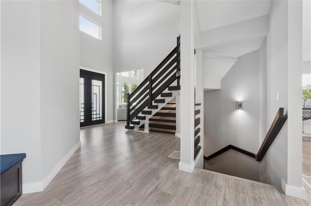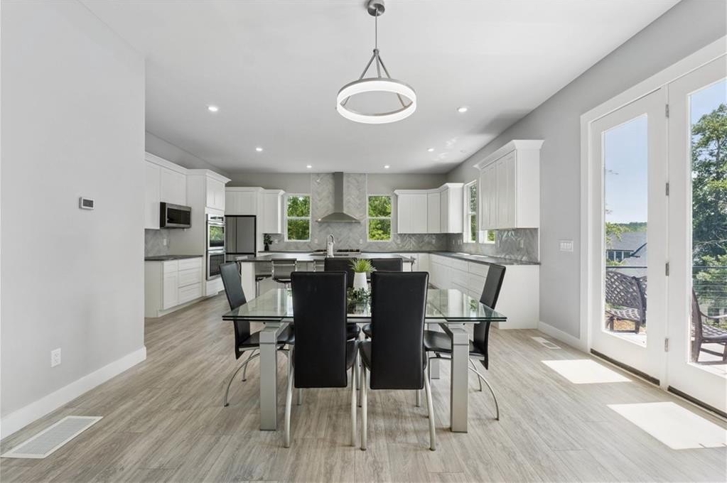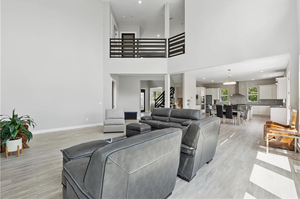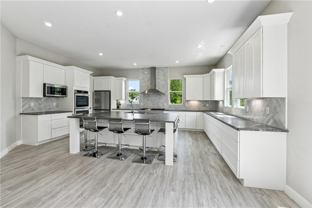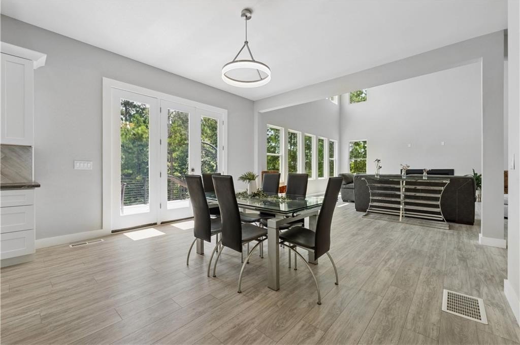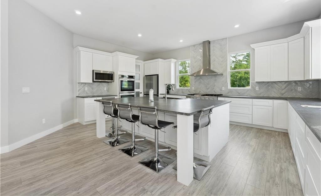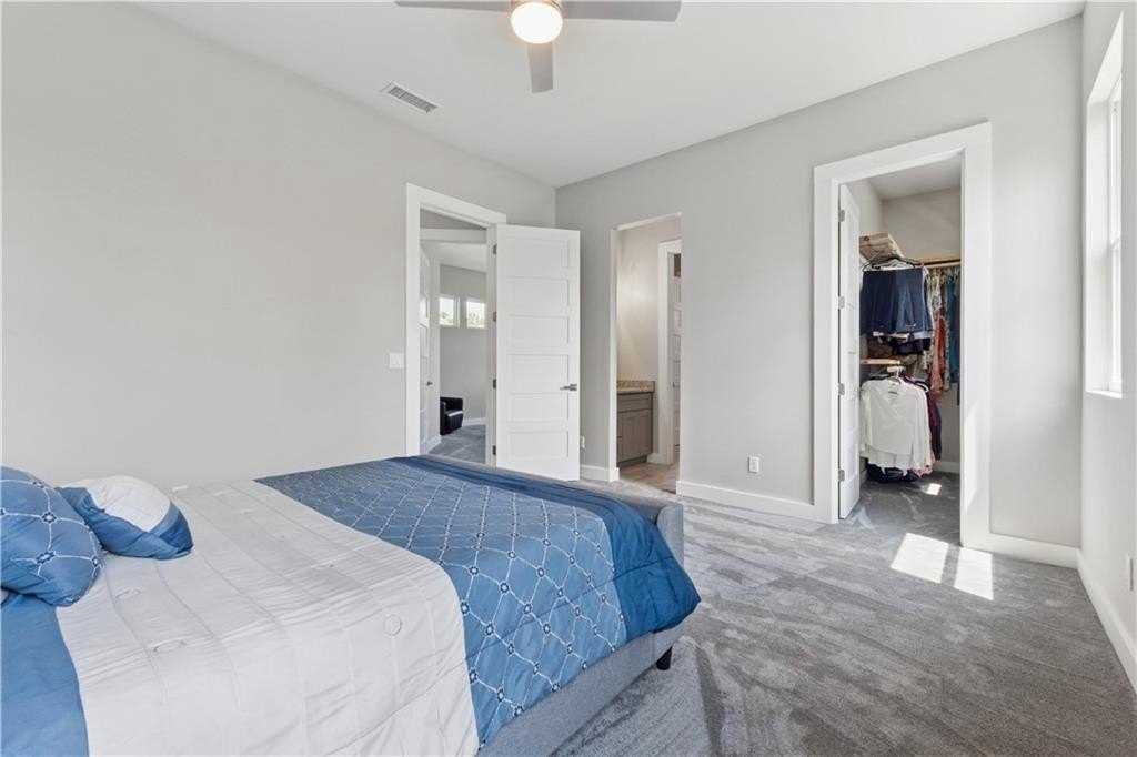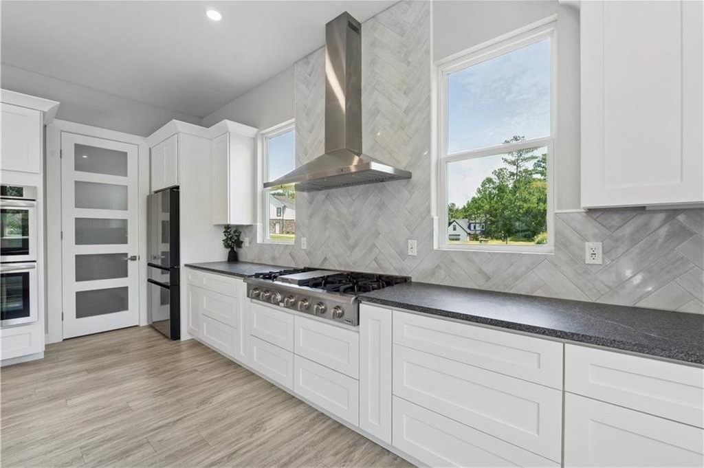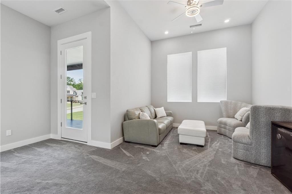Don't Miss the Opportunity to Own a Stunning Contemporary Home situated on a corner lot in a golf course community in the prestigious Arbor Springs subdivision. Enter into the large foyer through a beautiful iron and glass front door, when you step inside you will be greeted to a large foyer with a soaring ceiling and custom staircase. Throughout the home are high ceilings and 8-ft doors. The main floor consists of a formal living area which can be utilized to meet the needs of your family as a 2nd family room, office or flex space. The large gourmet kitchen with expansive island has beautiful leathered granite countertops, 48-inch cook top, double oven, contemporary 48-in range hood, microwave with convection bake and air fryer, dishwasher, a great size walk in pantry, two designer sinks with multiple features and an abundance of quality cabinetry. Off the open concept kitchen is a dining area with full view of the family room; enjoy relaxing on the deck off the dining area. The family room has a soaring ceiling and features a contemporary fireplace. Additionally on the main floor and ensuring privacy and comfort for guest you will find a privately situated generous guest suite with ensuite, mudroom with ample drop space and storage cabinets, coat closet and spacious laundry room with sink and ample storage cabinets. The second floor consists of two generous sized secondary bedrooms with large walk-in closets, a bathroom with two private vanities serving each of the bedrooms and the primary suite. The large primary suite as a retreat and large walk-in closet. Enjoy your favorite morning or evening beverage on the large private balcony. Just steps away is the luxurious spa inspired primary ensuite. Relaxing is easy with the luxury shower tower and elegant whirlpool jetted tub with 31 hydro-therapeutic massage air jets for a soothing total body aero-therapeutic massage, the tub is also equipped with ergonomically-molded seating space for two adults, comfortable armrests located on both sides of the tub and heater to ensure the water maintains your desired temperature provides the luxury and comfort desired in a primary bath suite. All bedrooms are thoughtfully situated for privacy and quietness with no adjoining bedroom walls. The home would not be complete without the convenience of the perfectly situated 3-stop elevator shaft. Additionally, there is an oversized 3-car garage with a one of a kind private attached 2-story flex space with water line for sink/coffee bar can be great for a private office/crafts or endless possibilities; no need to climb attic stairs storage or use the garage for storage or lawn tools, the lower level of the flex space provides ample space for all your storage needs/golf cart space and has a double door exterior access leading to a slanted concrete slab for convenient exit and entry. The unfinished terrace level is framed for 8ft doors, is plumbed and awaiting your special touch. The community consists of a swimming pool, two lakes, sidewalks, tennis/pickleball courts, park and play ground. Without leaving the community and just a golf cart ride away at the main entrance enjoy the convenience of the Arbor Spring Plaza with Publix Supermarket, restaurants, salon, dentist office and space for many other future retailers and restaurants. Located in the sought after Northgate school district. The home is minutes from the Ashley Park shopping area, Newnan Pavilion, movie studios and the Hartsfield Jackson International Airport. Owner is Listing Agent