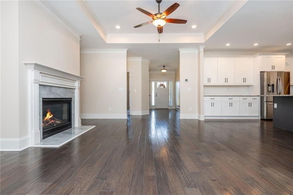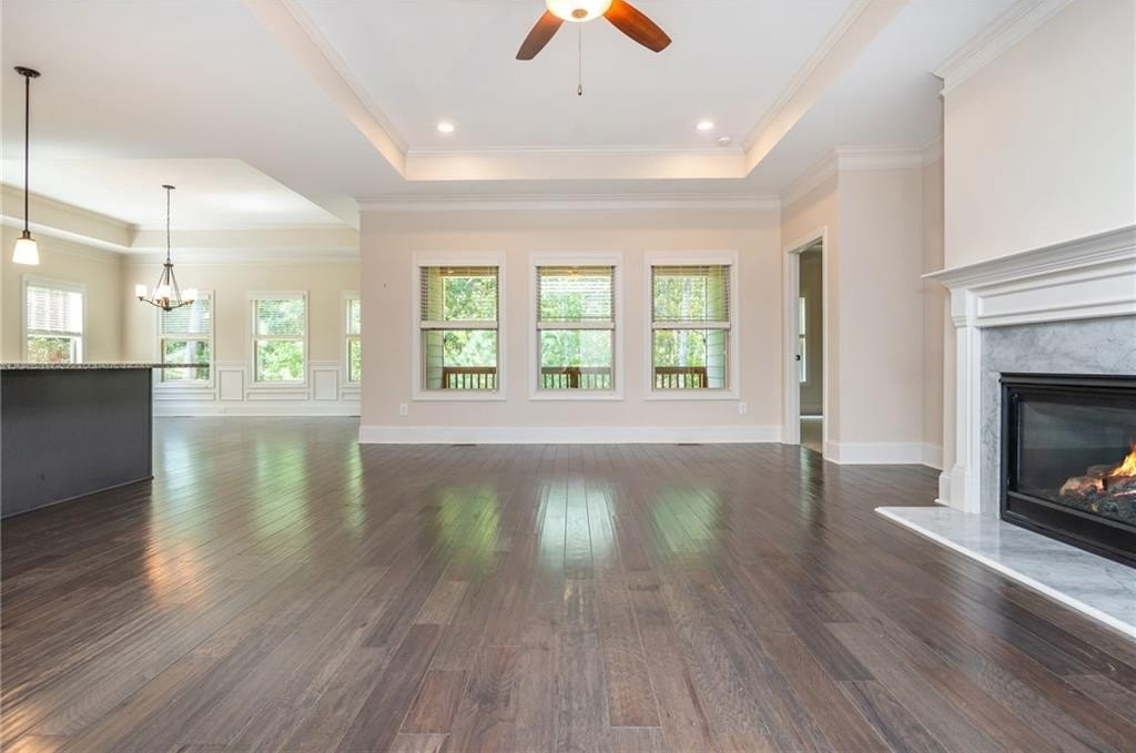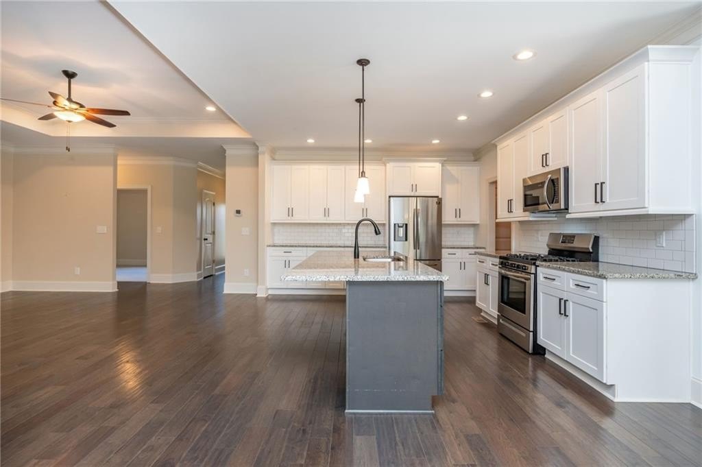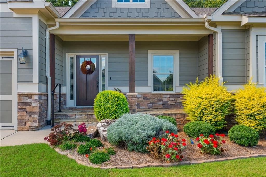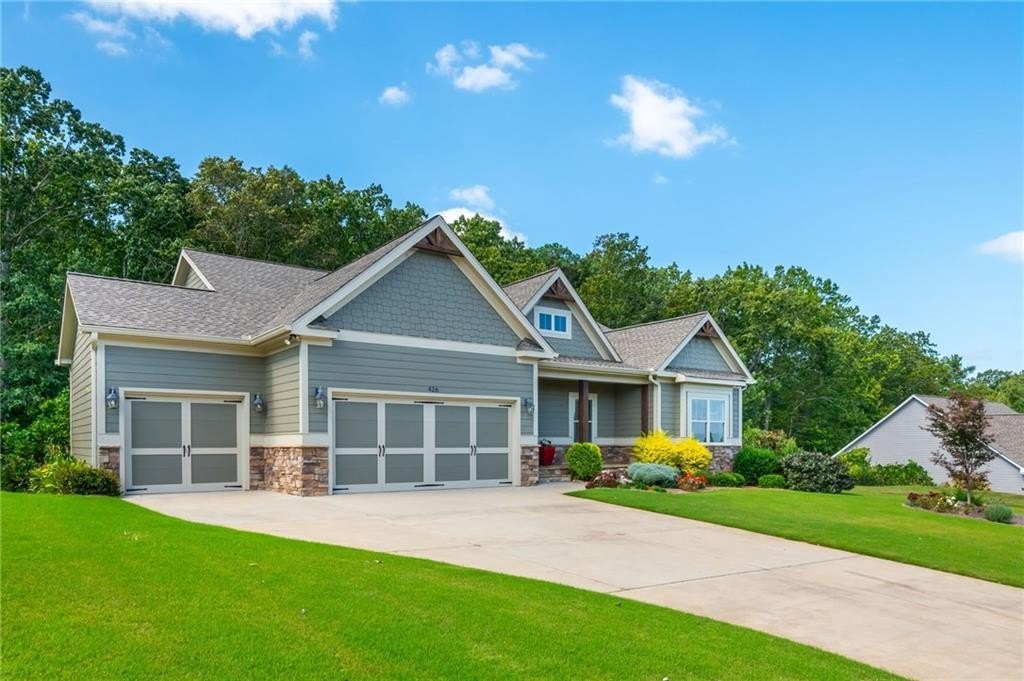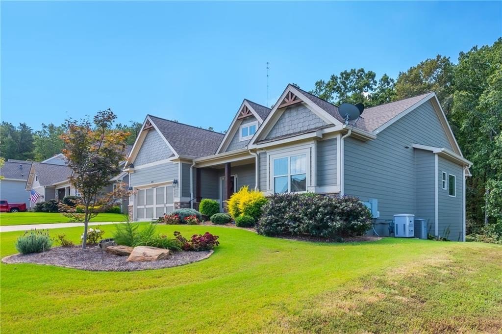 Peaceful living meets modern comfort in this stunning Canton ranch, perfectly designed to harmonize with the wooded surroundings of The Preserve at Canyon Ridge. Discover the ideal blend of natural beauty, style, and convenience in this beautifully maintained 3-bedroom, 2-bath home with serene views and easy access to all that Canton has to offer. Designed for effortless one-level living with the added versatility of a full, unfinished daylight basement, this home showcases thoughtful design, quality craftsmanship, and timeless appeal. Step inside to a bright, open-concept layout filled with natural light. Hardwood floors flow throughout the main living areas, complemented by elegant crown molding and fine detailing that accentuate the home’s elevated finishes. The spacious family room with its cozy gas fireplace seamlessly connects to the inviting dining area—perfect for gatherings and everyday living. The chef’s kitchen impresses with granite countertops, upgraded cabinetry, stainless steel appliances, and a large island with breakfast bar—perfect for everyday living and entertaining. Just off the kitchen, a generous walk-in pantry and a convenient mudroom at the garage entry keep daily routines organized and efficient.The owner’s suite is a private retreat, highlighted by a double tray ceiling and a spa-inspired bath with granite countertops, a double vanity, garden tub, separate shower, and a large walk-in closet. Two spacious secondary bedrooms provide comfort and flexibility—ideal for family, guests, or a home office. Enjoy outdoor living on the covered back porch overlooking the serene wooded preserve, or relax on the charming flagstone front porch. The desirable 3-car garage adds convenience, and the home includes a whole-house generator and a Rain Bird irrigation system providing peace of mind and easy maintenance for both home and landscape. The full unfinished daylight basement with a covered patio offers endless potential for future expansion, recreation, or storage. Residents enjoy exceptional community amenities, including a zero-entry swimming pool with a mushroom fountain, a cabana-style clubhouse for gatherings, and a playground conveniently located next to the pool. Ideally situated in a tranquil, scenic setting just minutes from Riverstone Parkway’s shopping and dining, and a short drive to Downtown Canton, parks, walking trails, and nearby golf courses. Modern comfort, timeless design, and an unbeatable location—schedule your showing today and experience the best of Canton living.