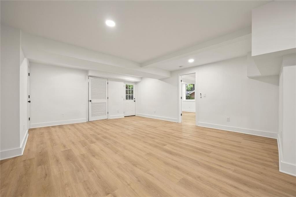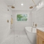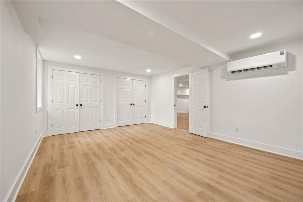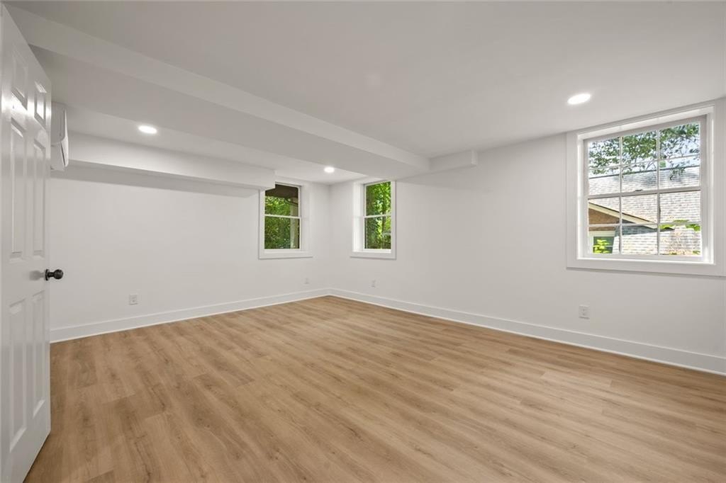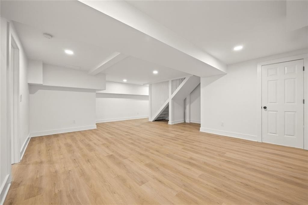 The main-level owner’s suite offers a private retreat with spa-inspired finishes including a frameless glass shower, dual vanities, and a dedicated private laundry room. Upstairs, you’ll find three spacious bedrooms and a second laundry area. The finished daylight basement provides versatile space for a gym, home office, theater room, or in-law suite.