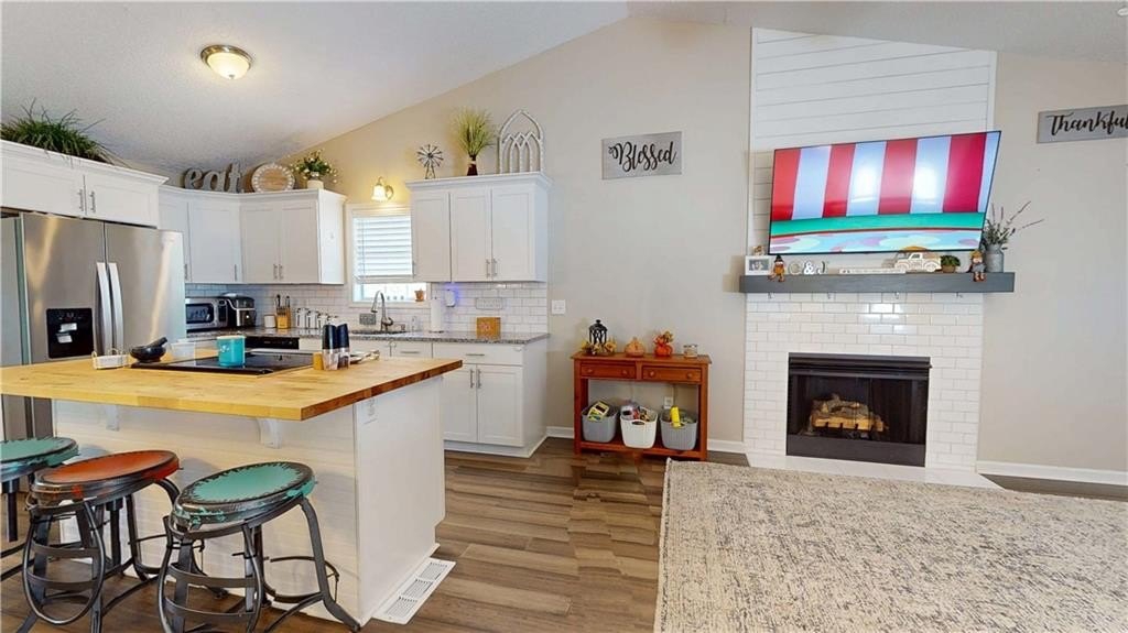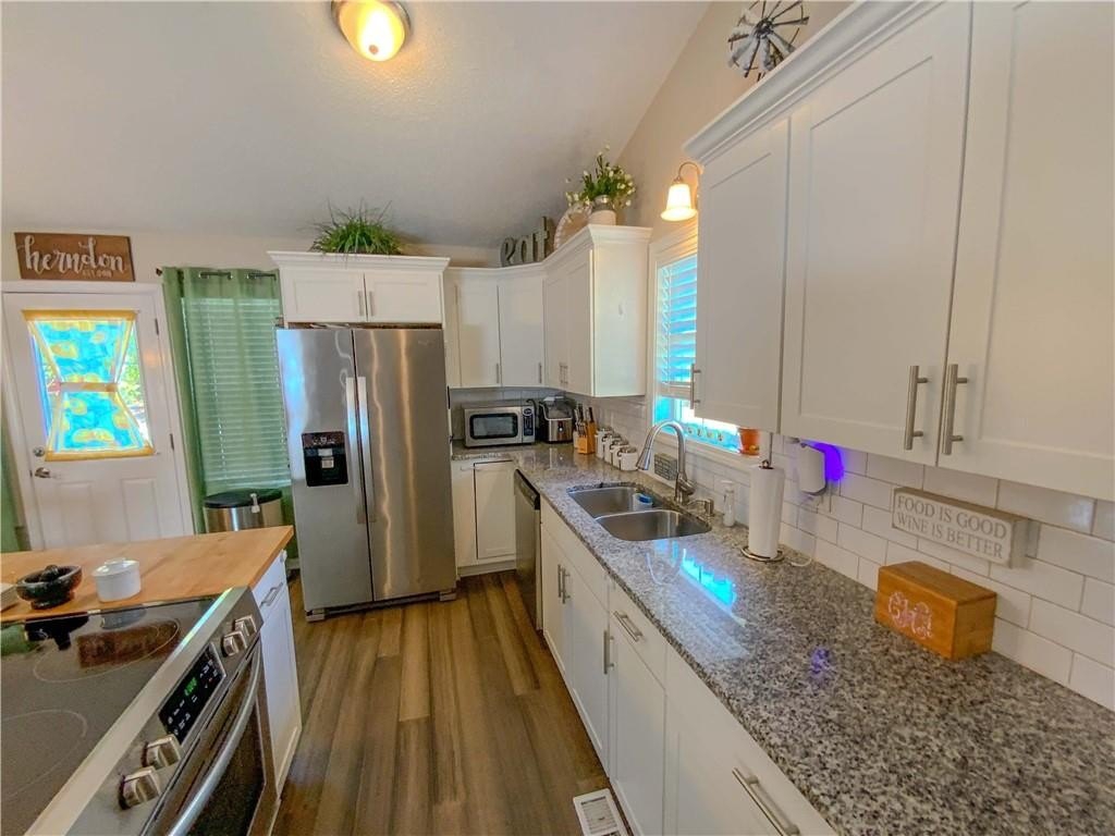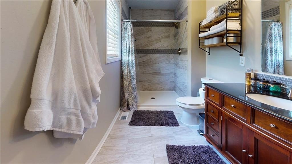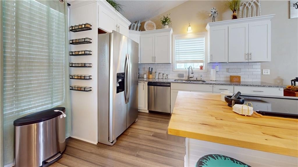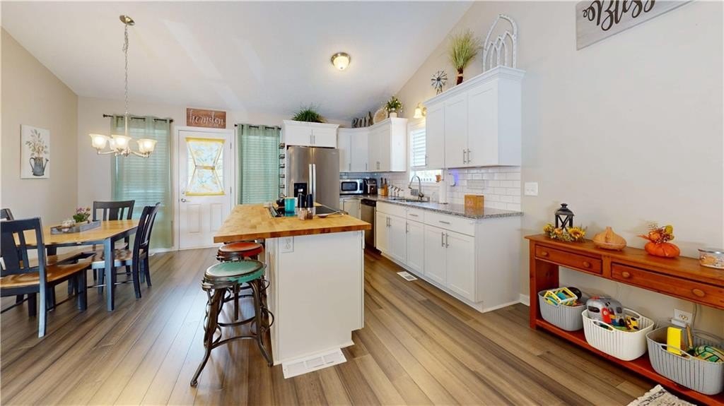Recent Complete Remodel Gently lived in! HVAC, Water Heater, Septic, Roof, Appliances, Cabinets, Counters, Laminate hardwood throughout main, wood style tile in the lower level ALL 5 YEARS NEW! This remodel is just gorgeous! Island with cooktop and Breakfast bar with glorious butcher block top! Granite Counters, subway backsplash and Gleaming White Cabinets! Private deck just outside the Kitchen is a beautiful spot to grill out and relax! Vaulted Great room Lives Large with gas log fireplace and updated tile! So Open and Inviting! Luxurious Owners suite with updated tile shower and Lovely Barn doors to access Owners Bath and Owner's closet...a really beautiful feature! Generous secondary bedrooms share the delightful hall bath. Beautifully finished lower level with Laundry Room, Large closet, Finished room for a bedroom or bonus room, Large enough that it could be divided and serve as both! Updated Tile flooring that looks like wood leaves it versatile for your future vision! Door from the finished basement leads to the Fantastic Fully Fenced, completely level Back Yard...a dream for kids and furry babies. Large Garage with Garage door opener, ample room for parking, storage and for your projects! Large Level driveway! This gem is a must see that will not last!