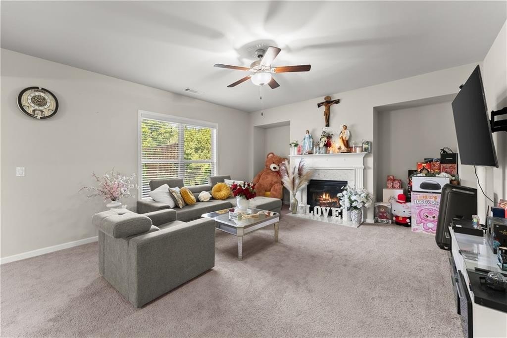 Enjoy cooking and entertaining in the open-concept kitchen, complete with granite countertops, white cabinetry, a large island, overlooking the cozy family room. The updated light fixtures add a fresh, modern touch throughout.