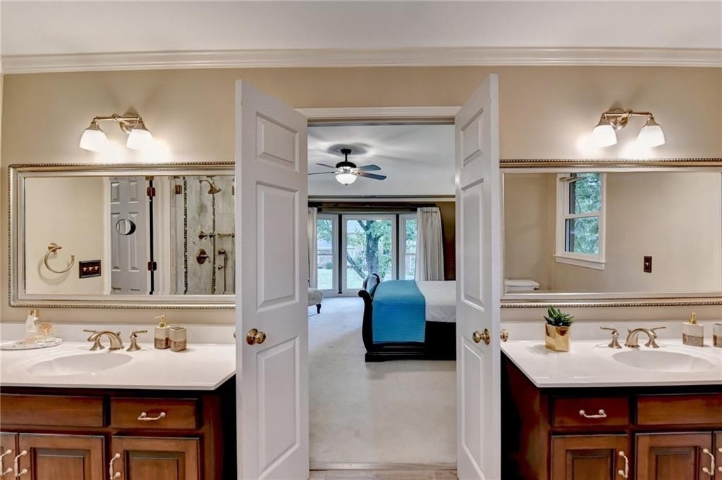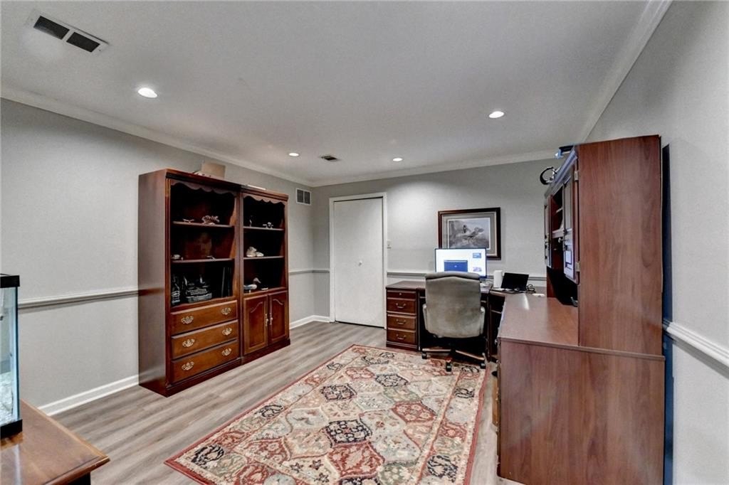 Nestled on a quiet cul-de-sac street just steps from the neighborhood park in the coveted Country Club of Roswell at Willow Springs, this beautifully upgraded 4-bedroom, 4.5-bath home offers timeless charm and modern comfort. Step inside to gleaming hardwood floors that grace the main level, leading you through a living room/office, banquet dining room and spacious family room with custom built-ins and seamless flow into a sun-drenched sunroom—perfect for morning coffee or relaxed entertaining. Step outside to the deck and enjoy the peaceful views of the backyard.