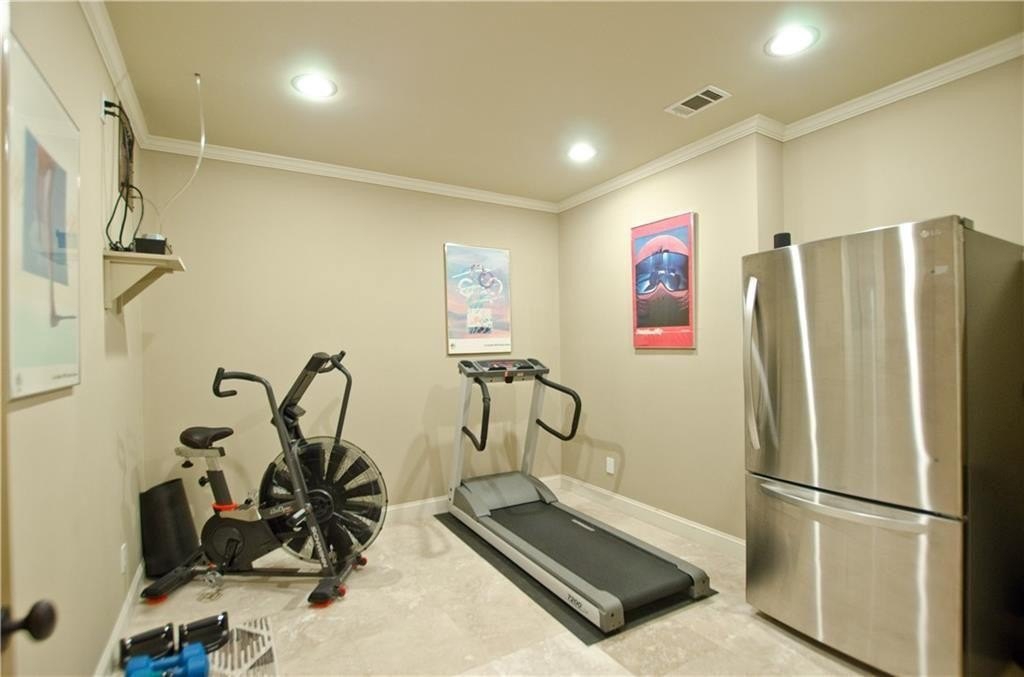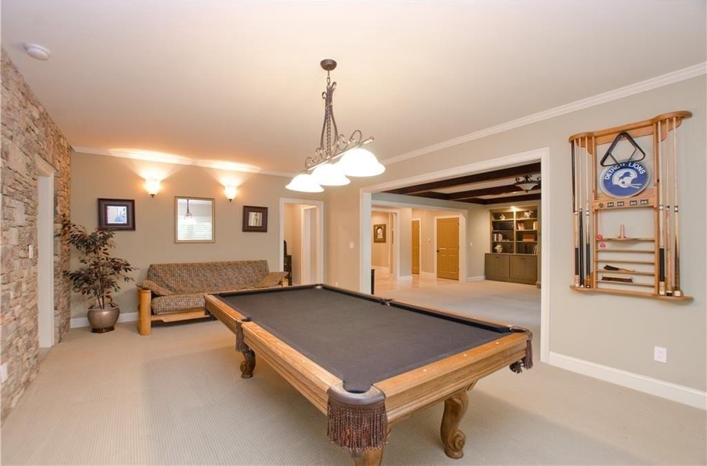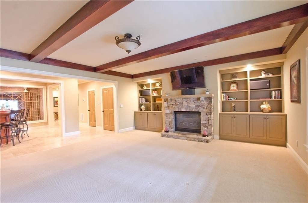The fully finished terrace level—featuring a custom bar, wine cellar, fireside den with built-ins bookcases, exercise room, full bath, and a spacious game/billiards room for hosting in style.