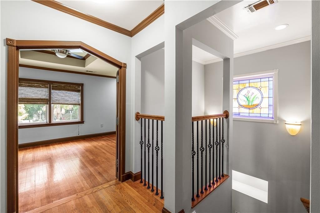 Two story home, with a foyer entrance to downstairs open spacious family room, bright kitchen, dining room, pantry, full bathroom, and a hallway leading to two bedrooms connected to a gorgeously landscaped backyard including a two car parking curb that is fenced with a fully automated gate. Upstairs has an impressive, private suite including a large primary suite overlooking the gorgeous backyard, a separate bonus room, en-suite bathroom with double sink vanity, two (his/hers) walk in closets, and a private laundry room with additional storage space.