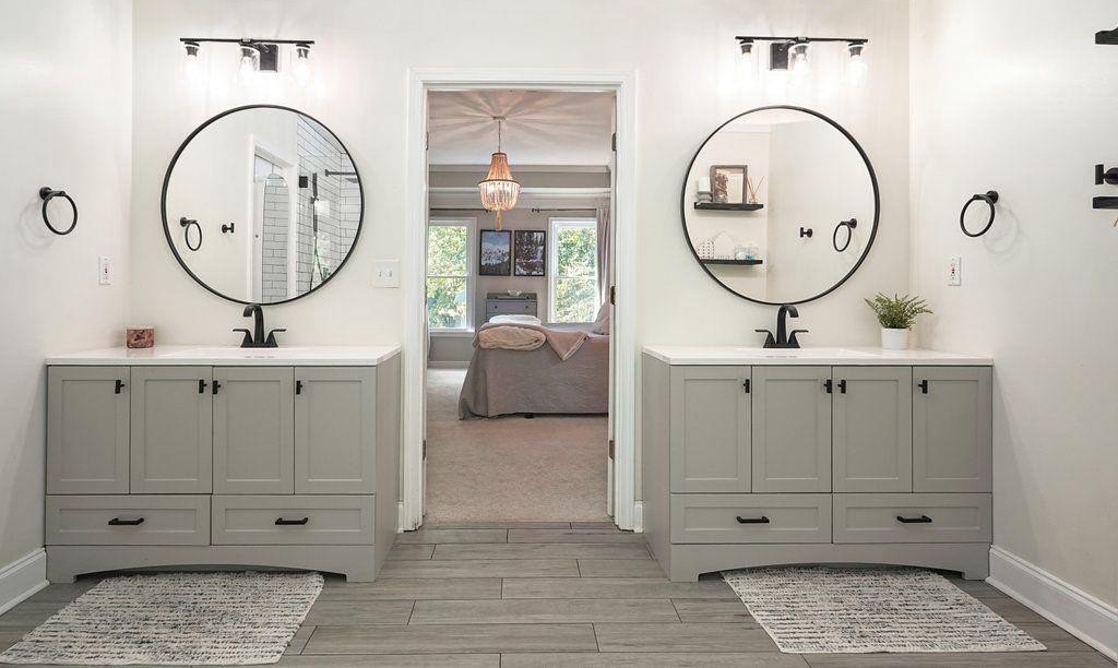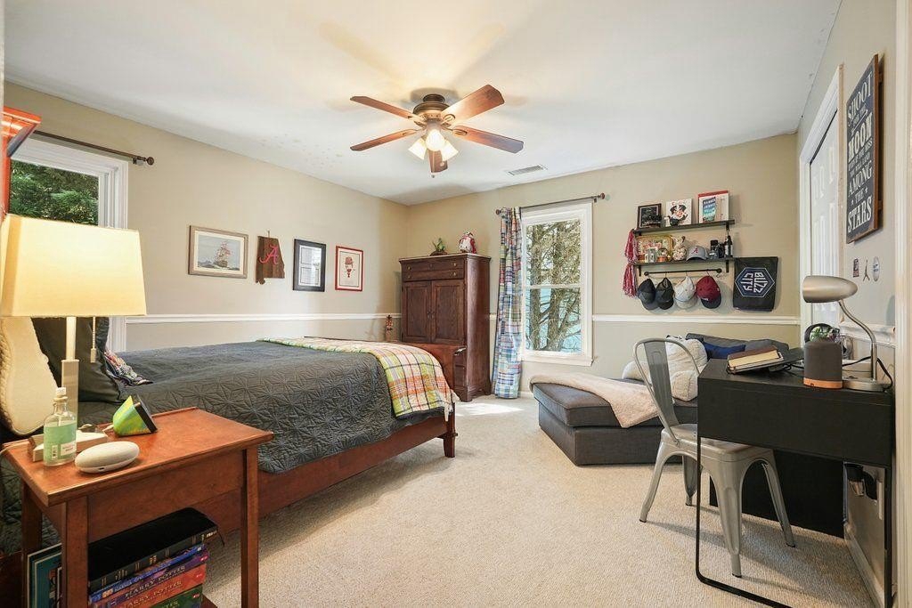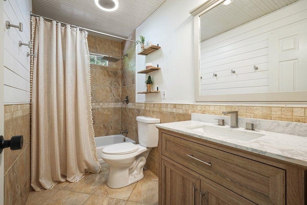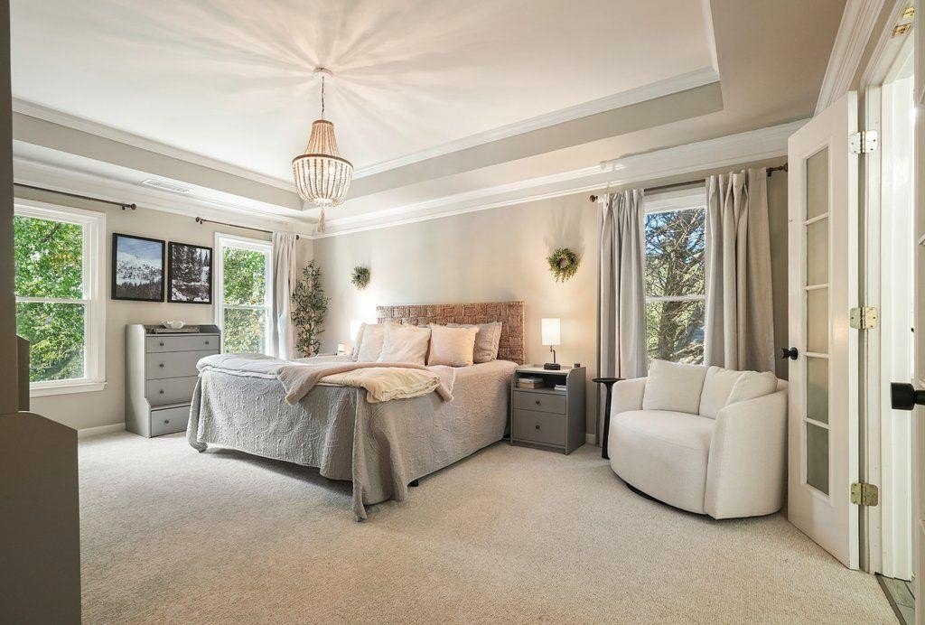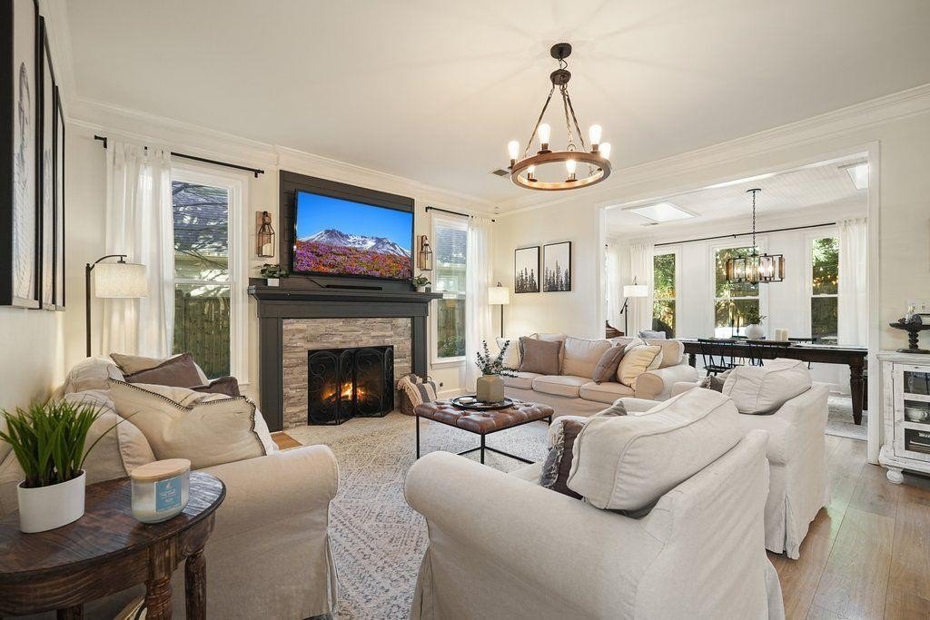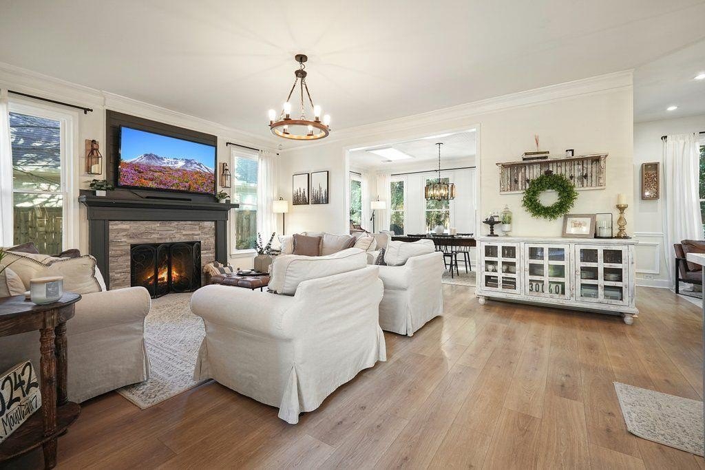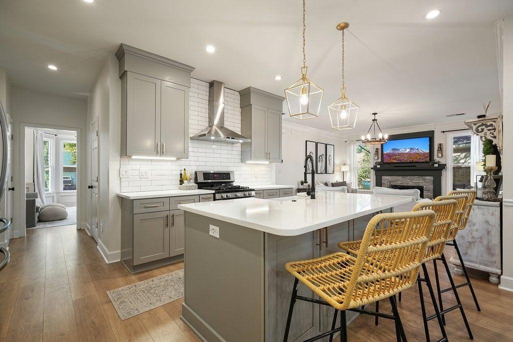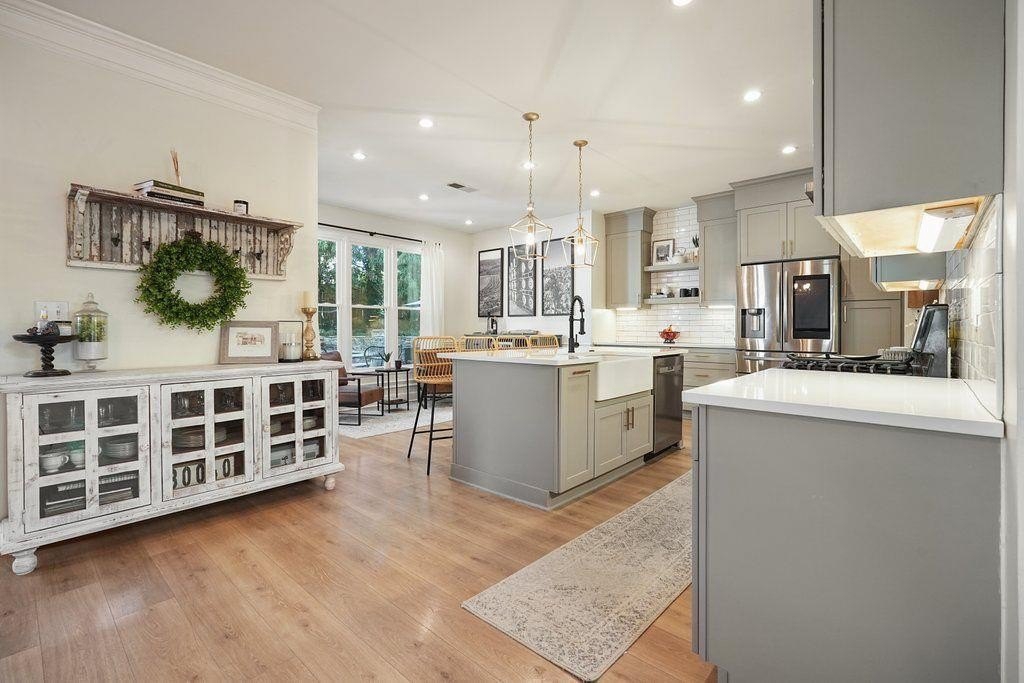 The heart of the home is the beautifully-updated kitchen featuring a large quartz island, sleek gray cabinetry, stainless steel appliances, and a dedicated coffee bar. Beautiful neutral Luxury Vinyl Plank flooring runs throughout the main level, offering both style and easy maintenance. Upstairs, the luxurious primary suite includes a fully updated en-suite bathroom and a custom walk-in closet. Three additional guest bedrooms accompany an upstairs laundry room which adds everyday convenience.