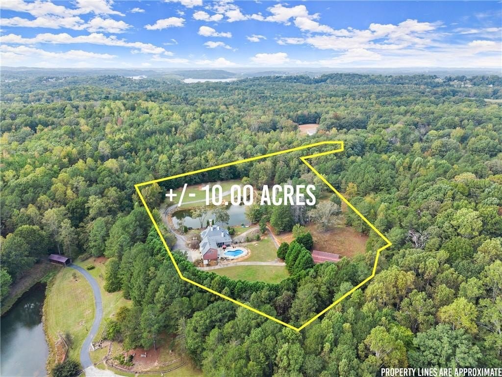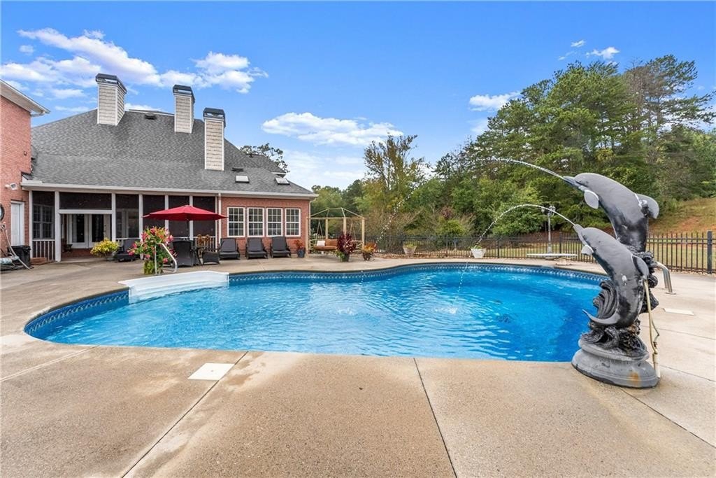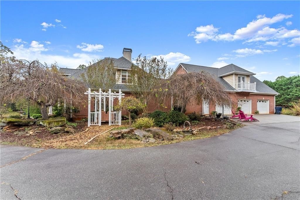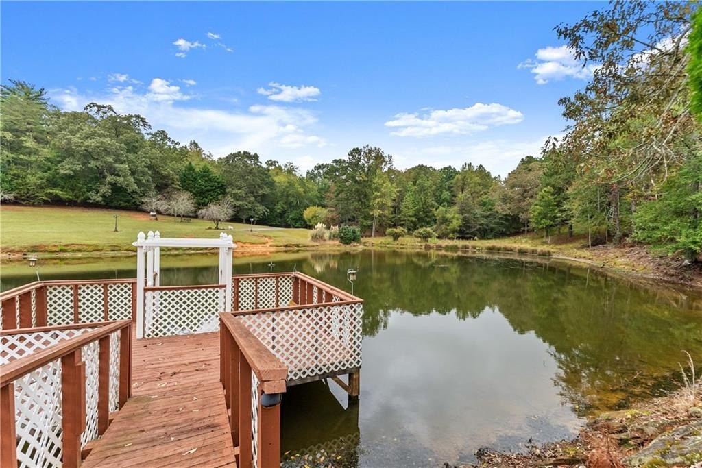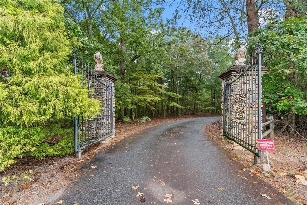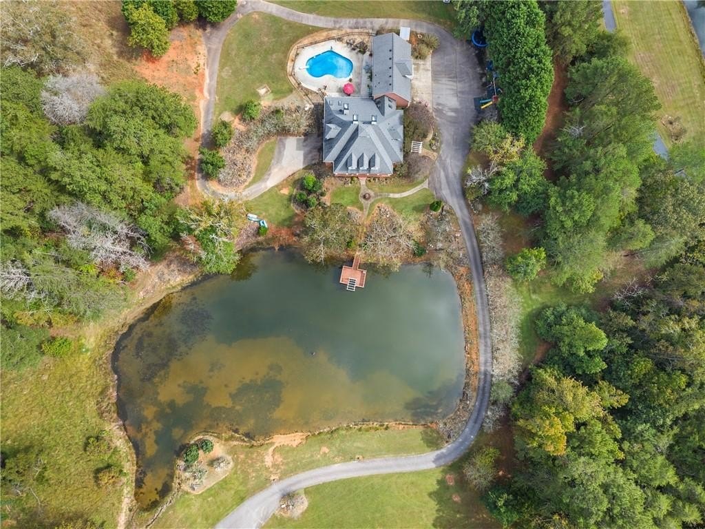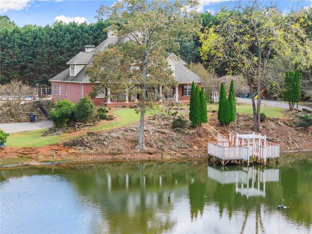 First time on the market! This one-owner Gainesville estate sits on 10 private acres with a picturesque half acre pond, a long private gated drive, and a beautiful saltwater pool. The pool has a diving board, dolphin fountain, and black iron fencing surrounding it. Inside, you’ll find oak floors, a dramatic two-story living room with a floor-to-ceiling stone fireplace, a separate keeping room and a bright covered patio off the large open kitchen. The main level includes an office, the primary suite, and two secondary bedrooms with their own private baths. The primary suite boast vaulted ceilings, dual closets, a large private bathroom with his and hers vanities and separate tub and shower. Upstairs offers two extra large bedrooms with their own bathrooms and walk in closets. The finished basement includes a theater room, two flex rooms with closets, a full bathroom, plenty of storage space and dual one-car garages. Above the main level three car garage you will find an apartment featuring a full kitchen of its own, two bedrooms, one bathroom, laundry, and balcony—perfect for guests or income potential. The property also includes a building with three horse stalls and oversized bays for boats or RVs. There are also beautiful peach trees, apple trees and blueberry bushes on the property.