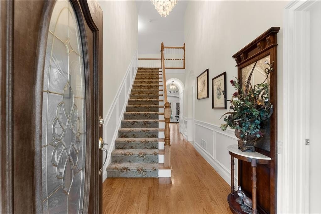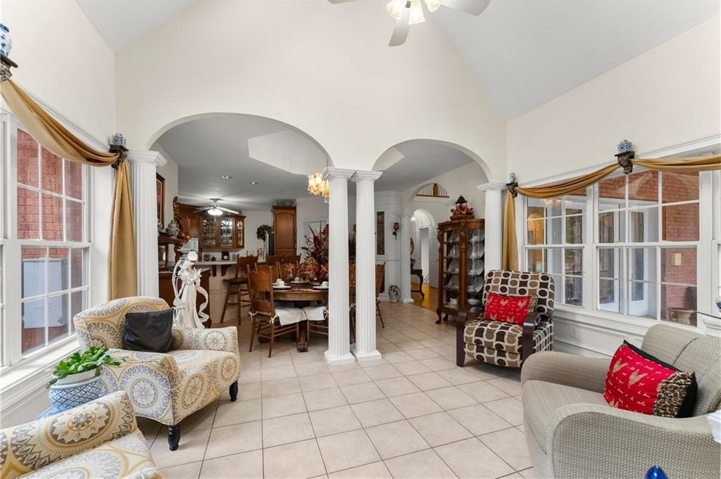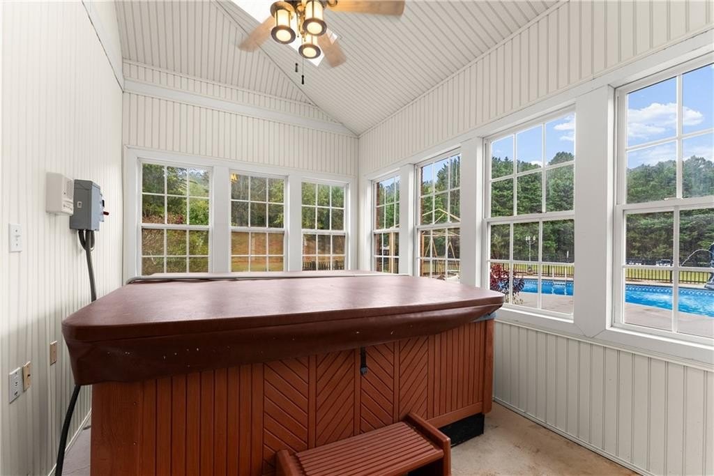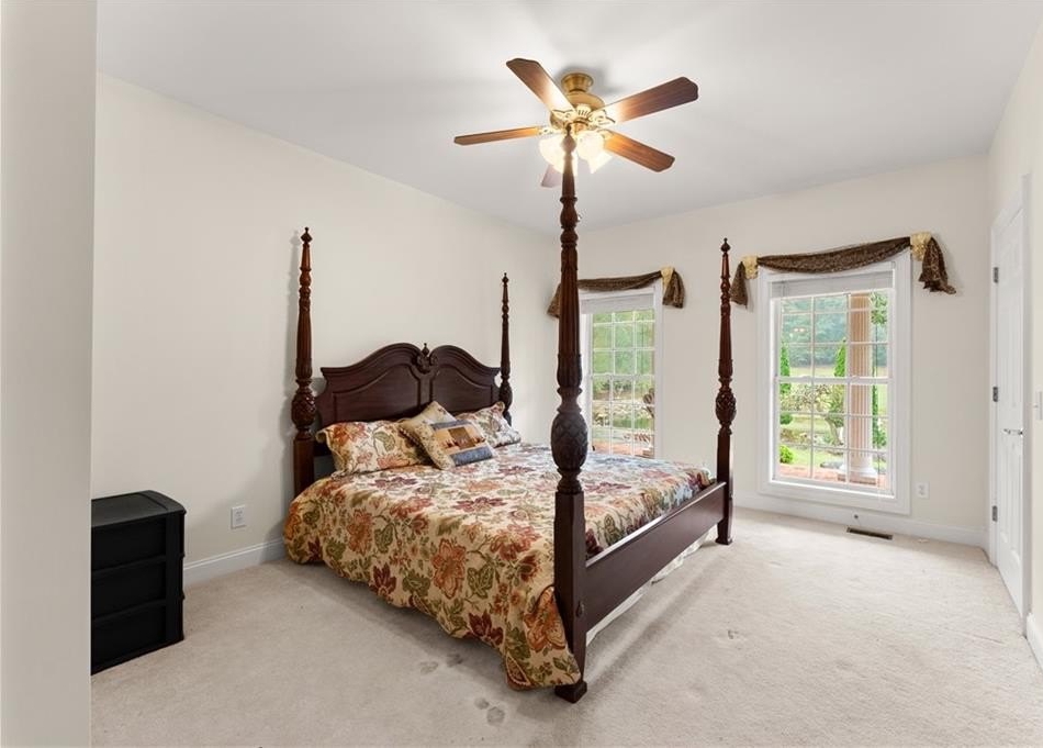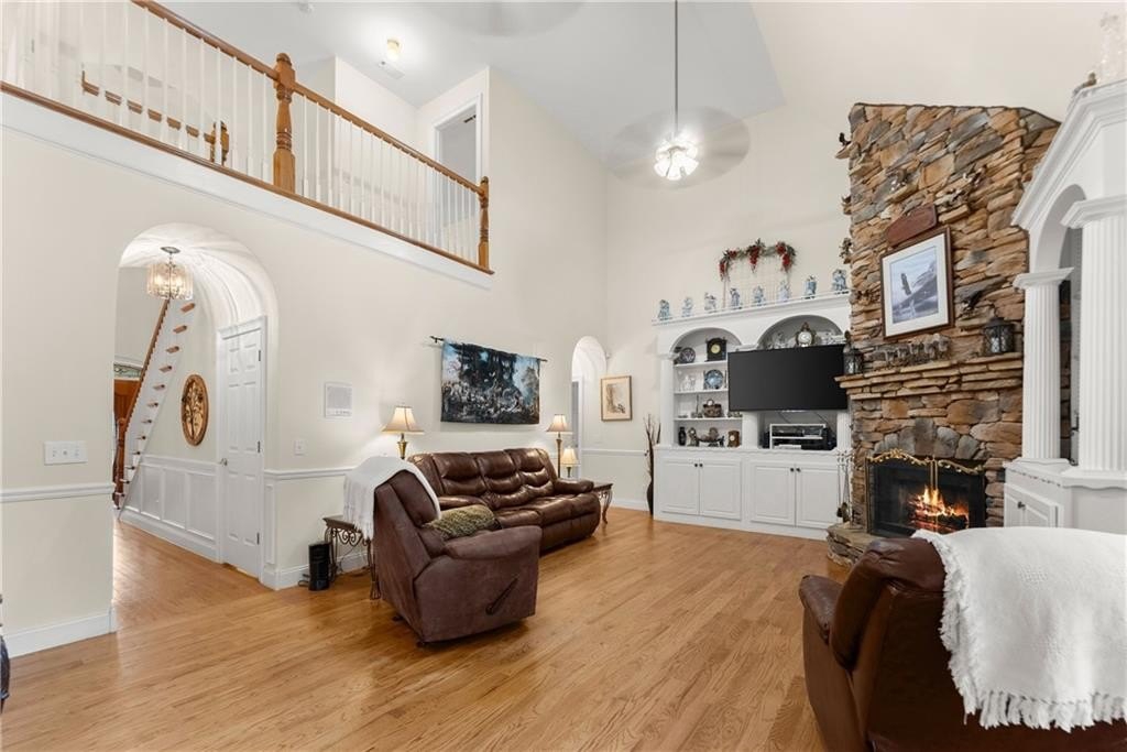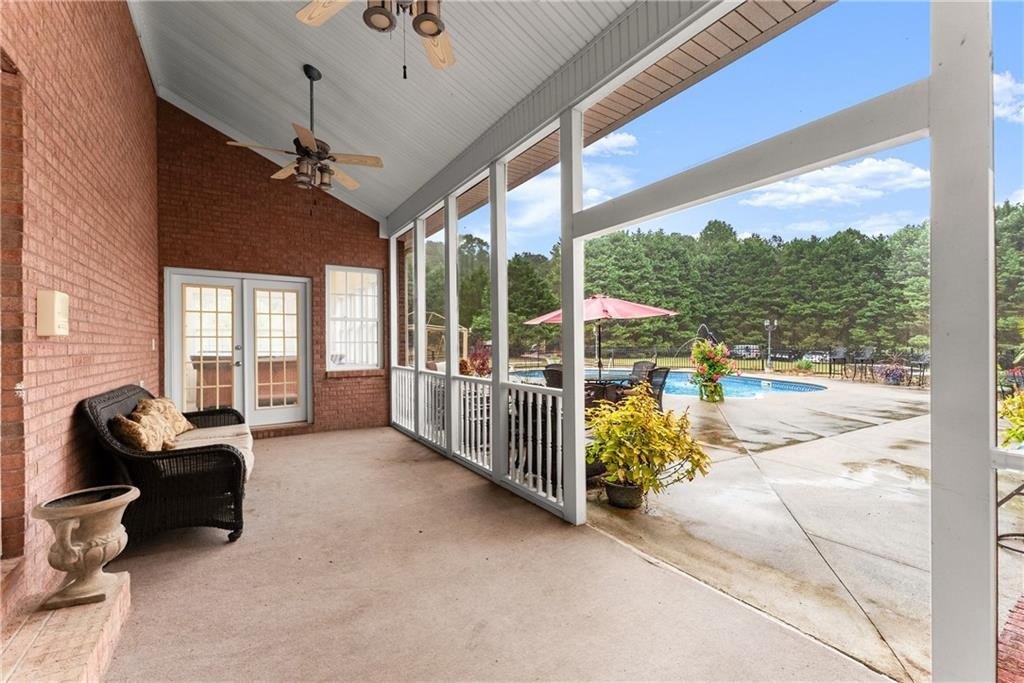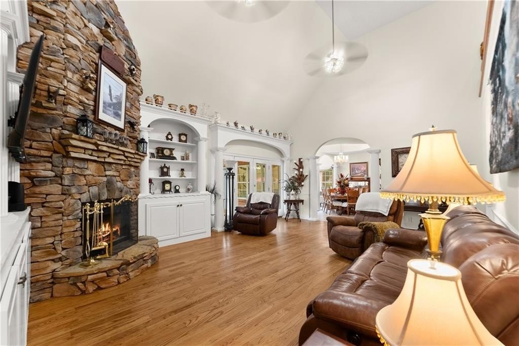 First time on the market! This one-owner Gainesville estate sits on 10 private acres with a picturesque half acre pond, a long private gated drive, and a beautiful saltwater pool. The pool has a diving board, dolphin fountain, and black iron fencing surrounding it. Inside, you’ll find oak floors, a dramatic two-story living room with a floor-to-ceiling stone fireplace, a separate keeping room and a bright covered patio off the large open kitchen. The main level includes an office, the primary suite, and two secondary bedrooms with their own private baths. The primary suite boast vaulted ceilings, dual closets, a large private bathroom with his and hers vanities and separate tub and shower. Upstairs offers two extra large bedrooms with their own bathrooms and walk in closets. The finished basement includes a theater room, two flex rooms with closets, a full bathroom, plenty of storage space and dual one-car garages. Above the main level three car garage you will find an apartment featuring a full kitchen of its own, two bedrooms, one bathroom, laundry, and balcony—perfect for guests or income potential. The property also includes a building with three horse stalls and oversized bays for boats or RVs. There are also beautiful peach trees, apple trees and blueberry bushes on the property.