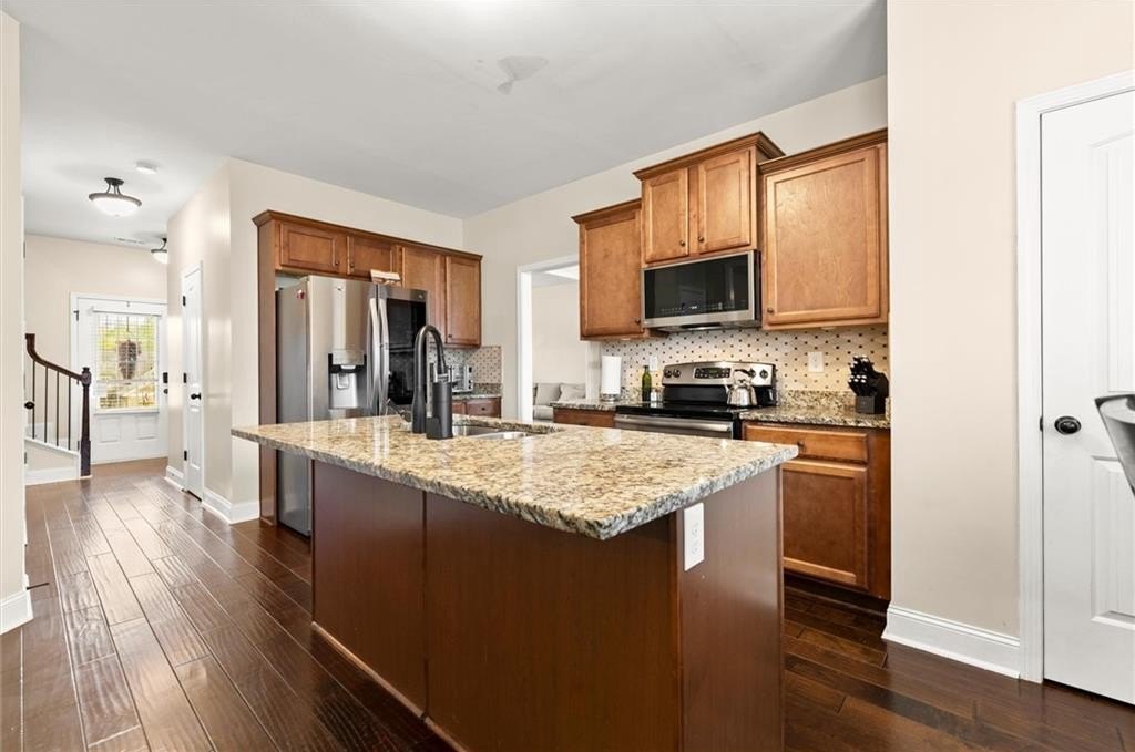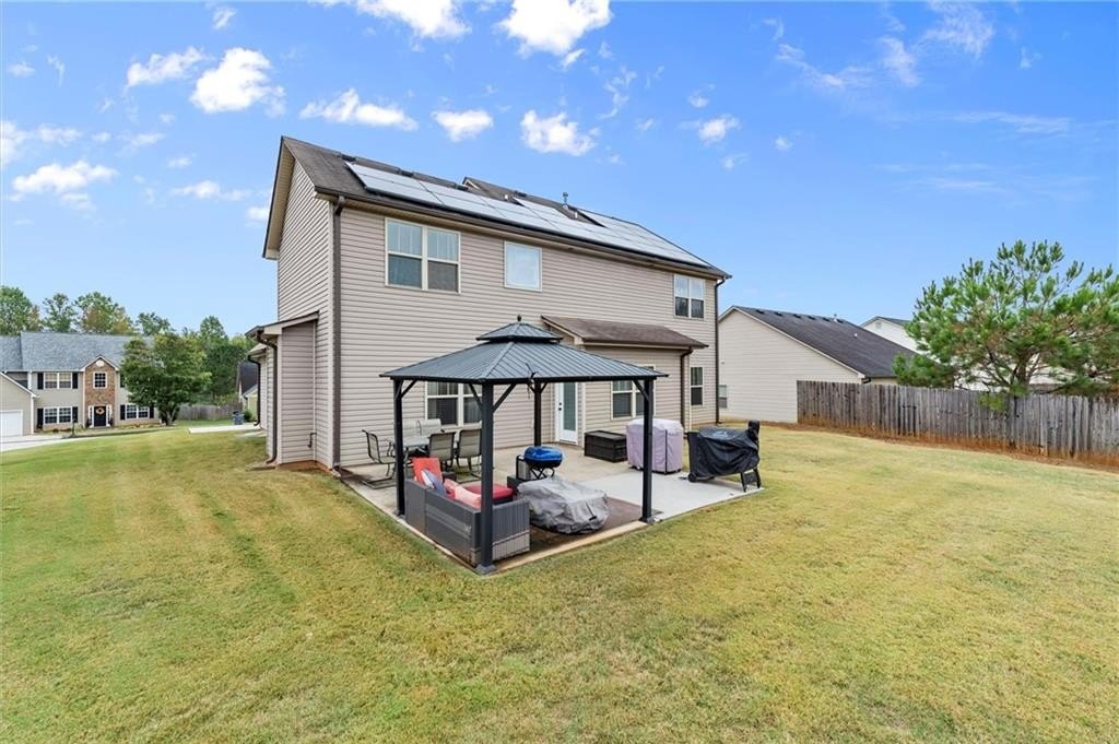 Welcome to this charming 4-bedroom, 2.5-bath home boasting 2,294 square feet of beautifully designed living space in Villa Rica, GA! This smart home is thoughtfully equipped with modern technology, including a security system with cameras, smart thermostats, a smart dishwasher, and solar panels to help reduce utility costs. The open-concept floorplan creates a wonderful flow, with the formal living and dining rooms seamlessly connected—perfect for entertaining. The kitchen features newer stainless-steel appliances, granite countertops, a breakfast bar, and an eat-in area with a view to the cozy family room, complete with a stone fireplace.