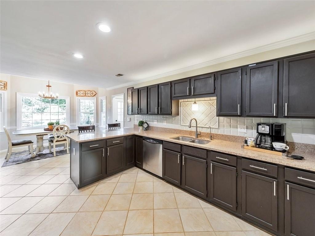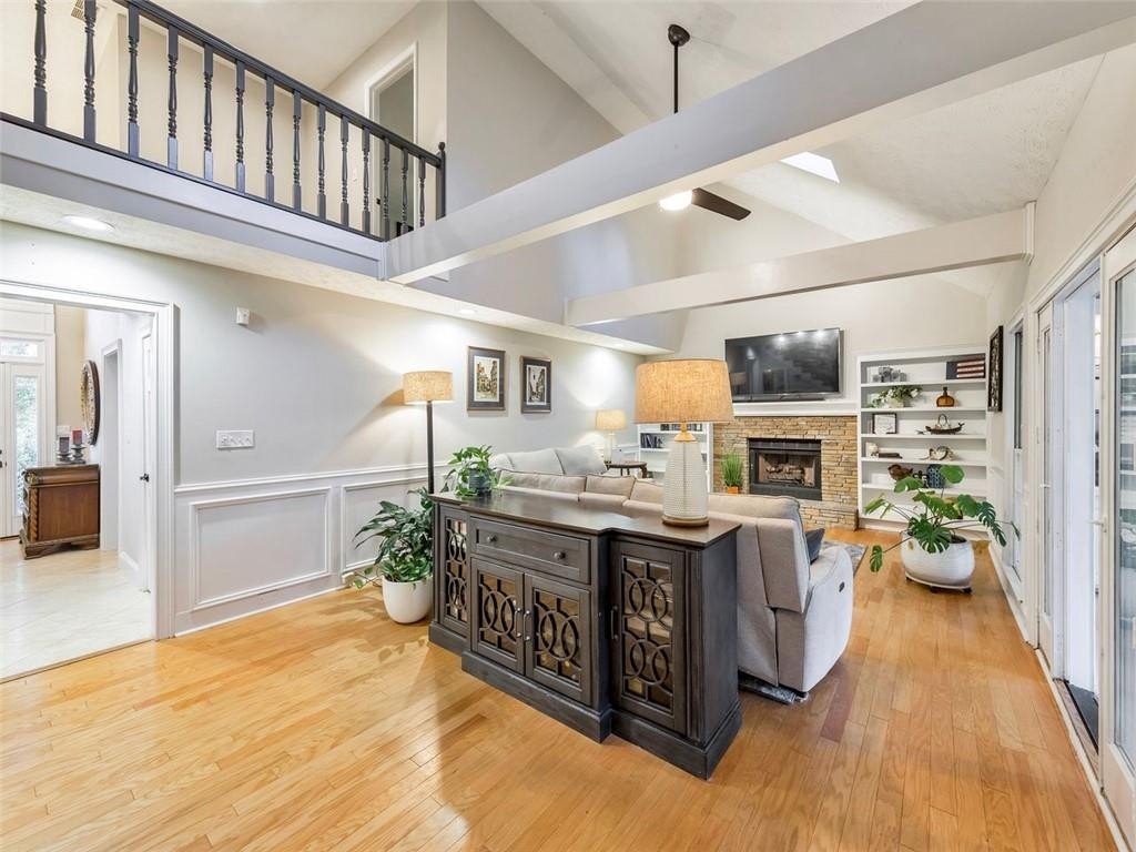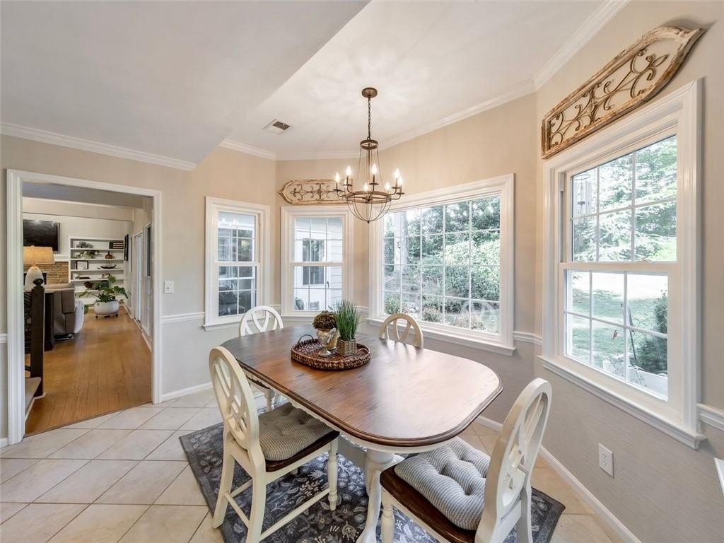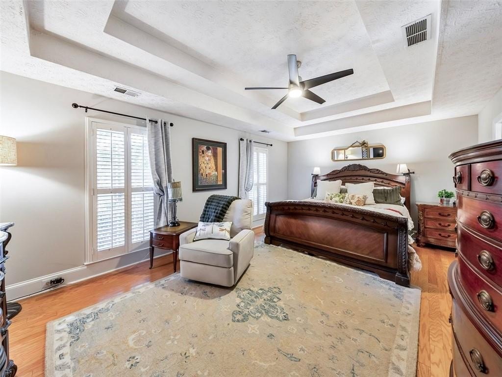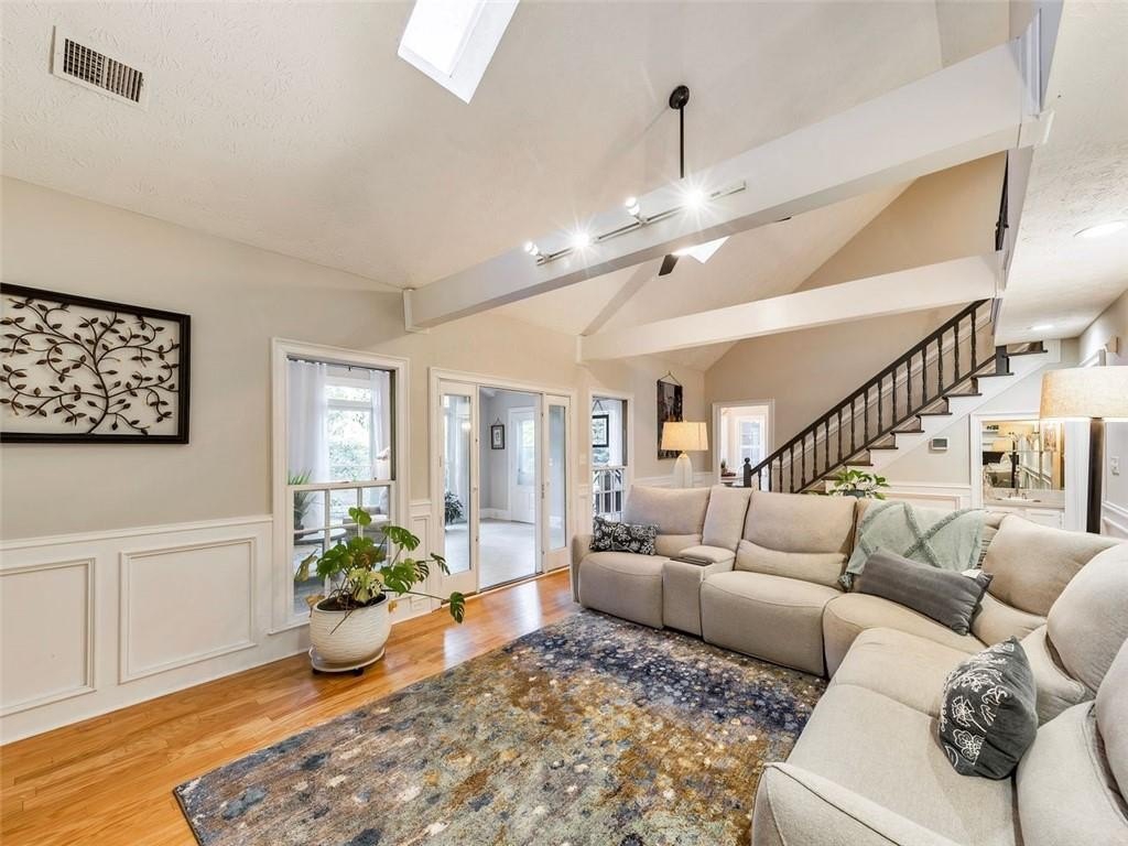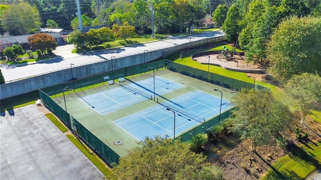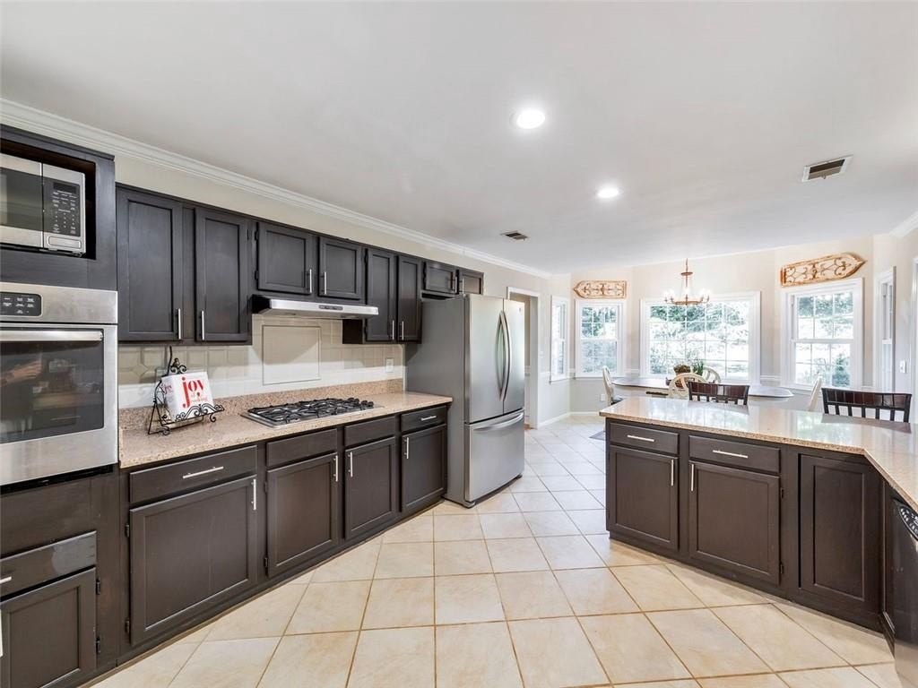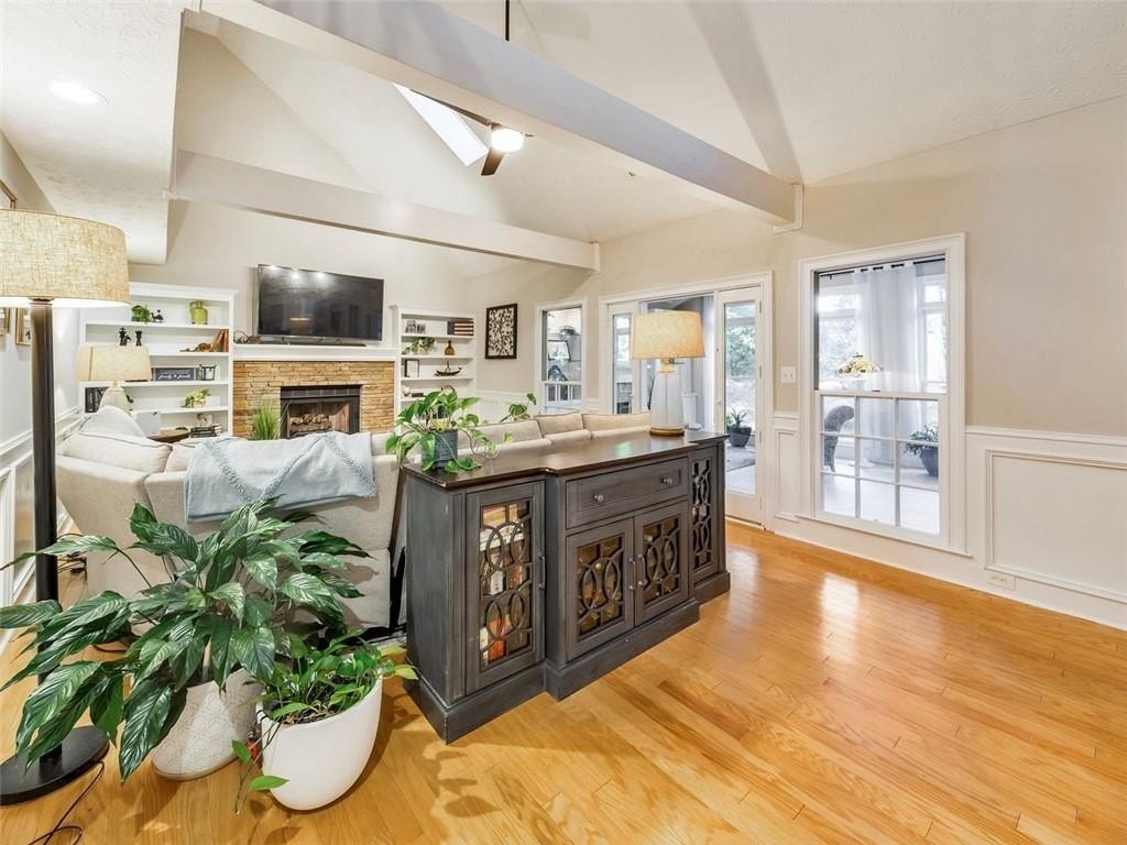 Discover the perfect family haven in a prime Kennesaw location! Welcome to this beautifully maintained 4 bed / 2.5 bath brick-front home in the sought-after swim/tennis community of Arden Lake. Step inside to the inviting two-story foyer that opens to a formal dining room, ideal for hosting dinner parties and holiday gatherings. The fireside living room offers a warm and welcoming atmosphere with beamed ceilings, skylights, a gas fireplace, built-in bookcases, and a wet bar. Enjoy your morning coffee in the sunroom, featuring vaulted ceilings, bookcases, and a cozy wood-burning fireplace. The elegant kitchen is designed for both function and style, complete with quartz countertops, stainless steel appliances, a gas burner stovetop, breakfast bar, and dining area. The laundry room is conveniently located just off the kitchen, with the washer and dryer included. The primary suite on the main level boasts hardwood floors, a tray ceiling, and plantation shutters, while the luxurious, updated bath offers heated tile flooring, a soaking tub, a frameless glass shower door, and an oversized walk-in closet with an Elfa organization system. The main-level powder room has also been thoughtfully updated with a new toilet and modern finishes. Upstairs, three spacious bedrooms, including one with vaulted ceilings, share a beautifully renovated hall bath, and there is extra storage space off the third bedroom. Step outside to the fenced backyard, where an expansive patio provides plenty of room for relaxation and outdoor entertaining. Additional highlights include a large garage with abundant storage, new hardware throughout, new windows with a lifetime warranty, all blinds with extras included, a new Class 3 roof, new chimney cap and shrouds, a replaced water main and shutoff, a new 40-gallon water heater with flood stop, and an irrigation system in the front yard. This exceptional home combines timeless features, thoughtful updates, and an inviting layout in a wonderful neighborhood setting.